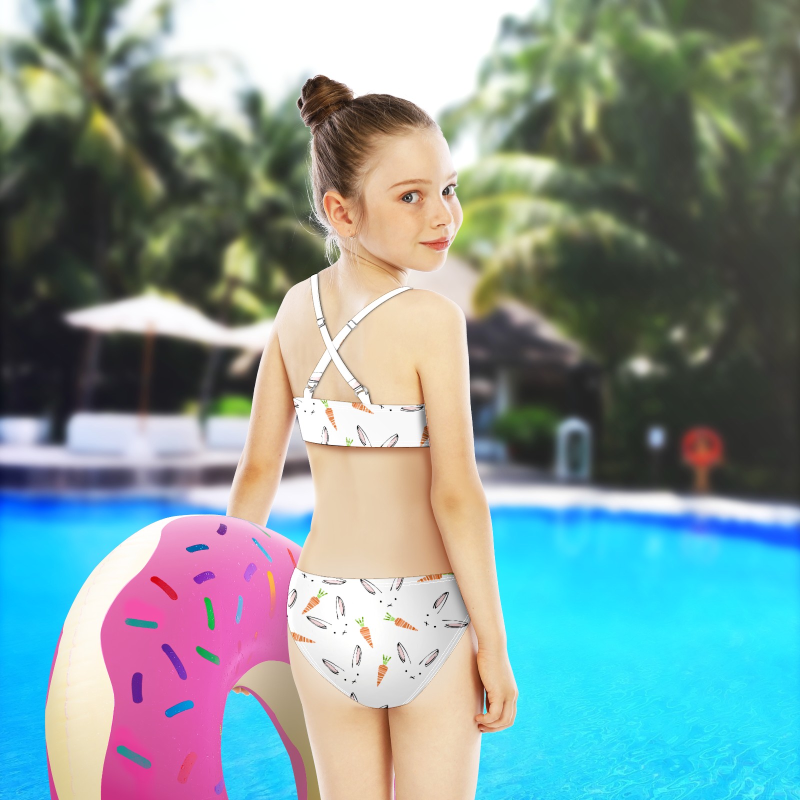 Swimsuits for Girls Two Pieces Bathing Suit Quick Dry Swimwear Rabbit Carrot Cute Pattern S