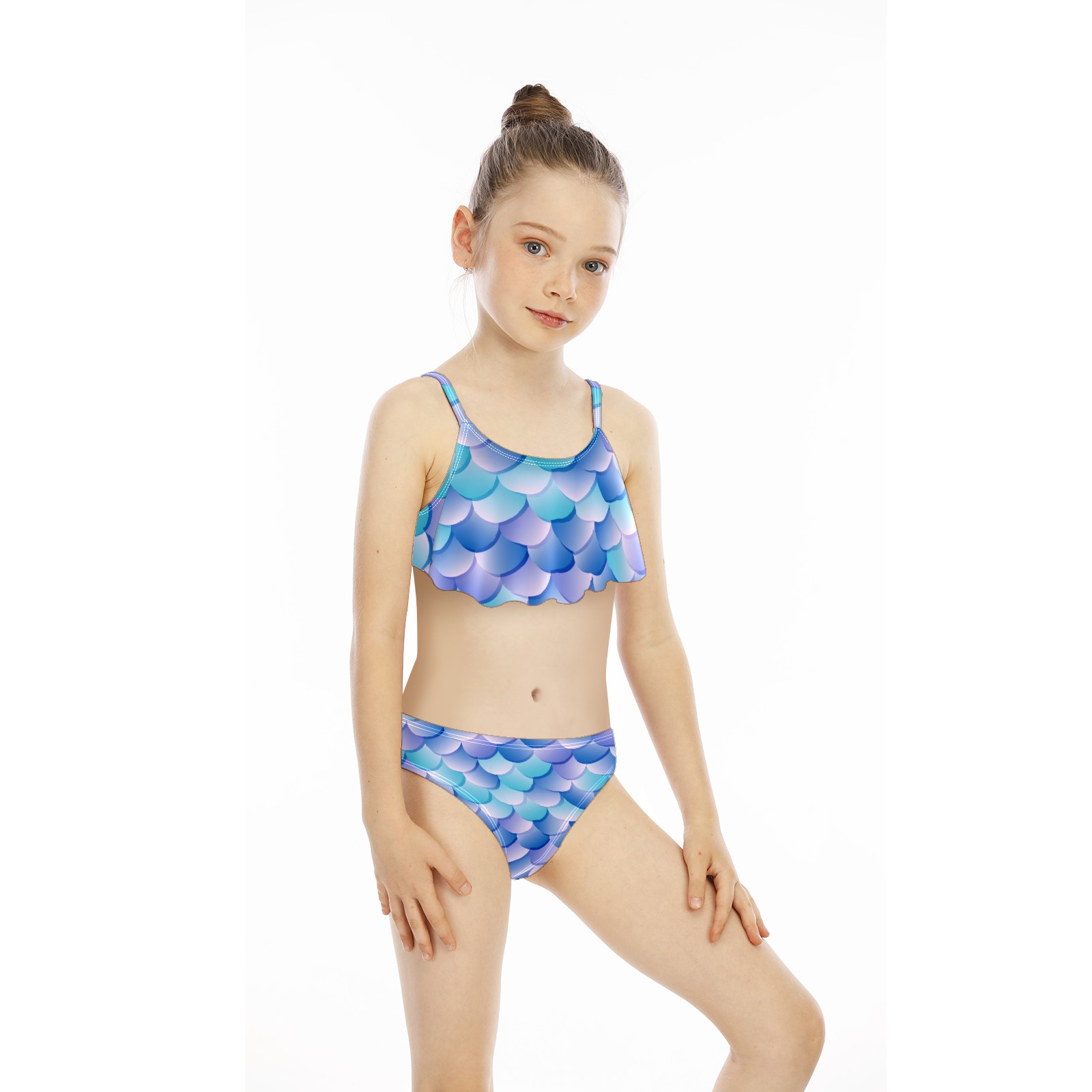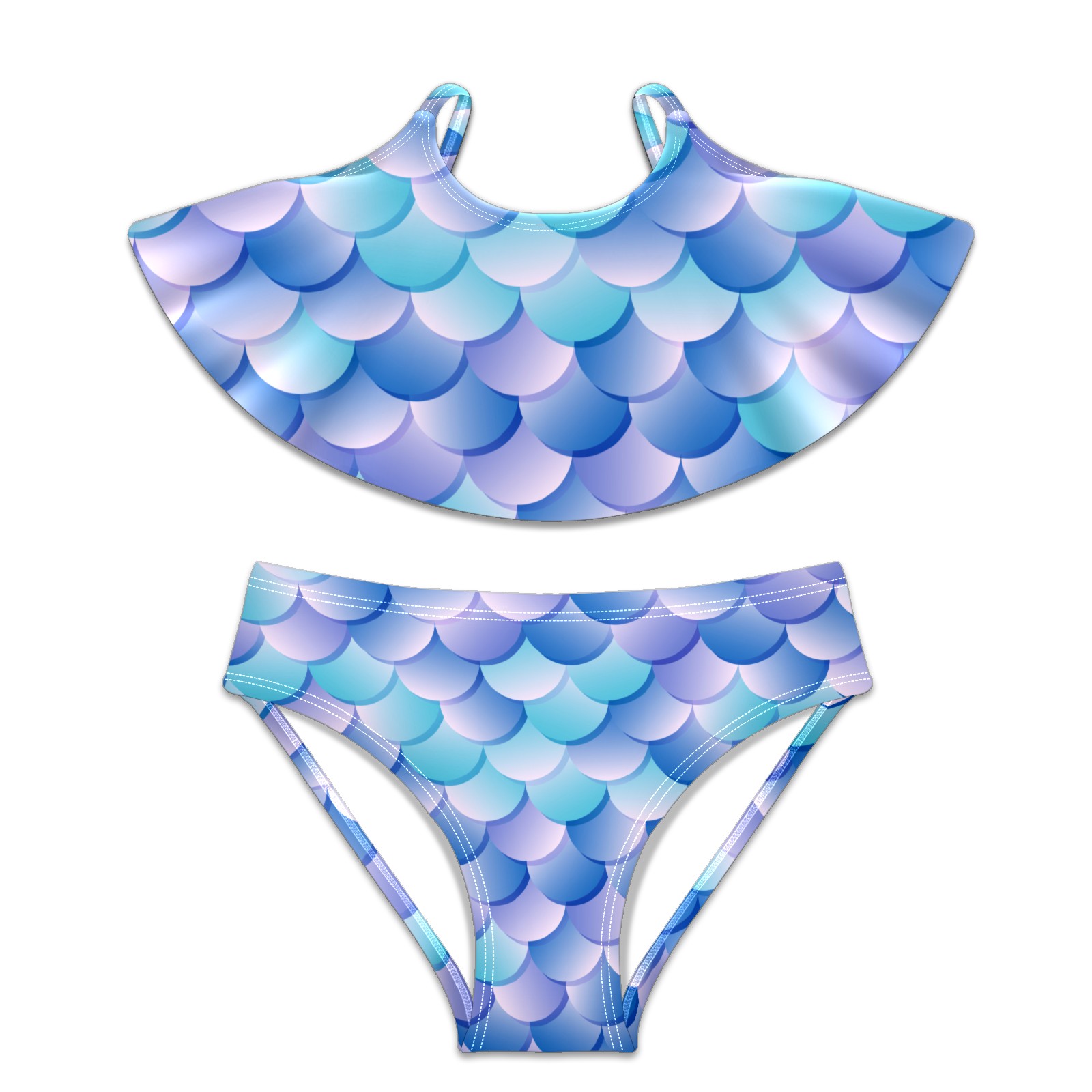 Swimsuits for Girls Two Pieces Bathing Suit Quick Dry Swimwear Purple Blue Color Mermaid Fish Scale S
