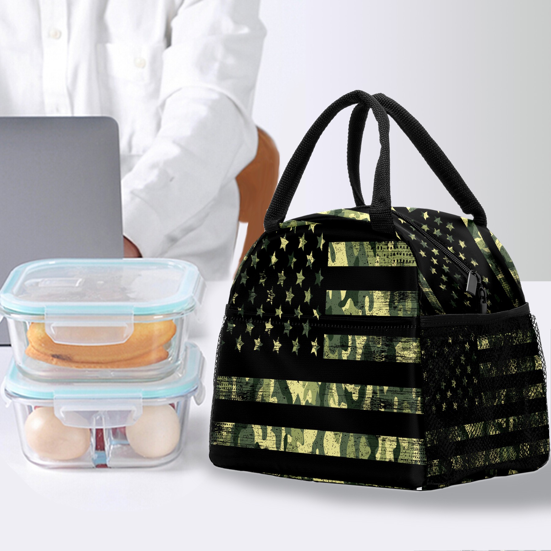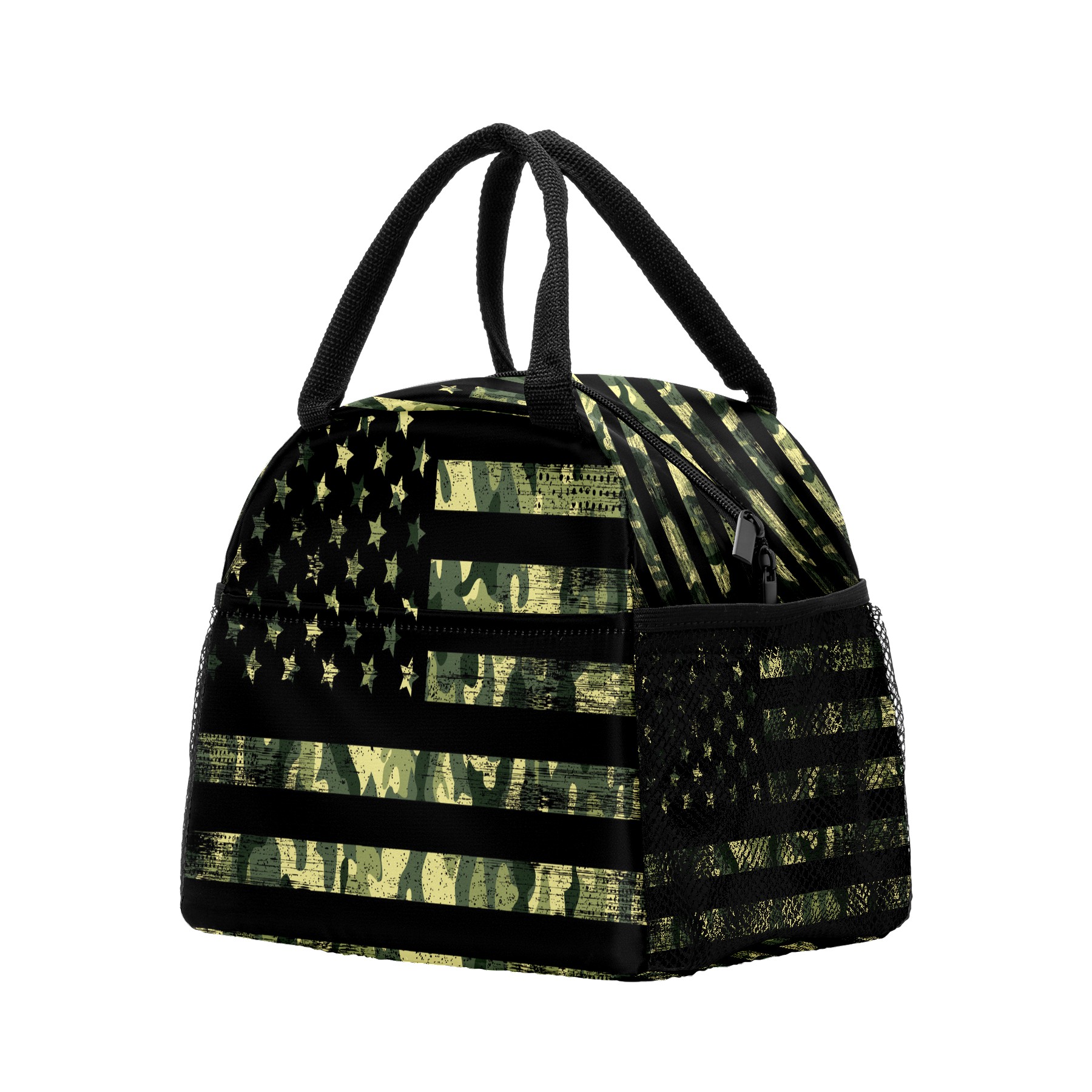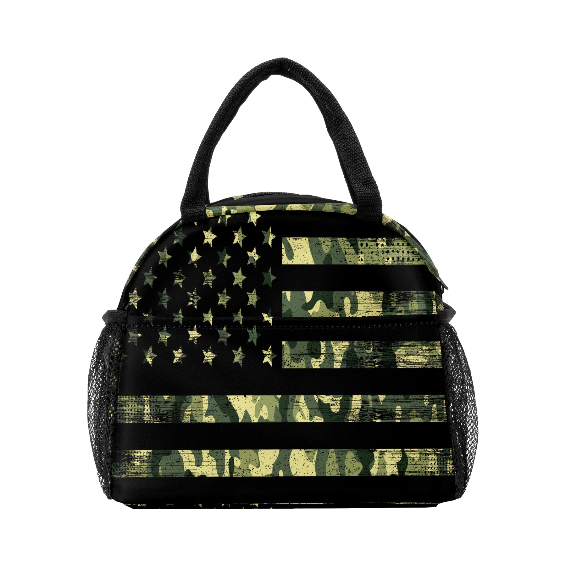 Lunch Bag for Women Men, Retro Rustic Green Camo American Flag Insulated Reusable Lunch Box Thermal Cooler Tote Bag for Work Picnic Hiking Travel Beach