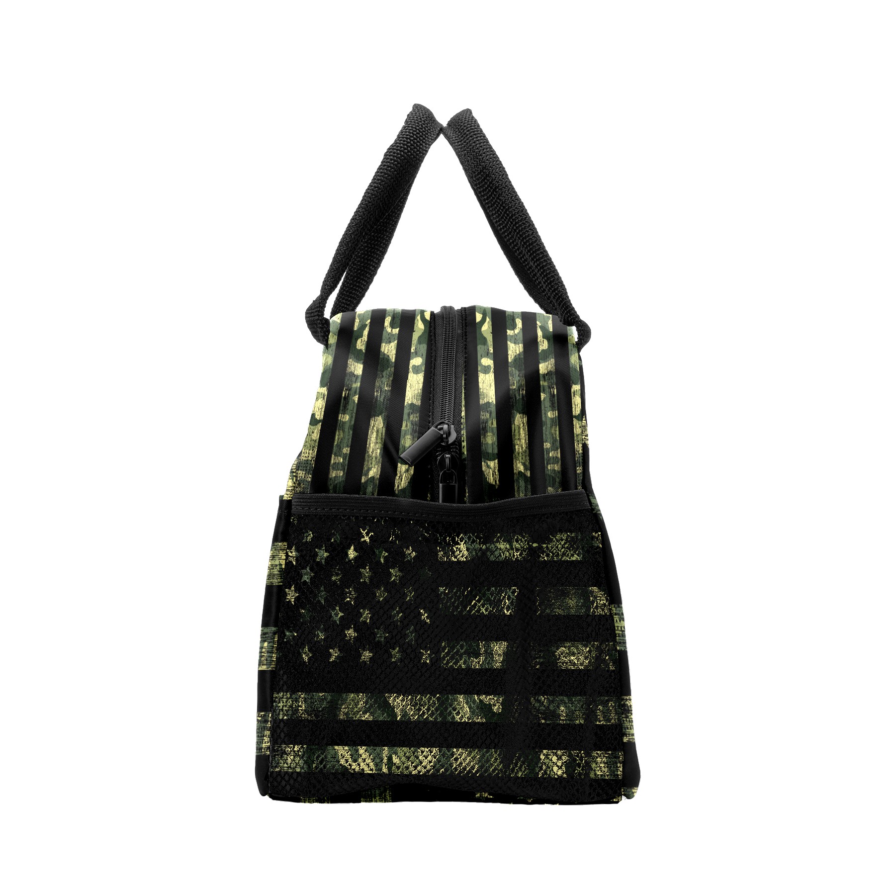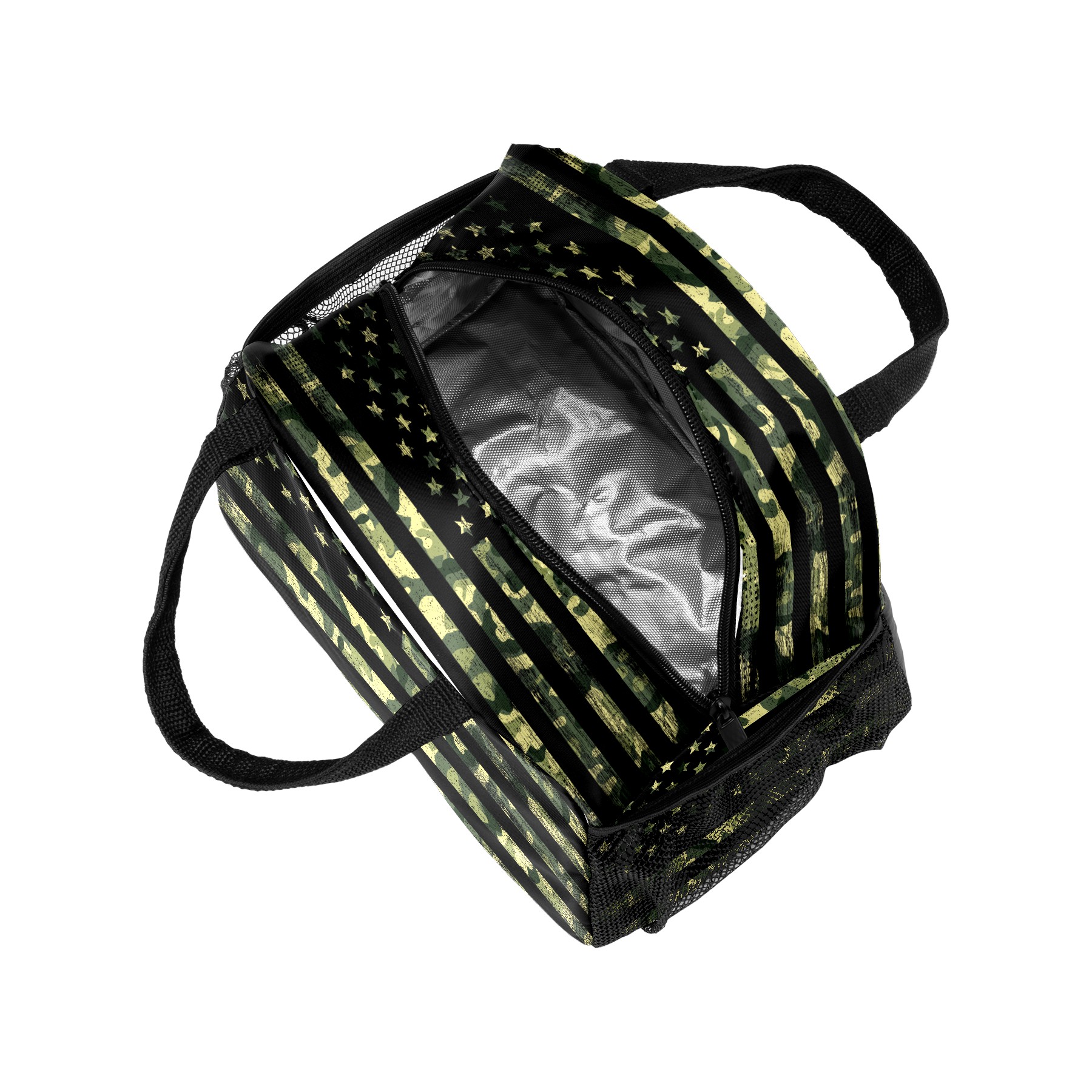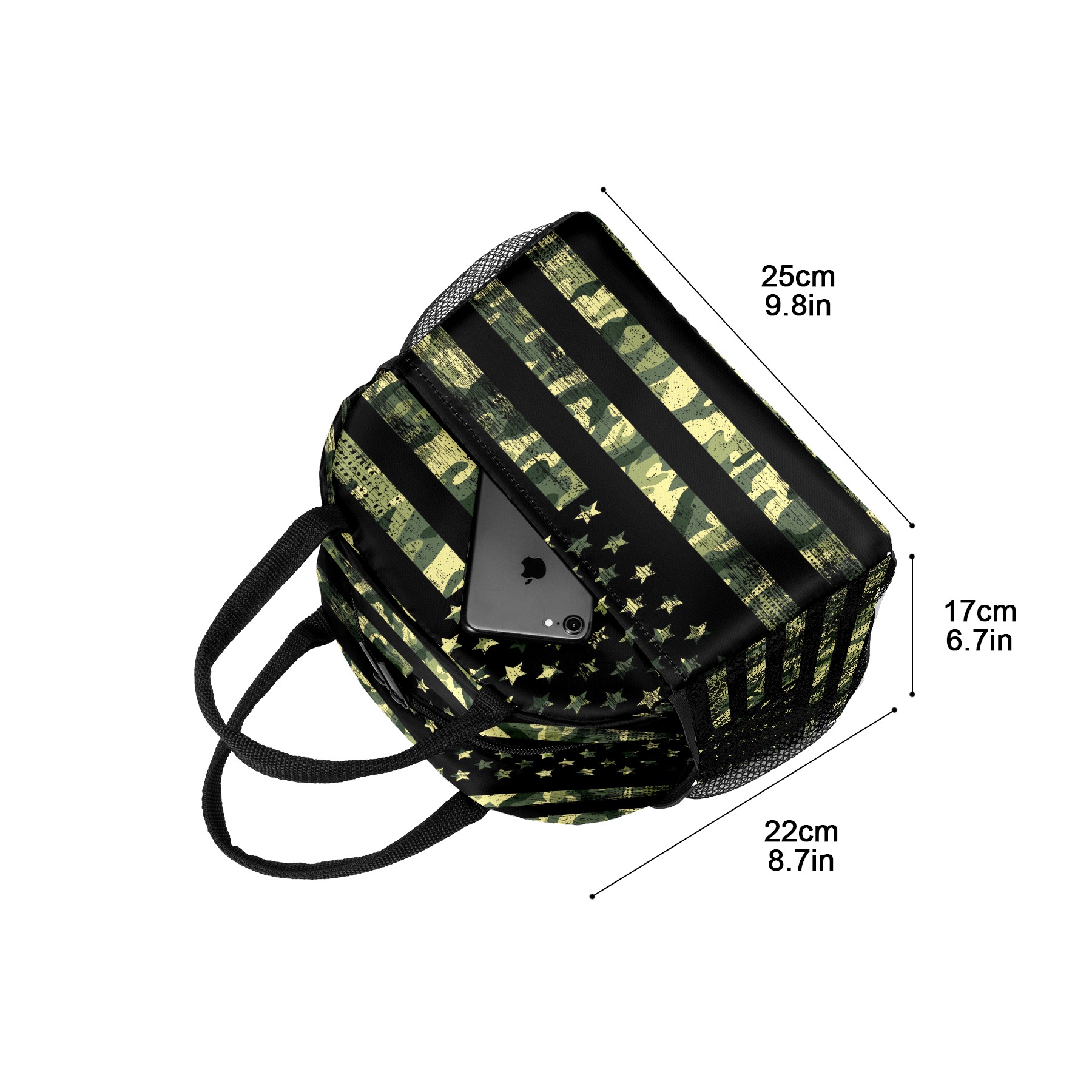 Lunch Bag for Women Men, Retro Rustic Green Camo American Flag Insulated Reusable Lunch Box Thermal Cooler Tote Bag for Work Picnic Hiking Travel Beach
