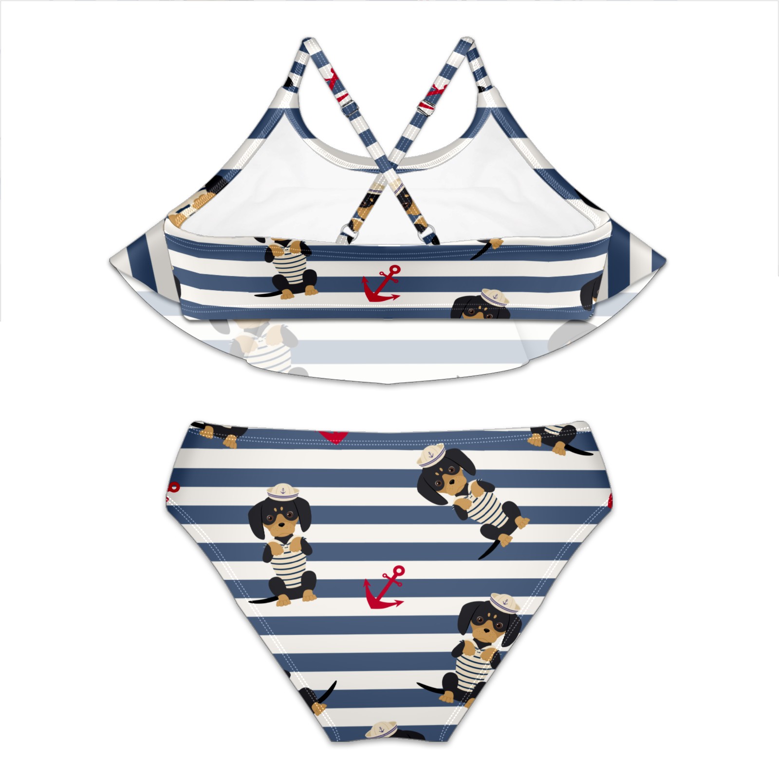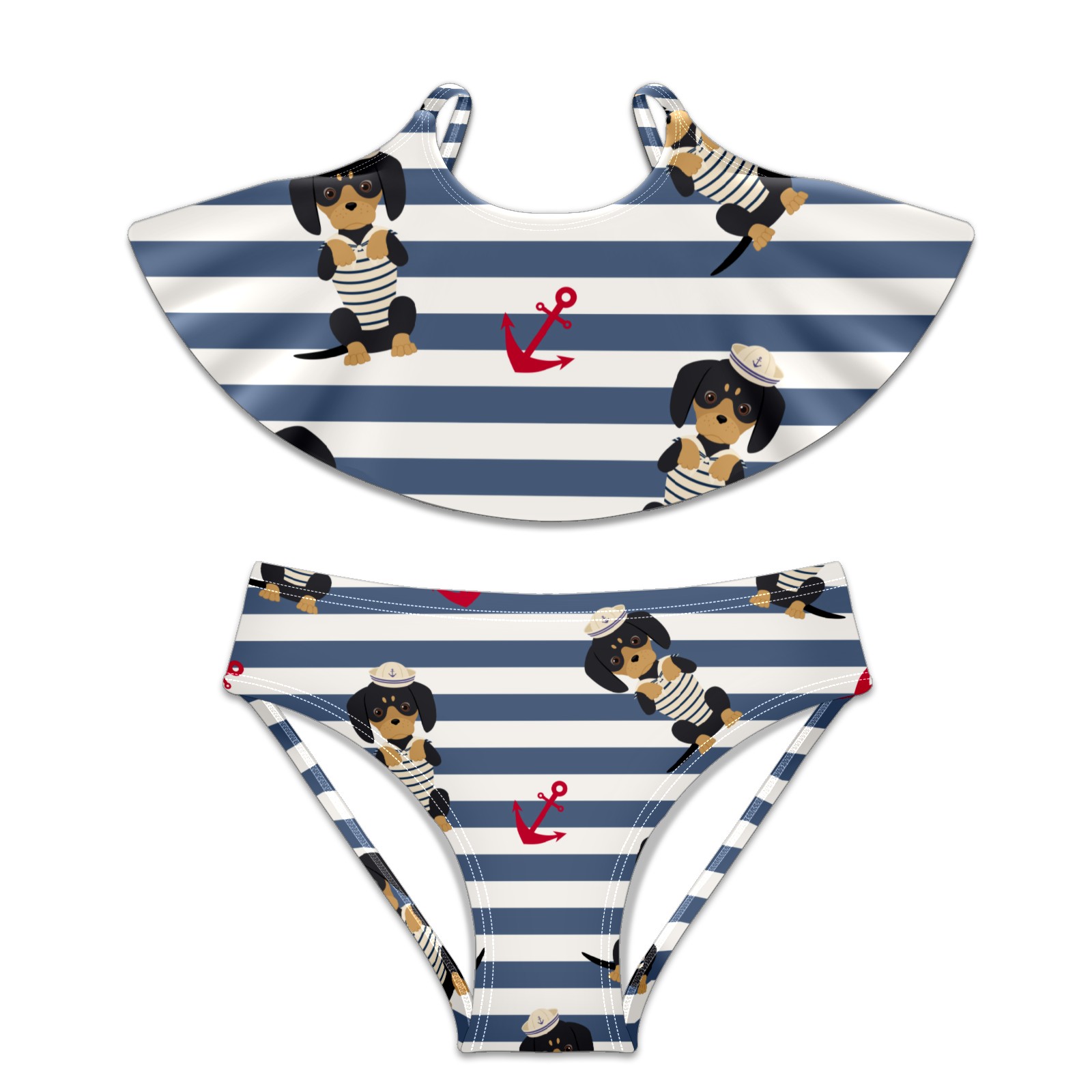 Swimsuits for Girls Two Pieces Bathing Suit Quick Dry Swimwear Puppy Sailorman Anchors Navy Stripes S