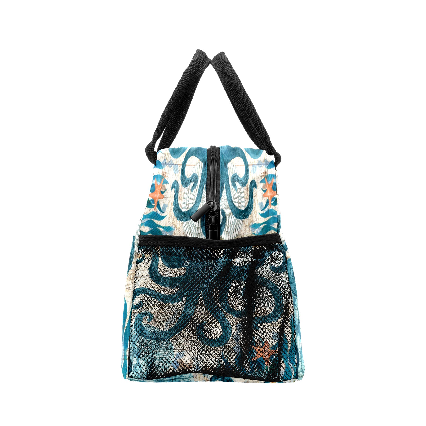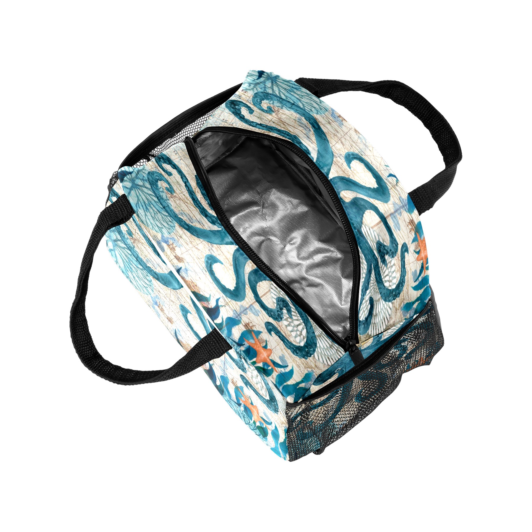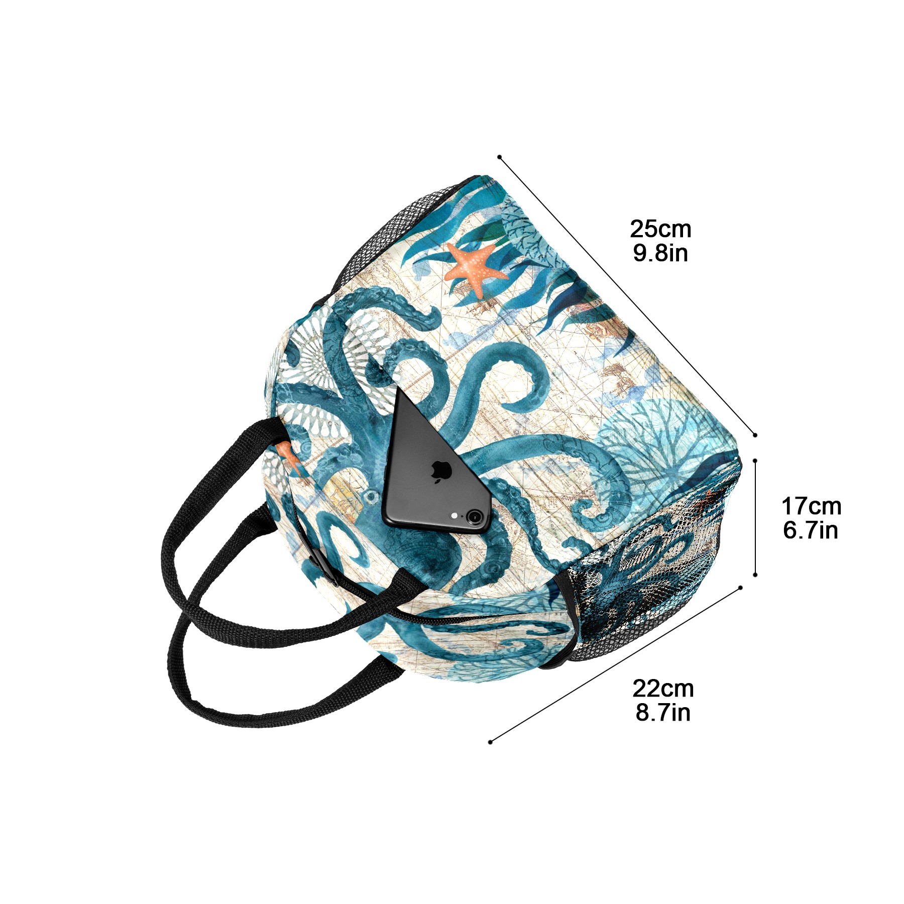 Lunch Bag for Women Men, Retro Octopus Nautical Map Blue Insulated Reusable Lunch Box Thermal Cooler Tote Bag for Work Picnic Hiking Travel Beach