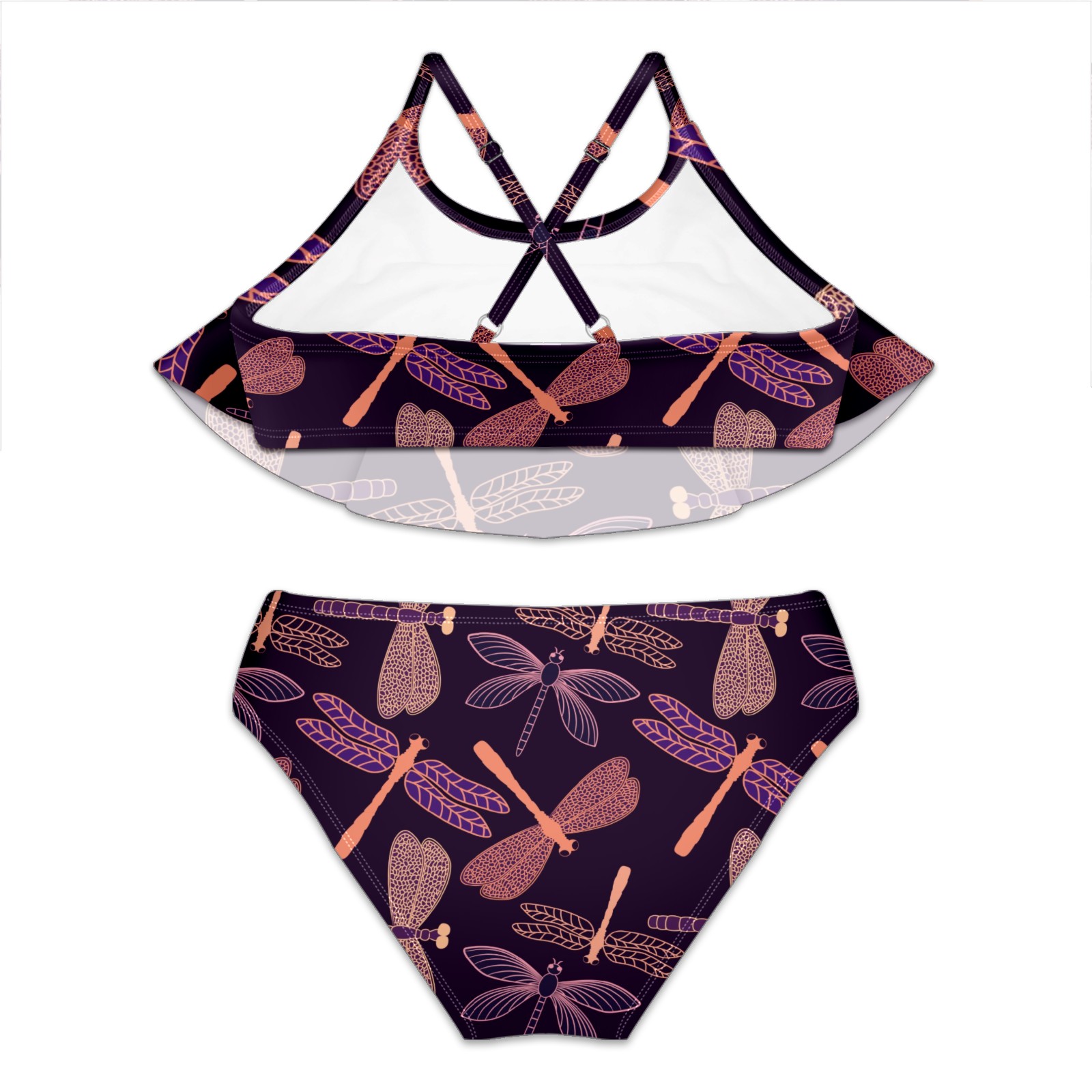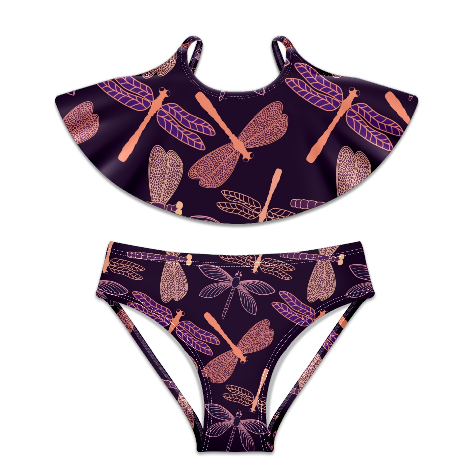 Swimsuits for Girls Two Pieces Bathing Suit Quick Dry Swimwear Pink Purple Dragonfly Pattern S