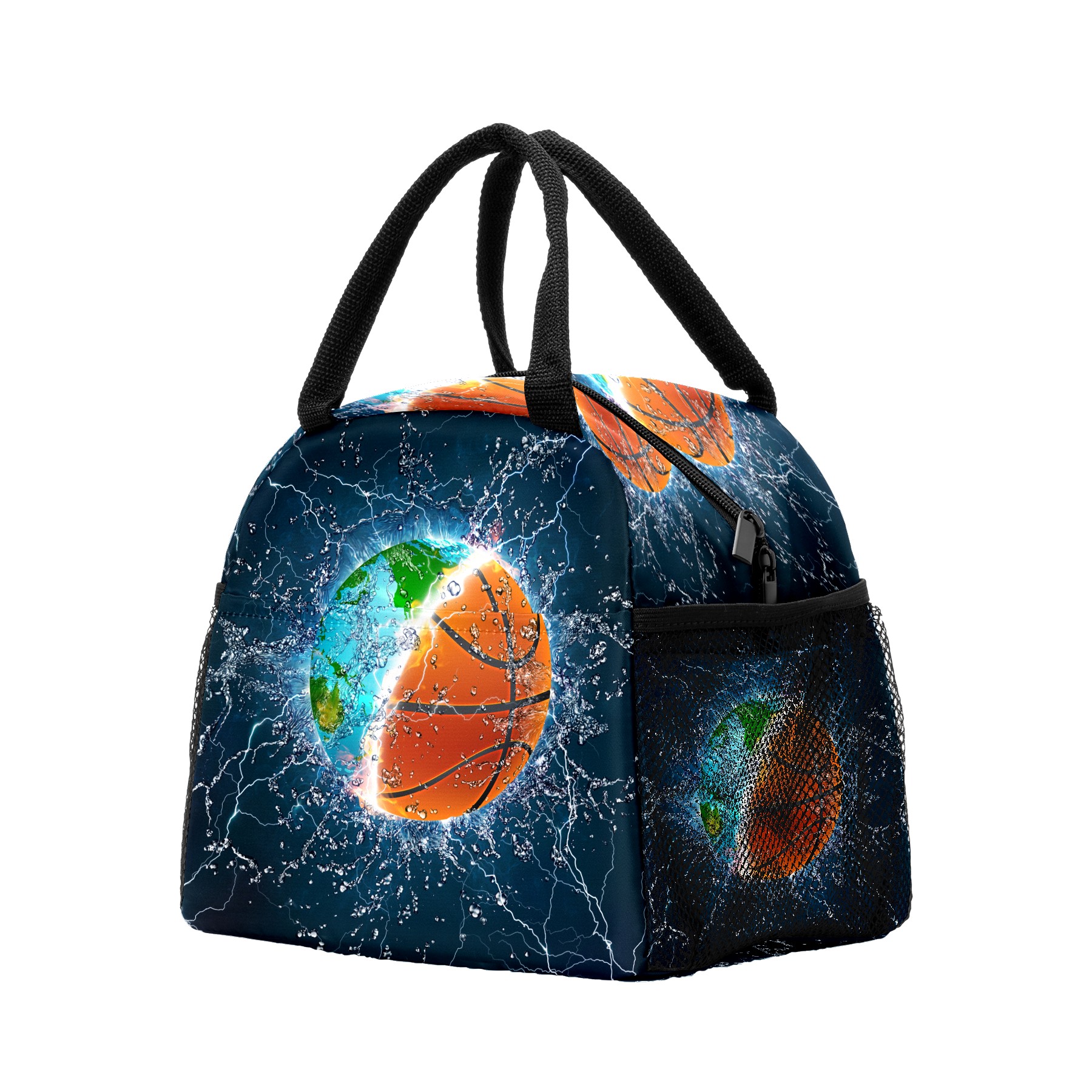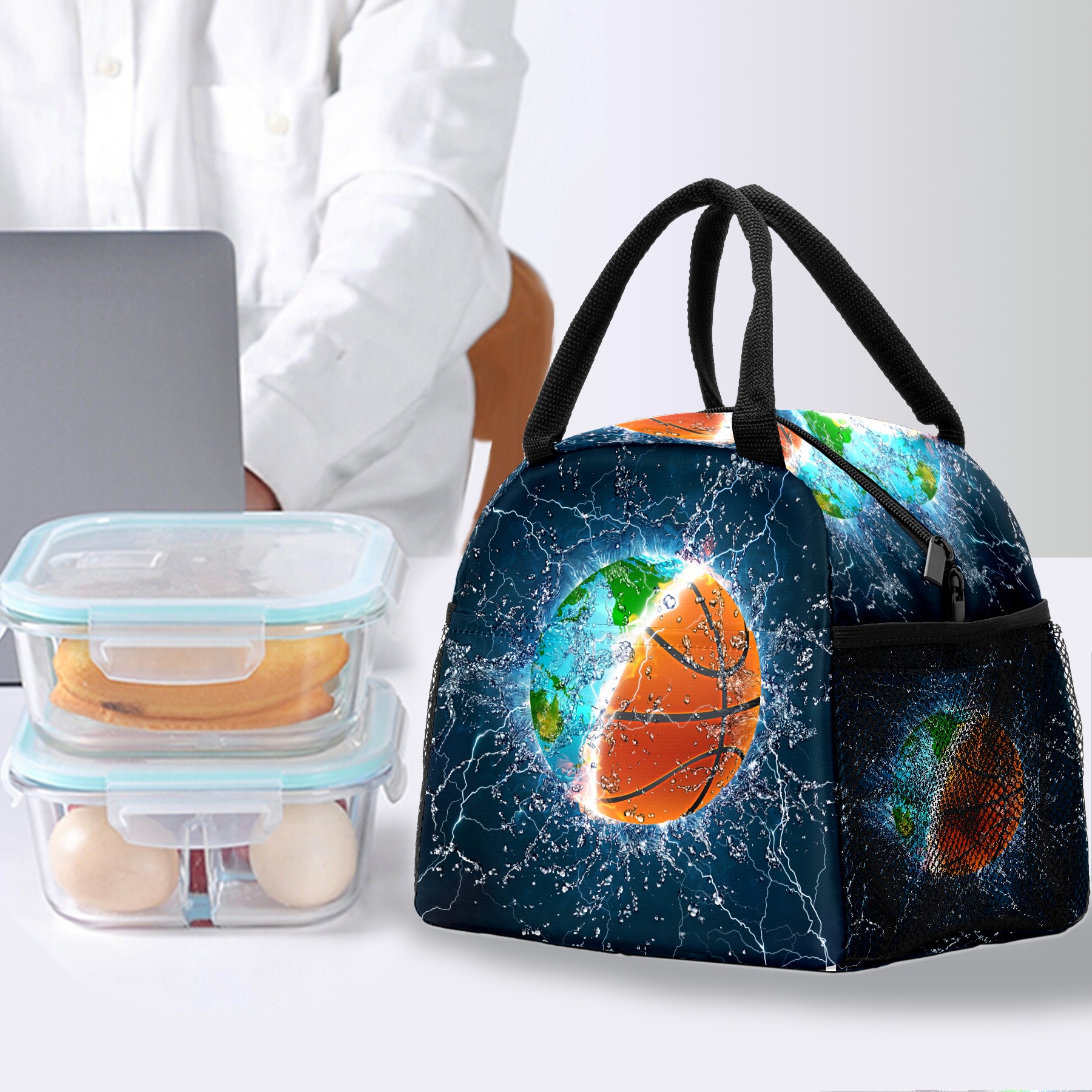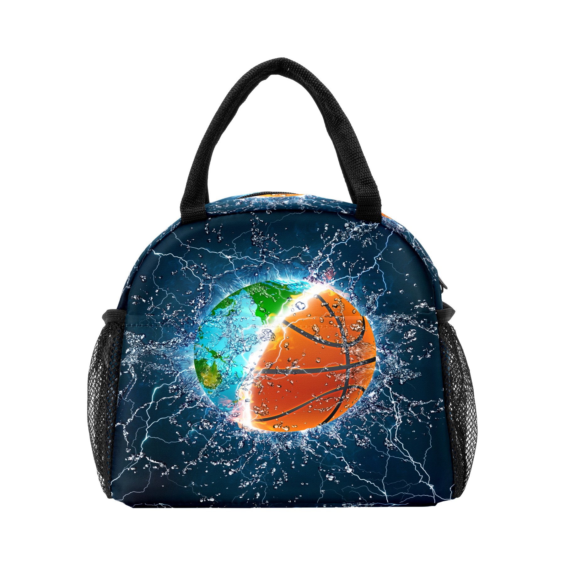Lunch Bag for Women Men, Water Basketball Map Earth Insulated Reusable Lunch Box Thermal Cooler Tote Bag for Work Picnic Hiking Travel Beach