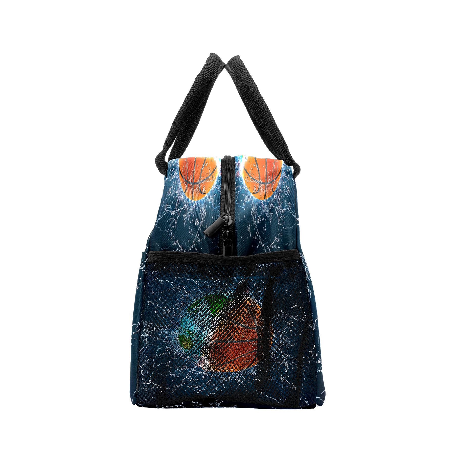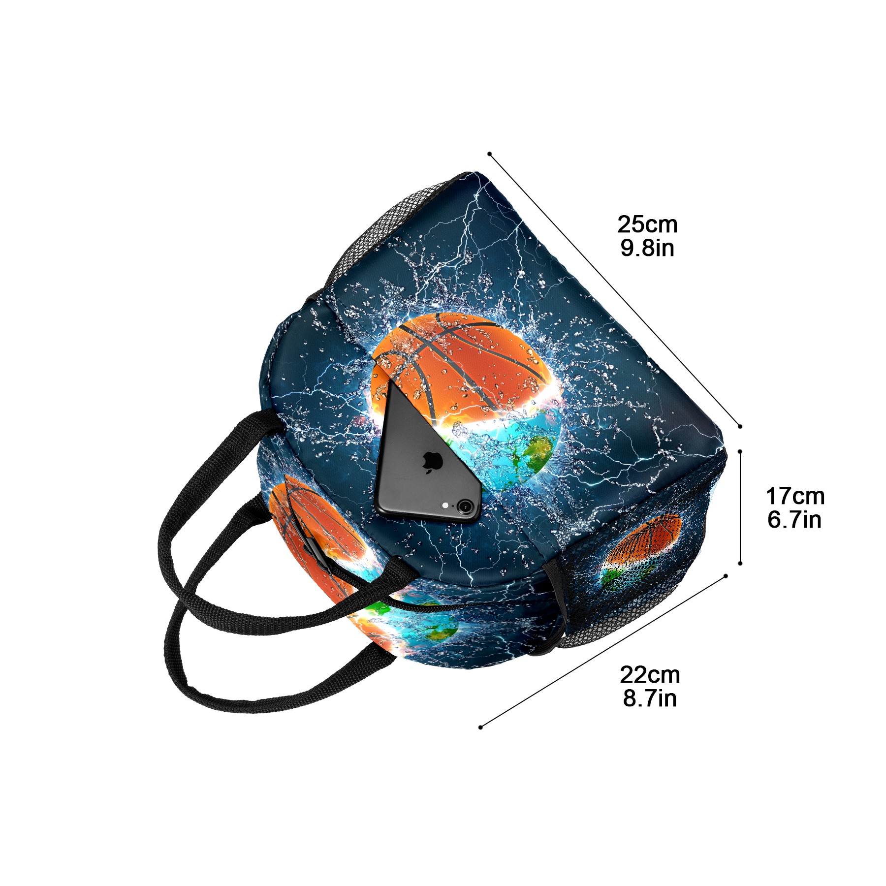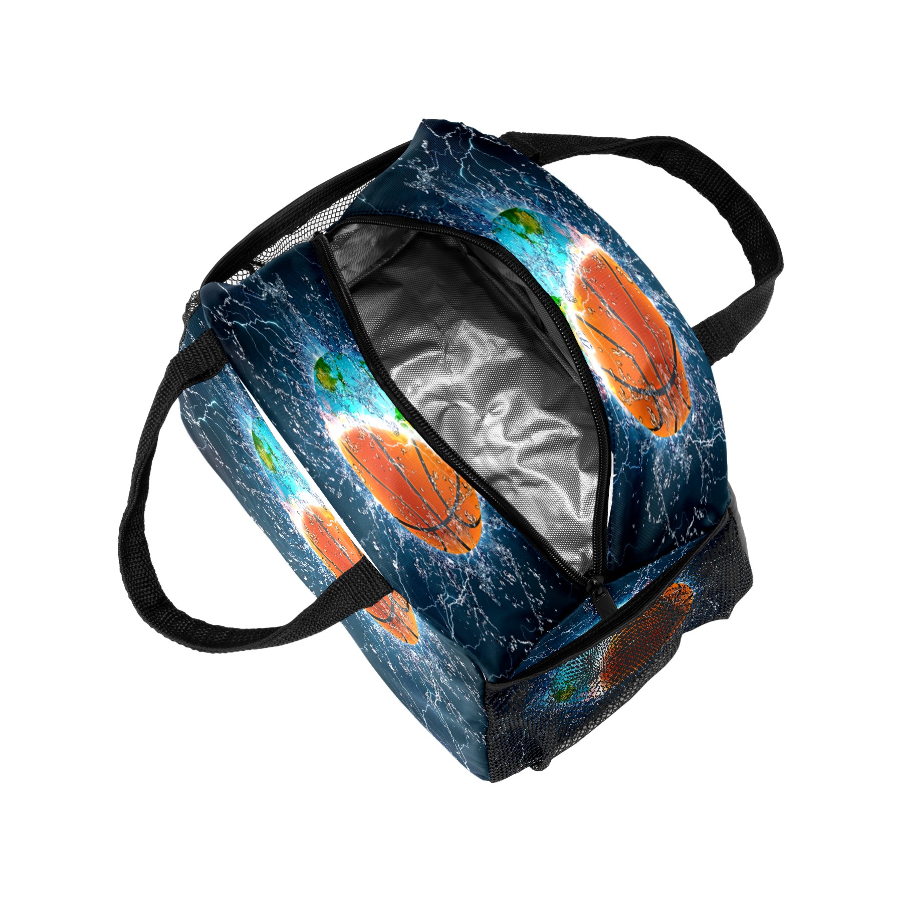 Lunch Bag for Women Men, Water Basketball Map Earth Insulated Reusable Lunch Box Thermal Cooler Tote Bag for Work Picnic Hiking Travel Beach