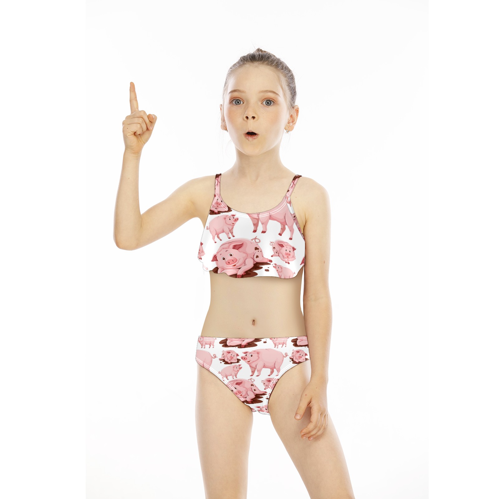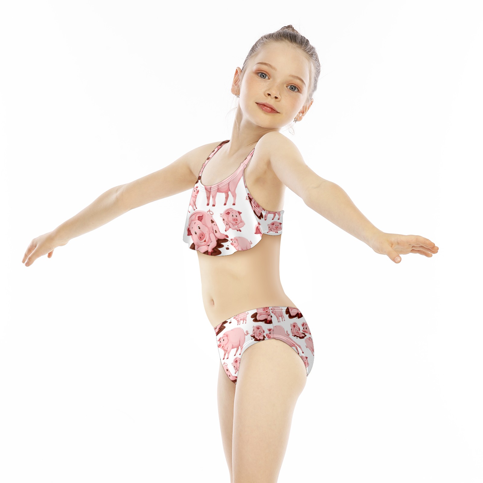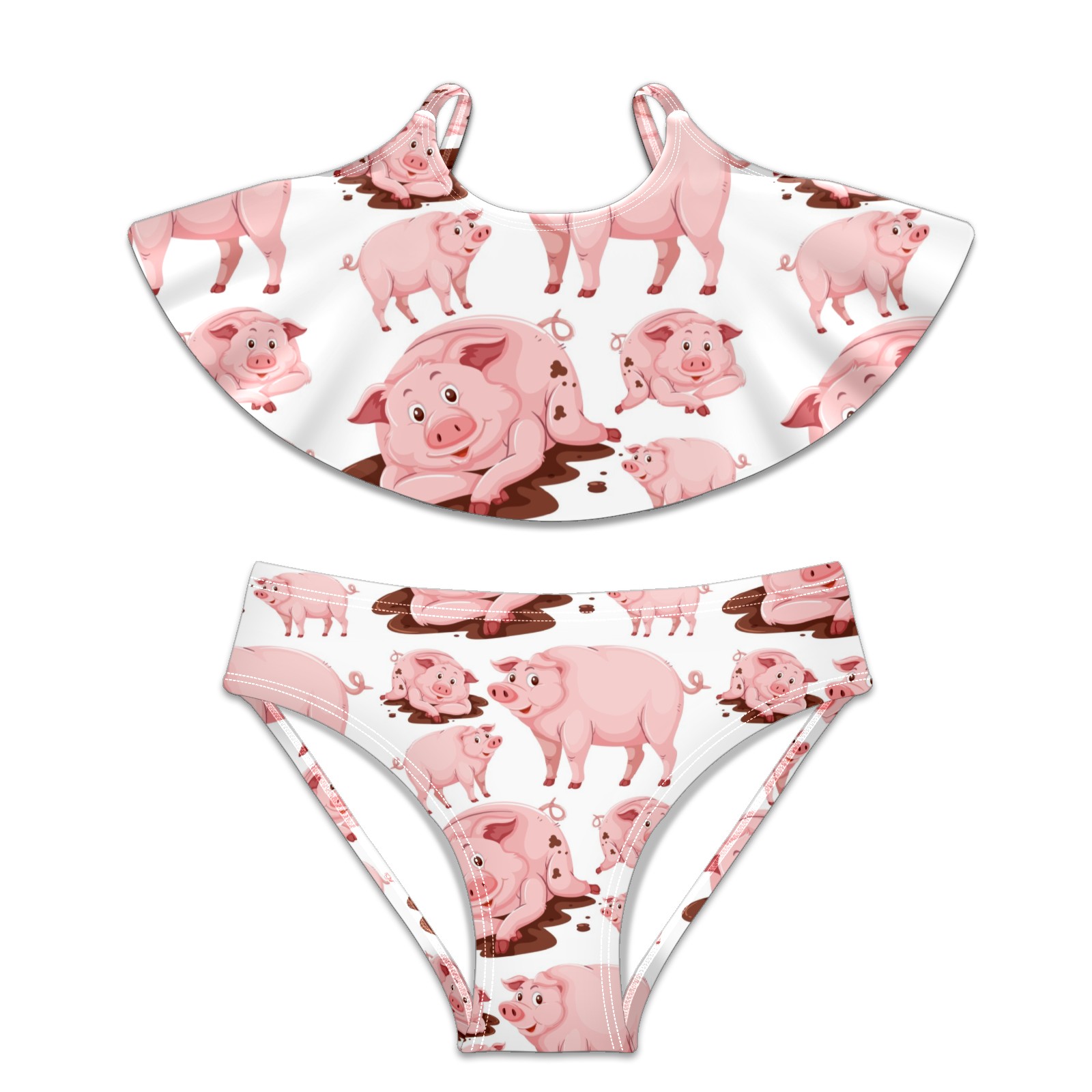 Swimsuits for Girls Two Pieces Bathing Suit Quick Dry Swimwear Pink Funny Pig Animal S
