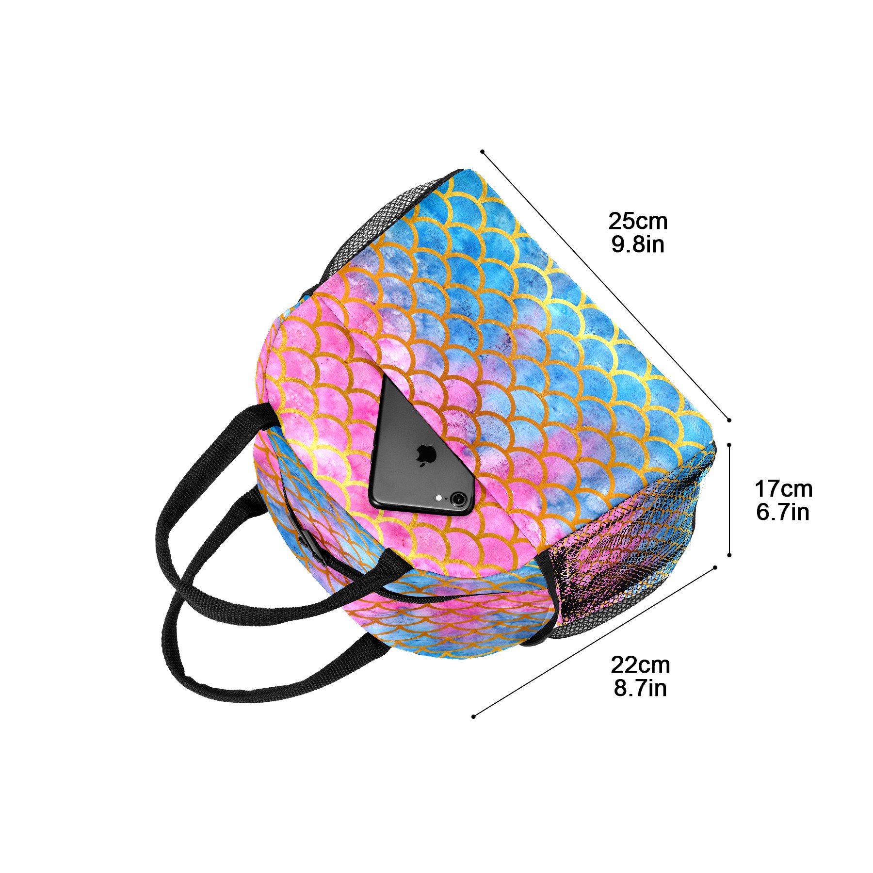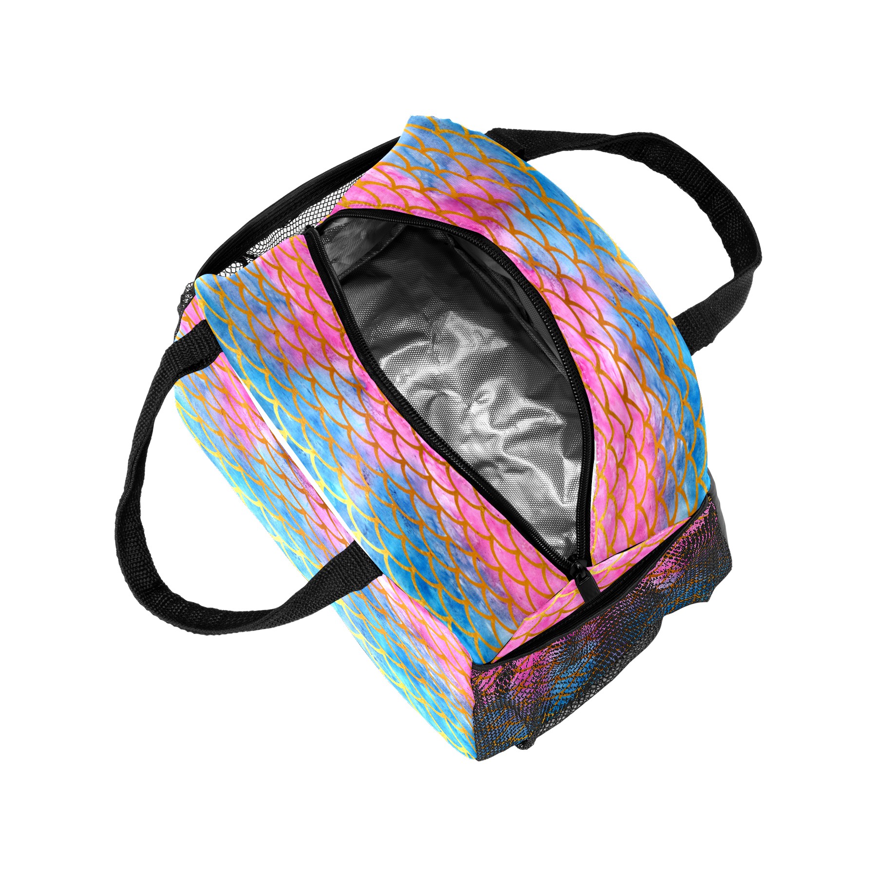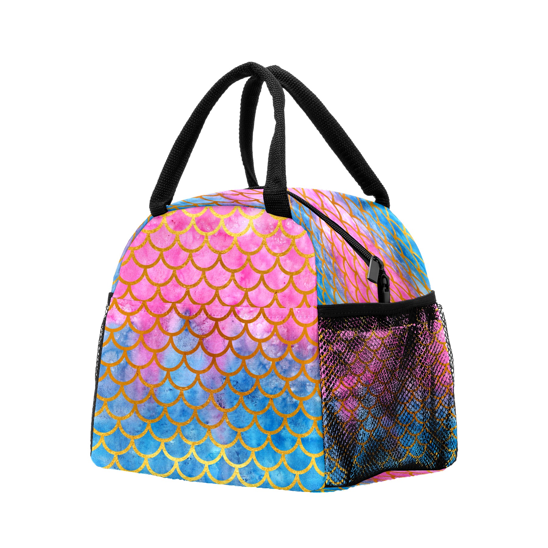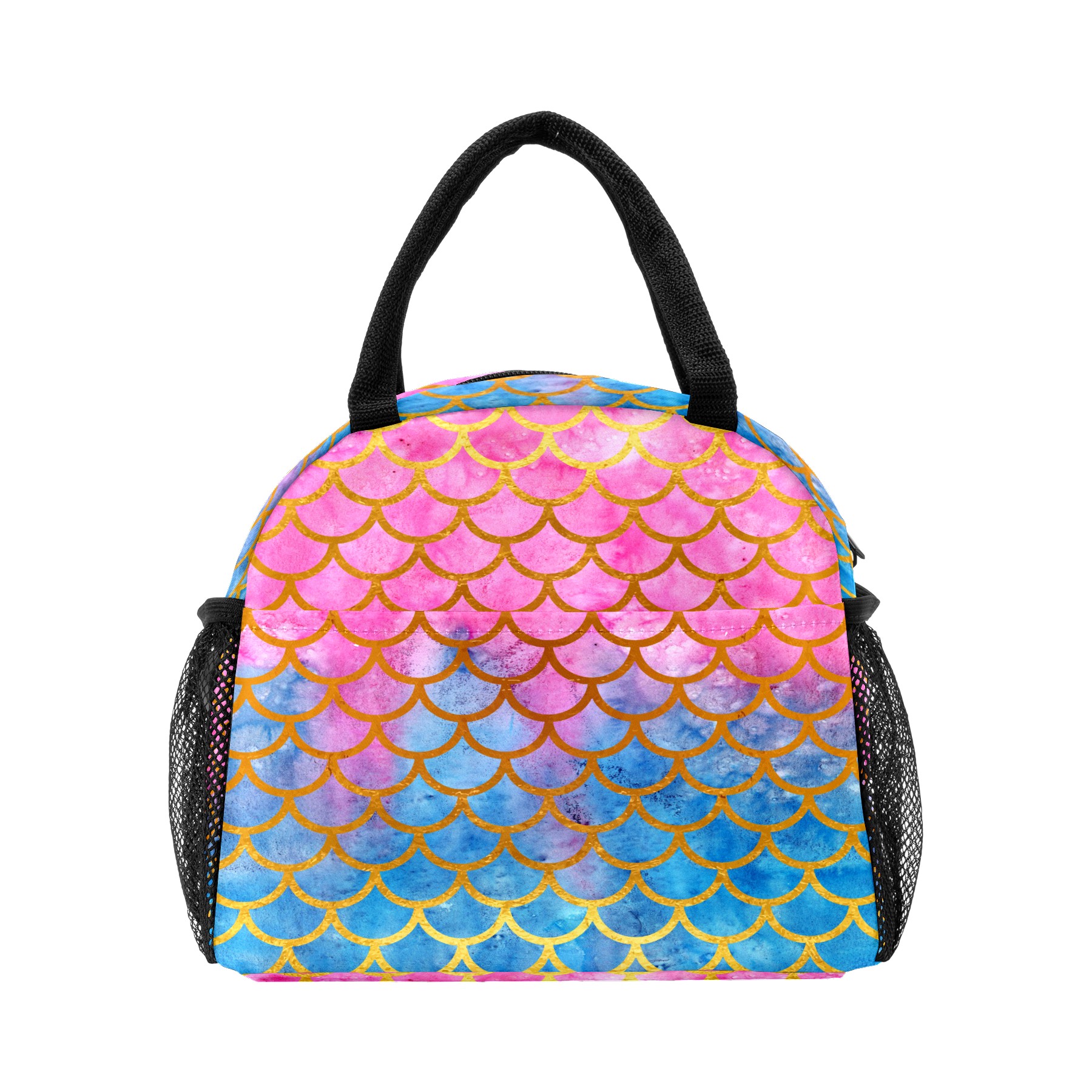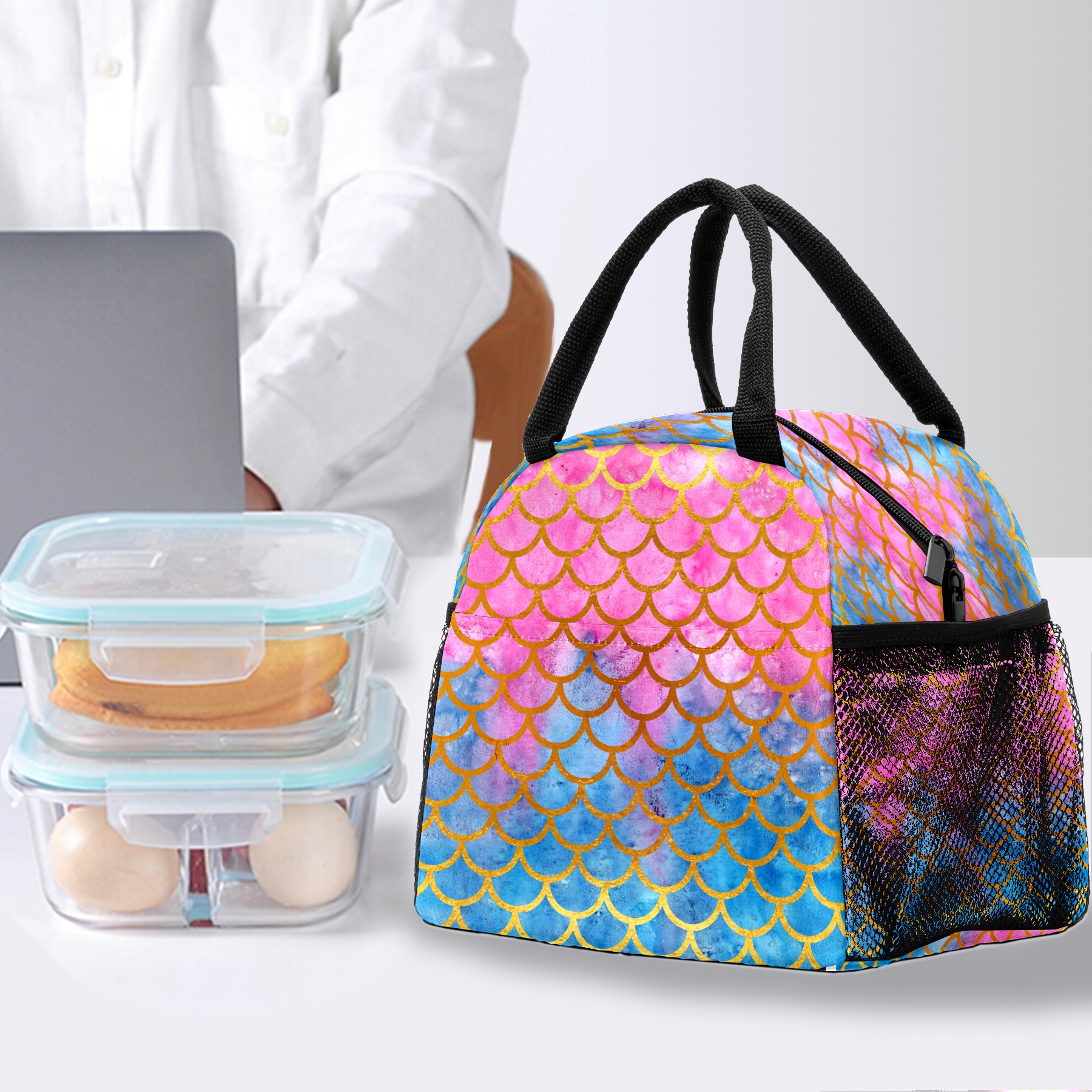 Lunch Bag for Women Men, Watercolor Mermaid Scale Insulated Reusable Lunch Box Thermal Cooler Tote Bag for Work Picnic Hiking Travel Beach