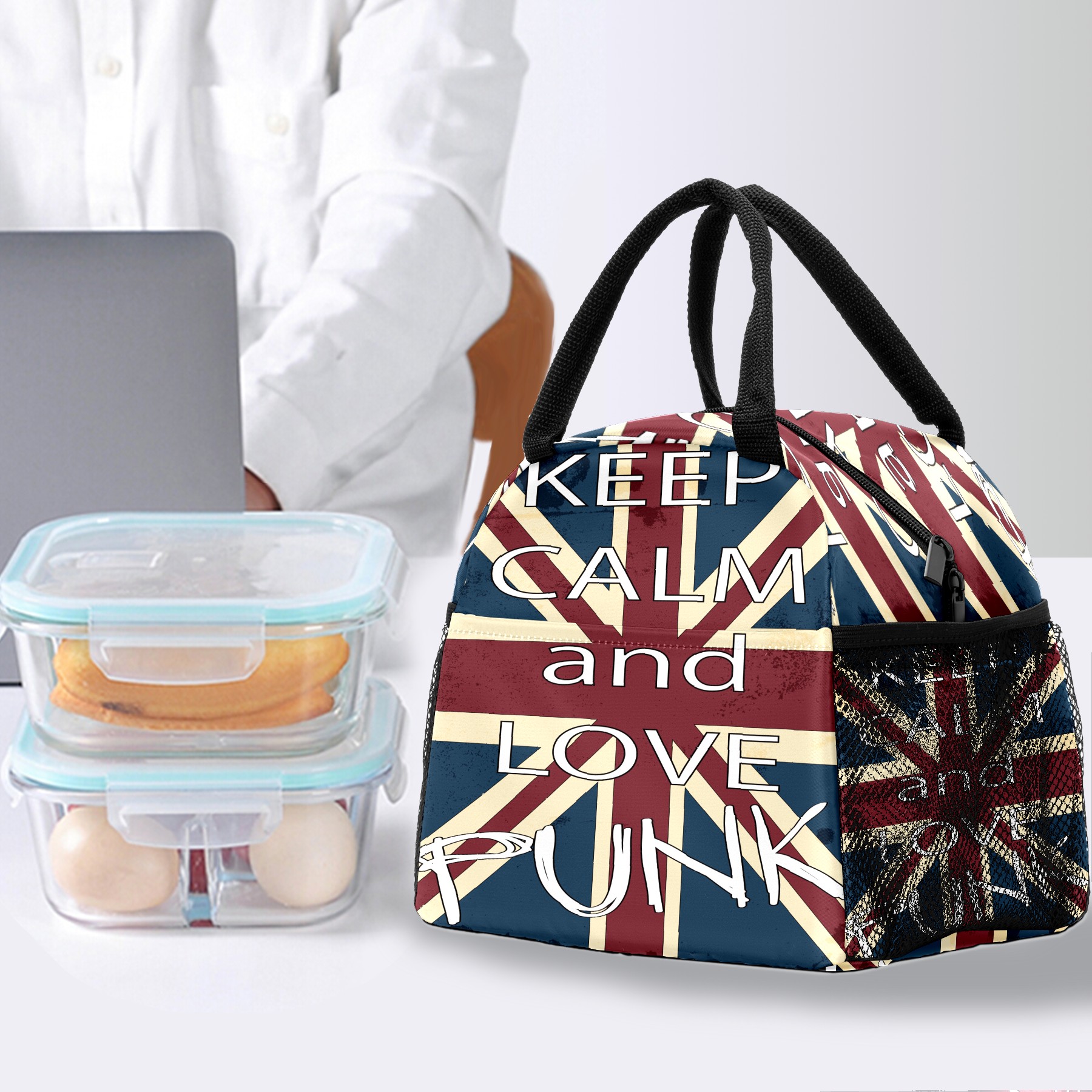Lunch Bag for Women Men, Uk England Flag Keep Calm And Love Insulated Reusable Lunch Box Thermal Cooler Tote Bag for Work Picnic Hiking Travel Beach
