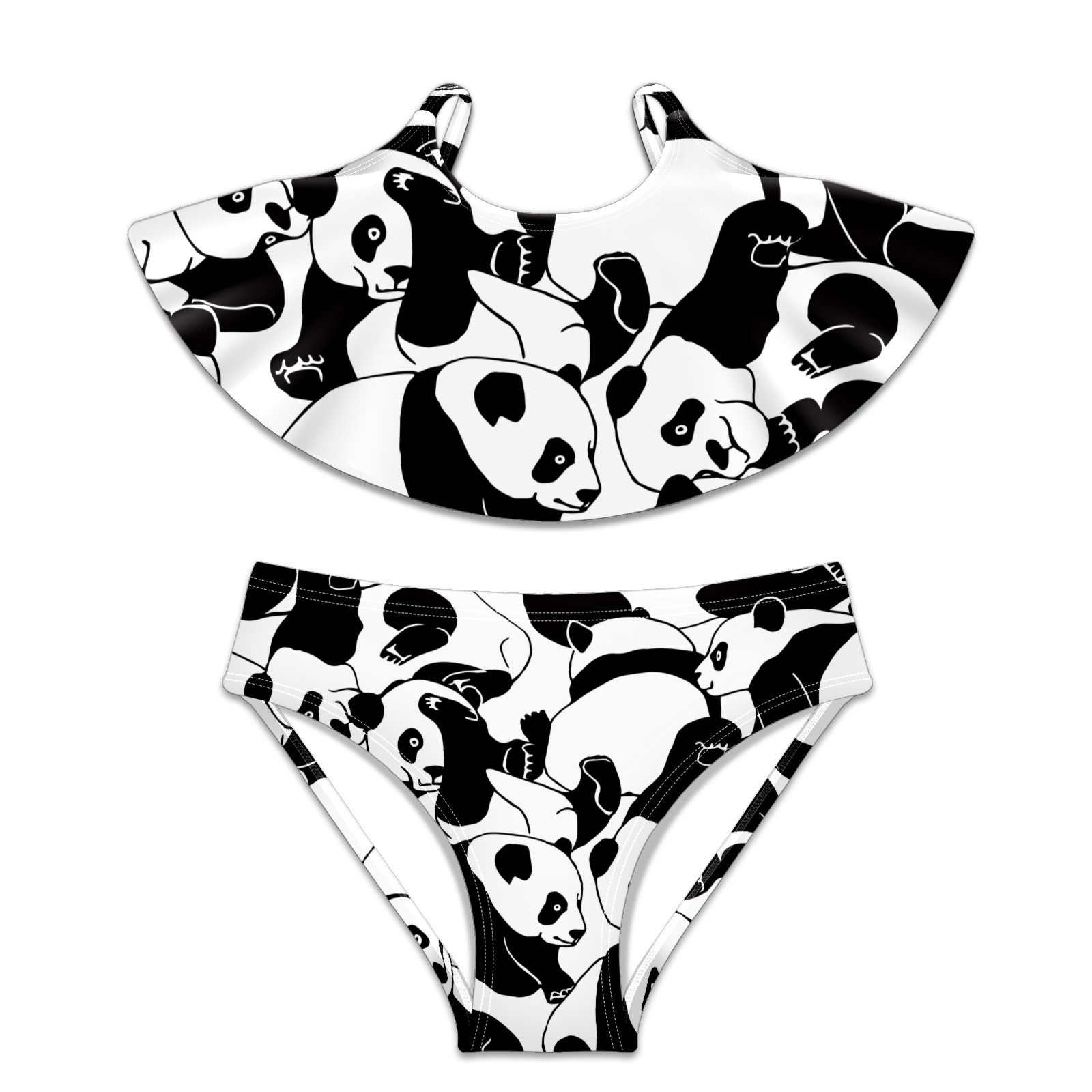 Swimsuits for Girls Two Pieces Bathing Suit Quick Dry Swimwear Pandas Black White Animal S