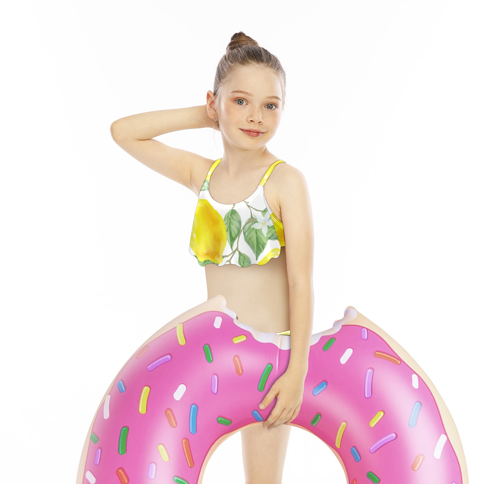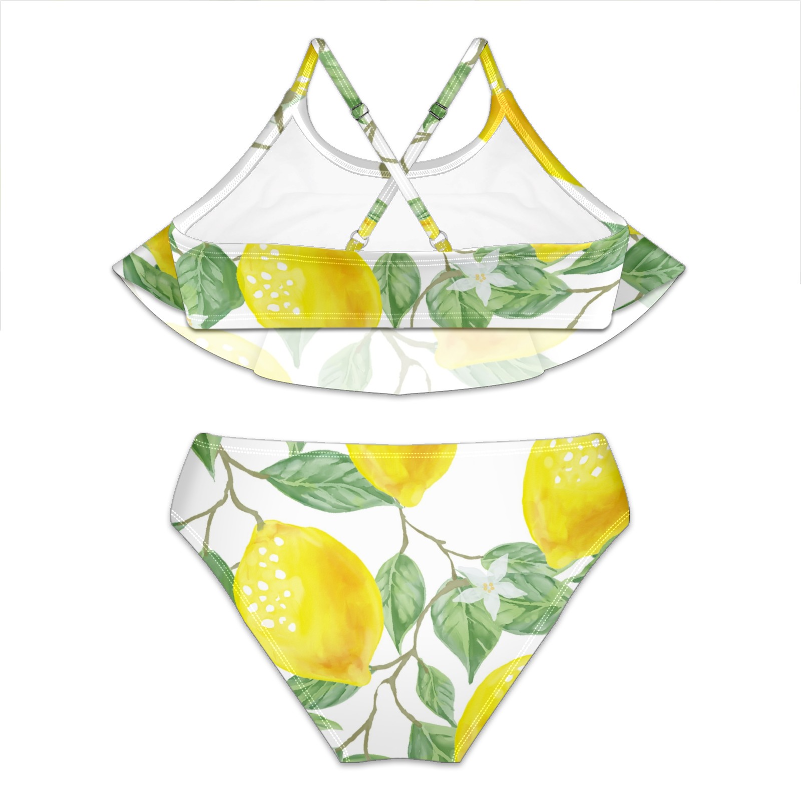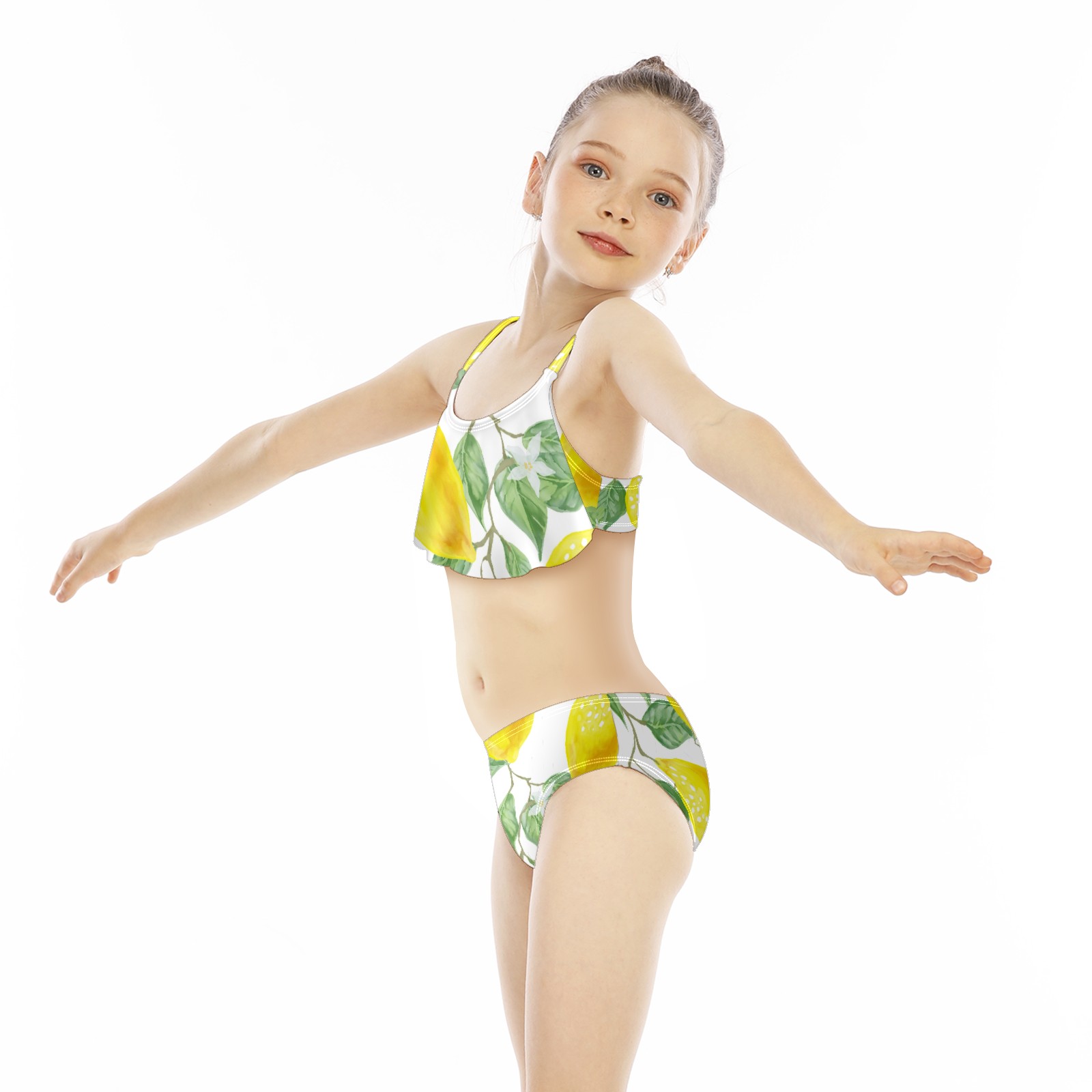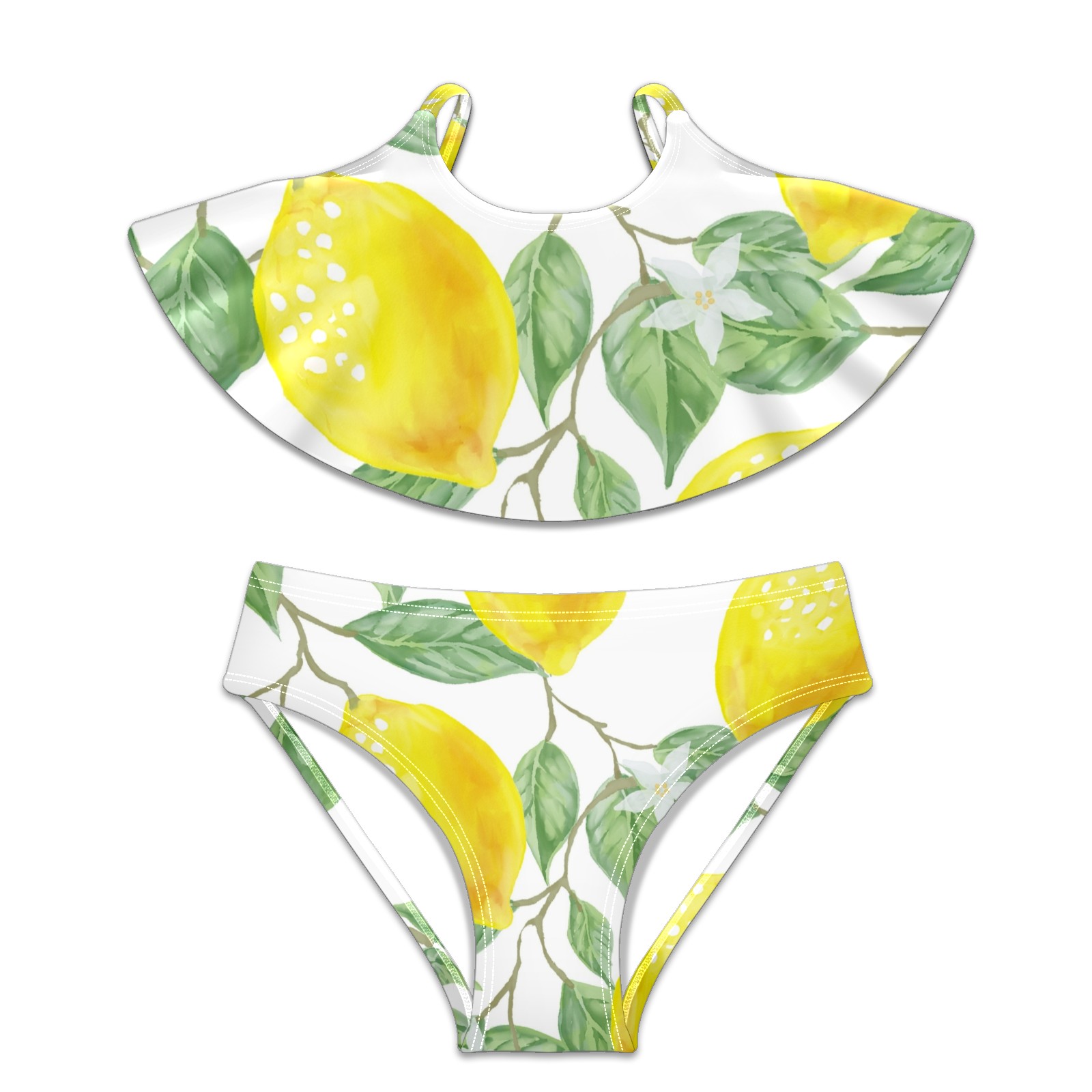 Swimsuits for Girls Two Pieces Bathing Suit Quick Dry Swimwear Painted Yellow Lemon Green Leaves S