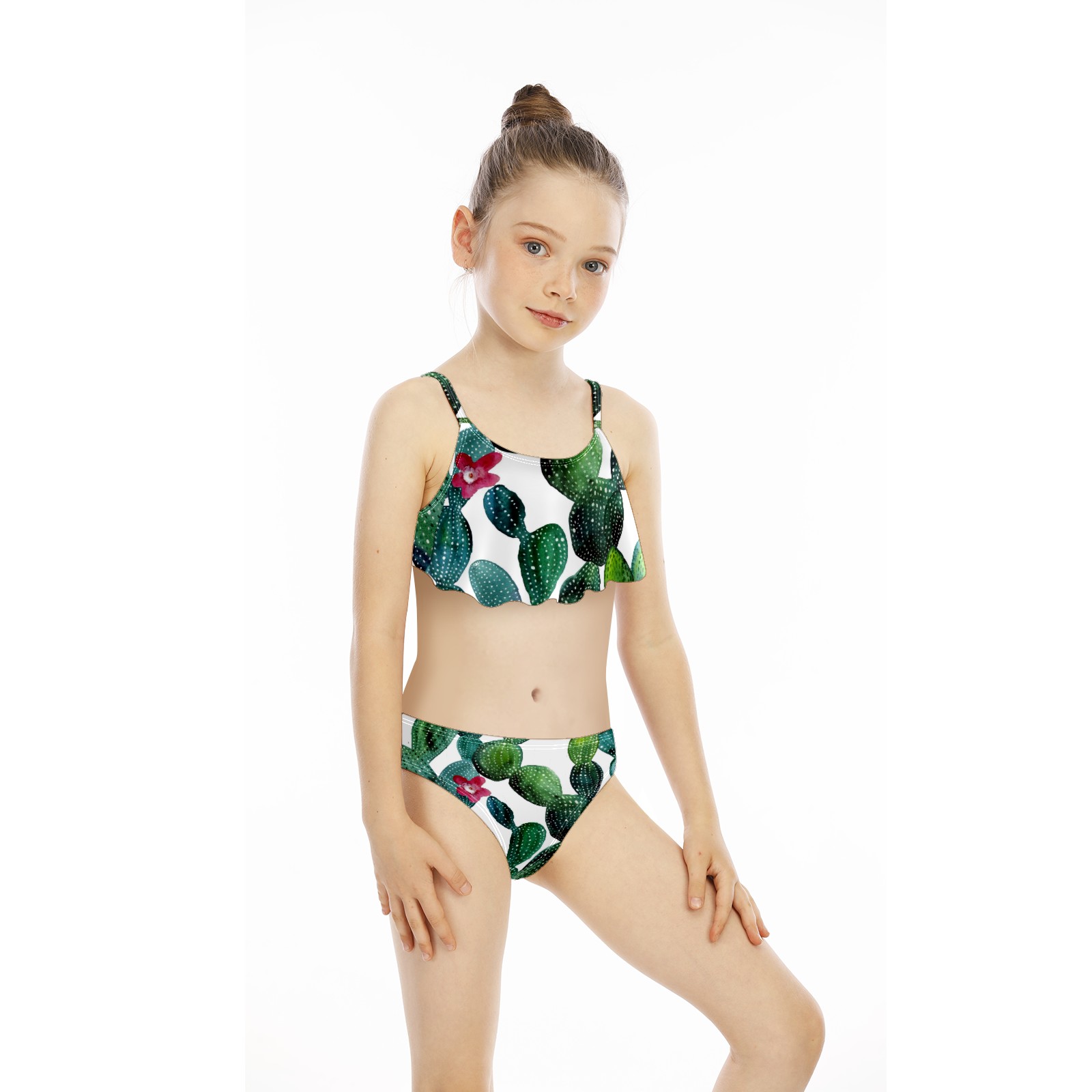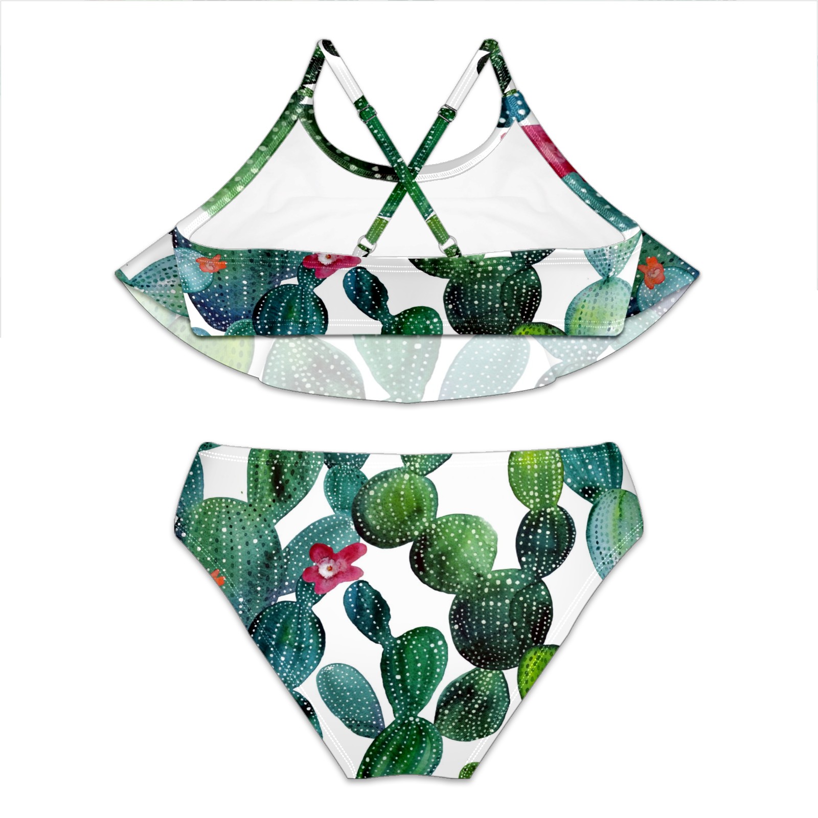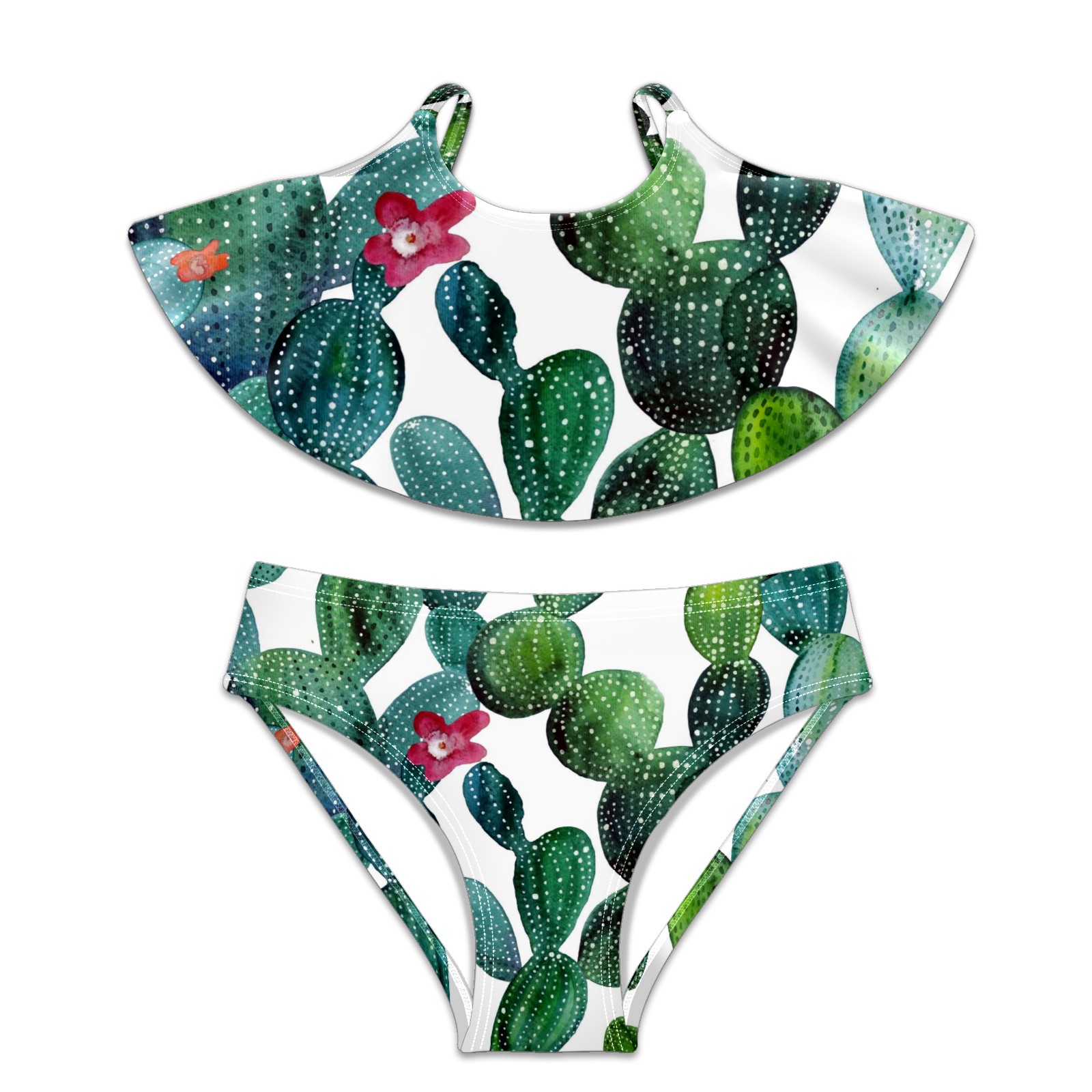 Swimsuits for Girls Two Pieces Bathing Suit Quick Dry Swimwear Painted Watercolor Cactus Bloomming Floral S