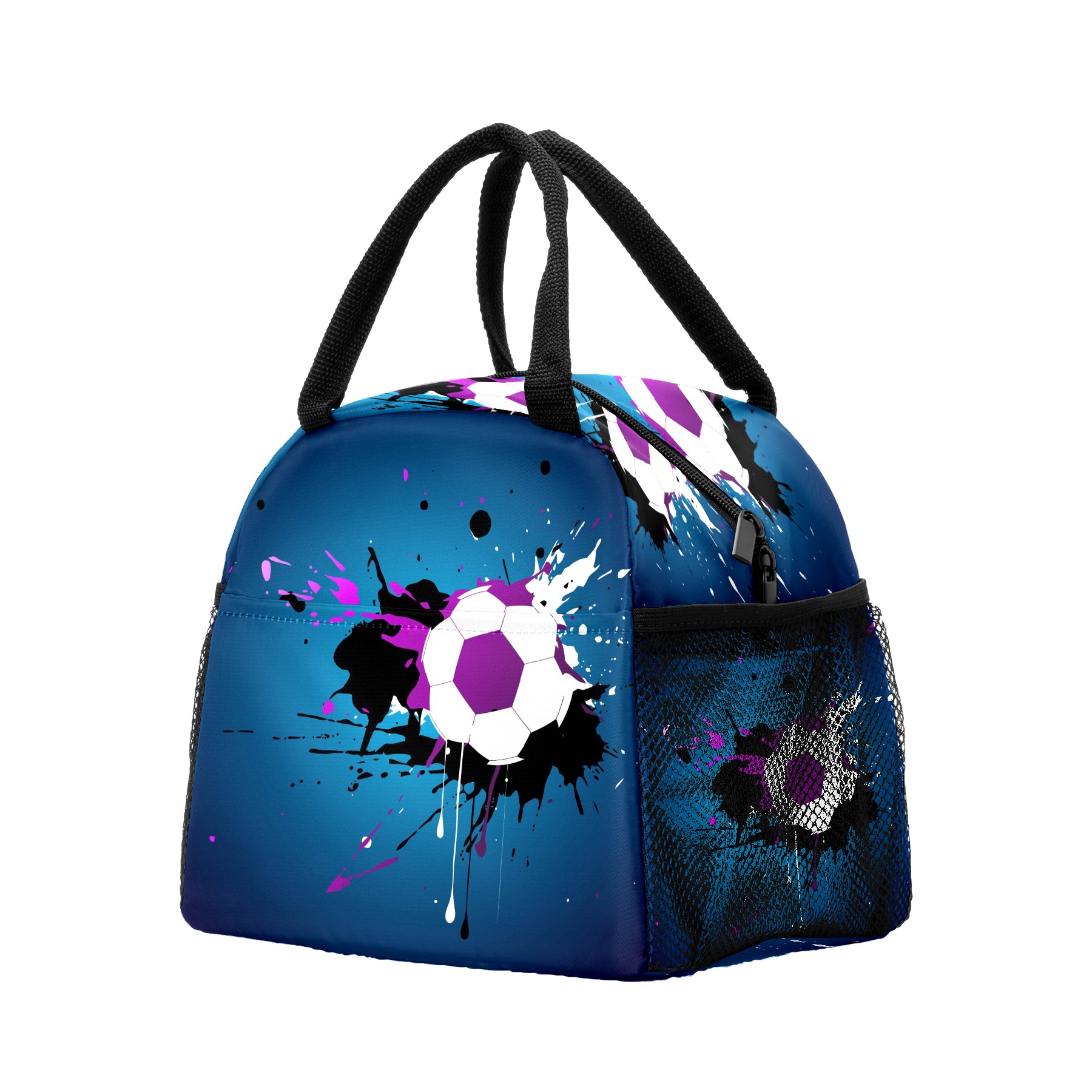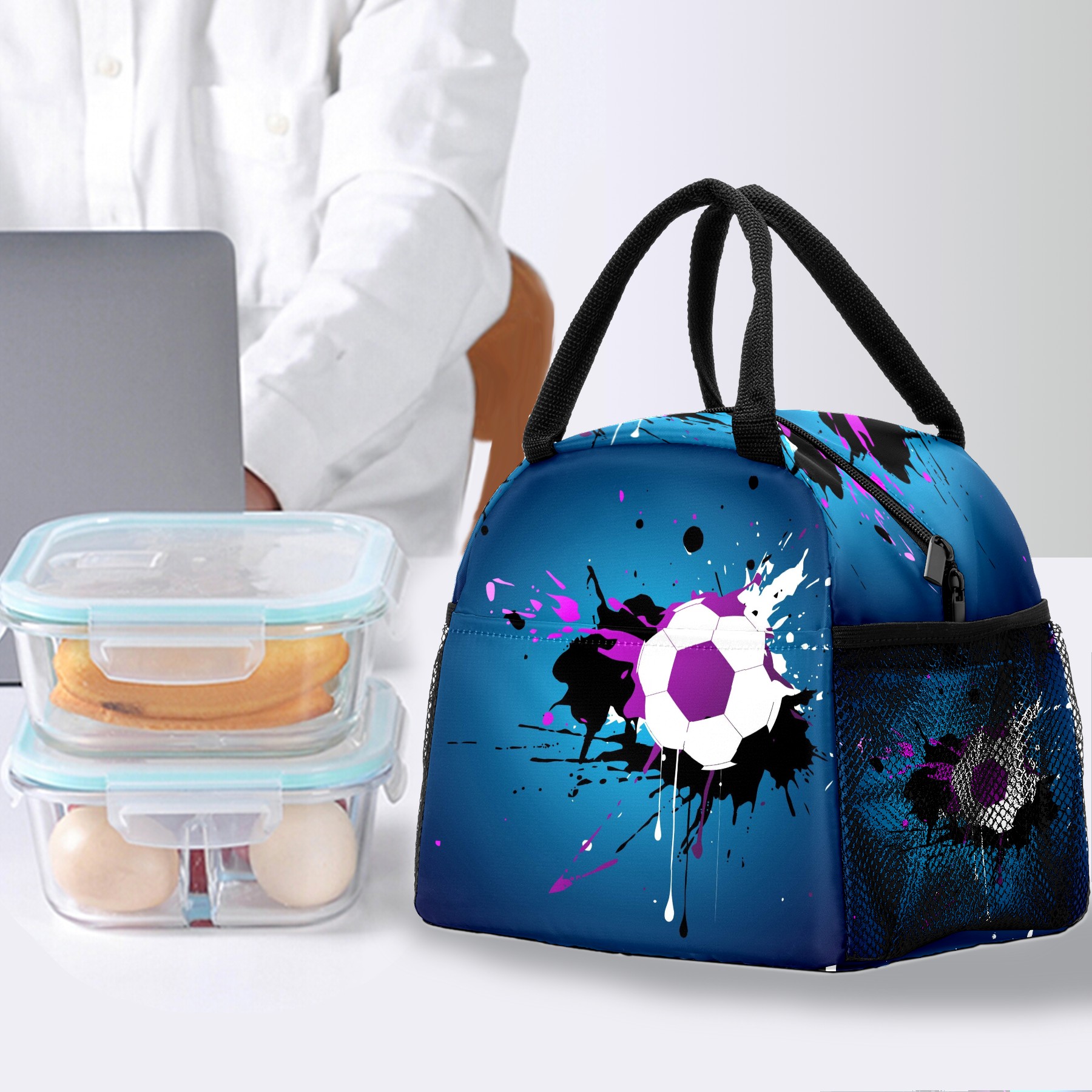 Lunch Bag for Women Men, Soccer Painting Insulated Reusable Lunch Box Thermal Cooler Tote Bag for Work Picnic Hiking Travel Beach