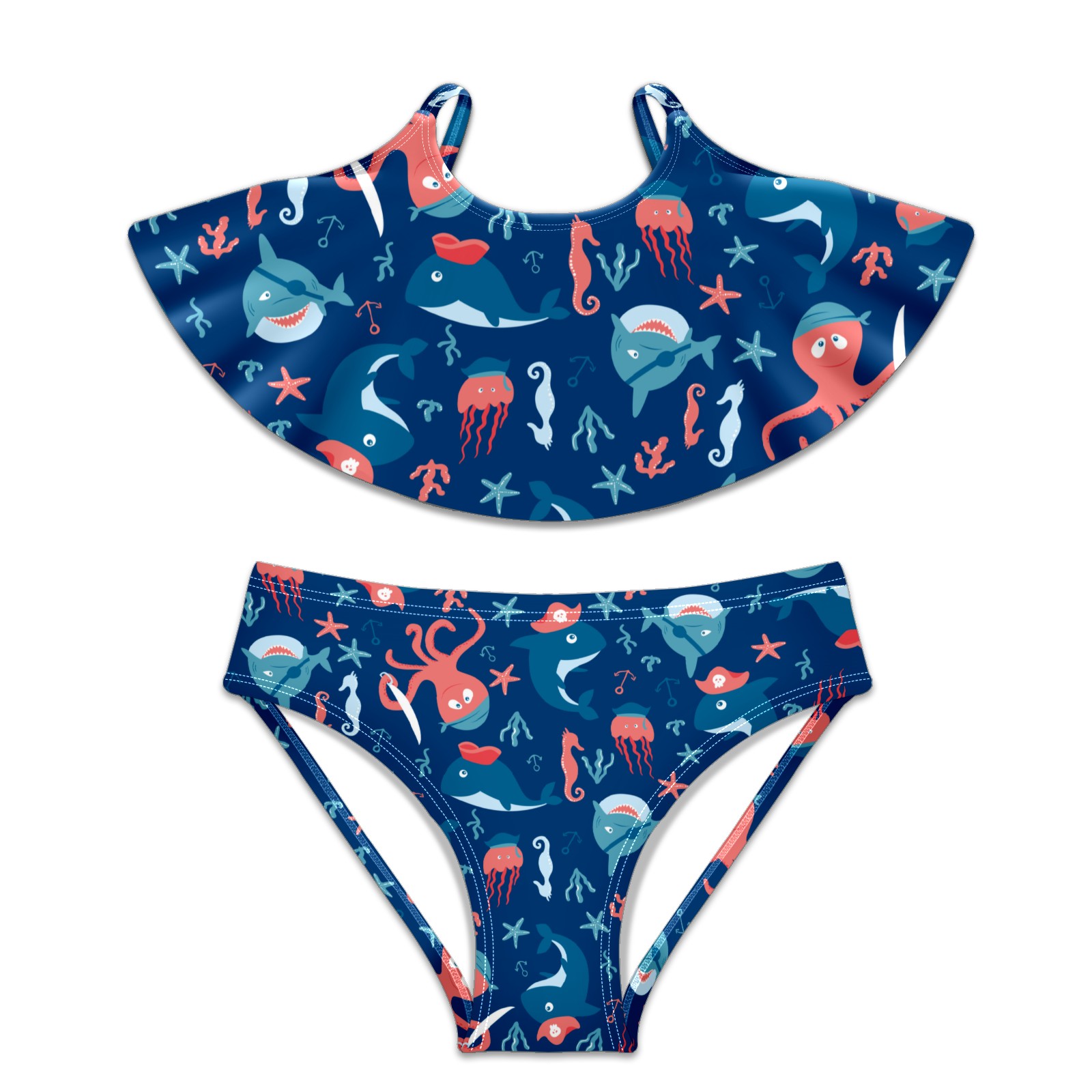 Swimsuits for Girls Two Pieces Bathing Suit Quick Dry Swimwear Ocean Octopus Shark S
