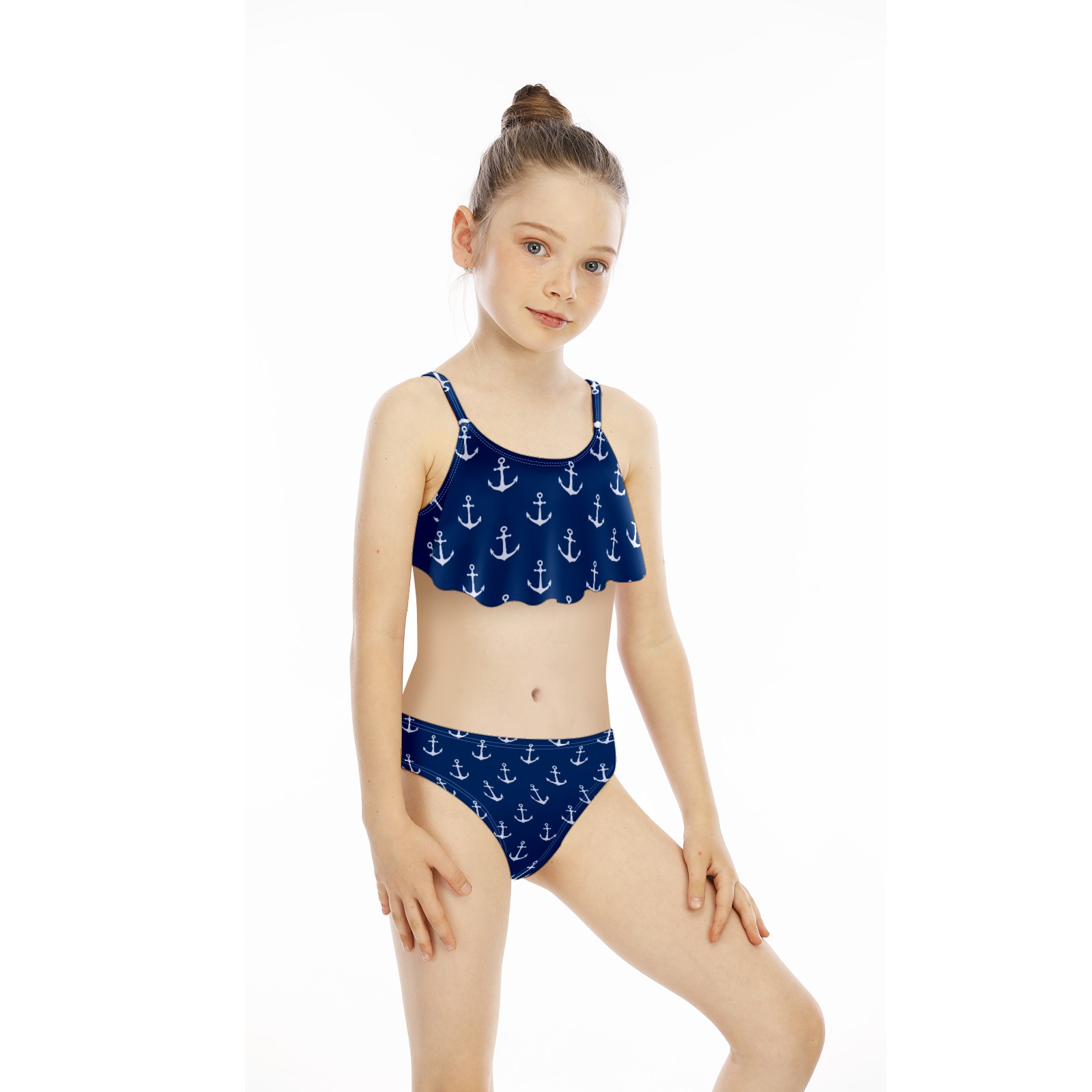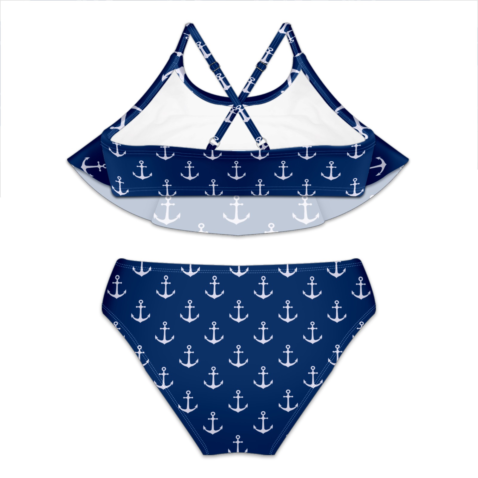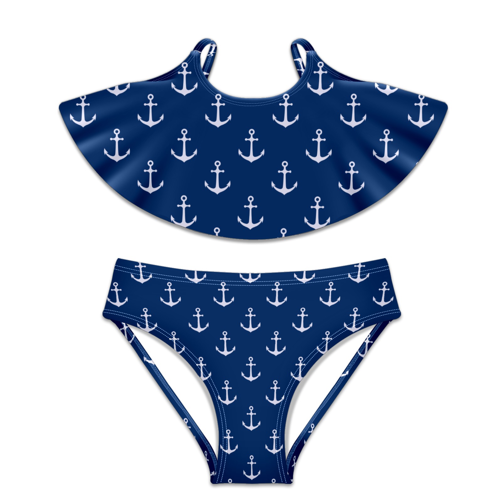 Swimsuits for Girls Two Pieces Bathing Suit Quick Dry Swimwear Ocean Blue Anchor S
