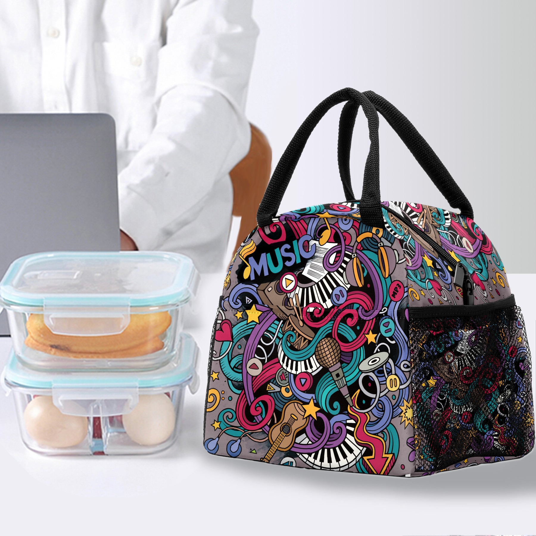 Lunch Bag for Women Men, Musical Piano Notes Pattern Insulated Reusable Lunch Box Thermal Cooler Tote Bag for Work Picnic Hiking Travel Beach