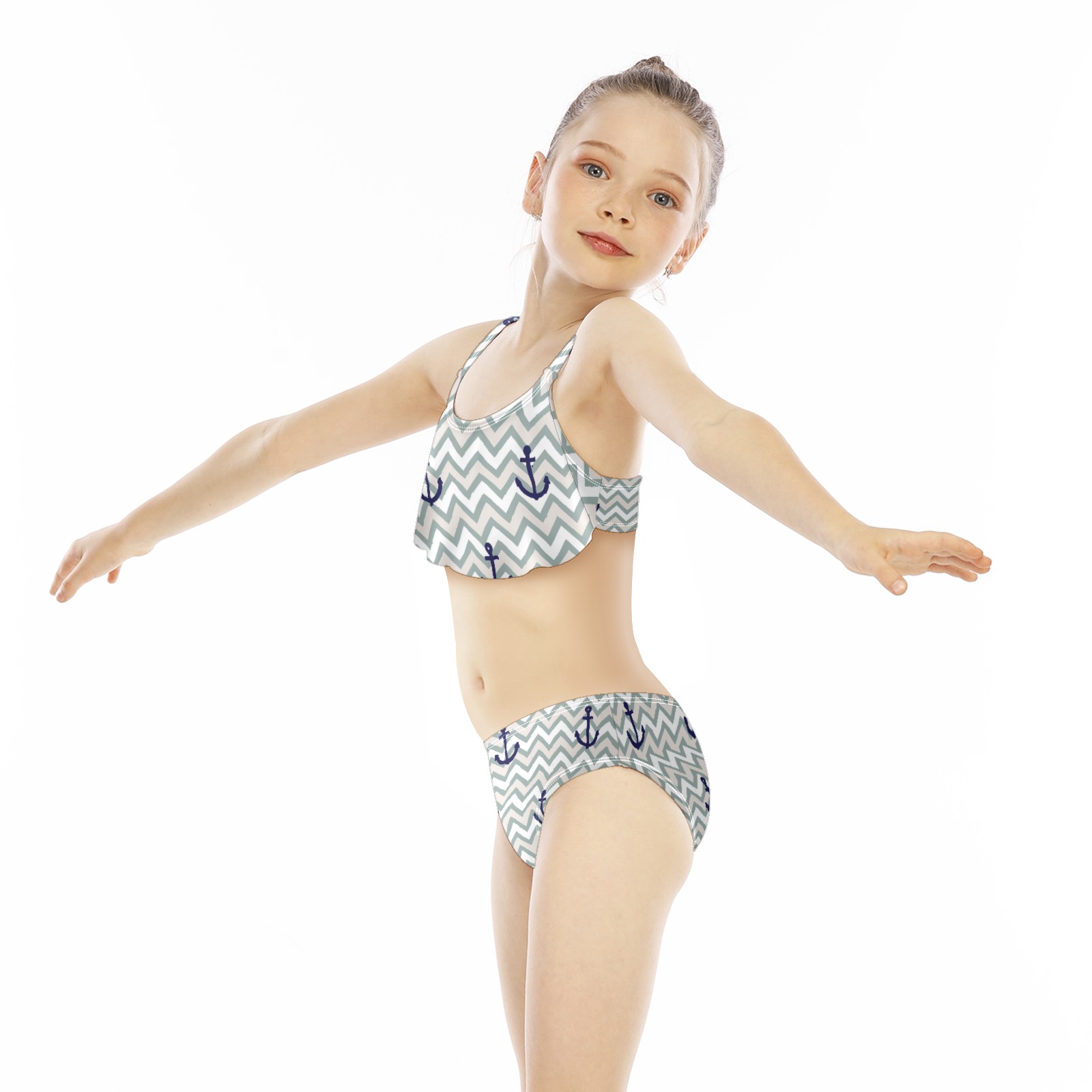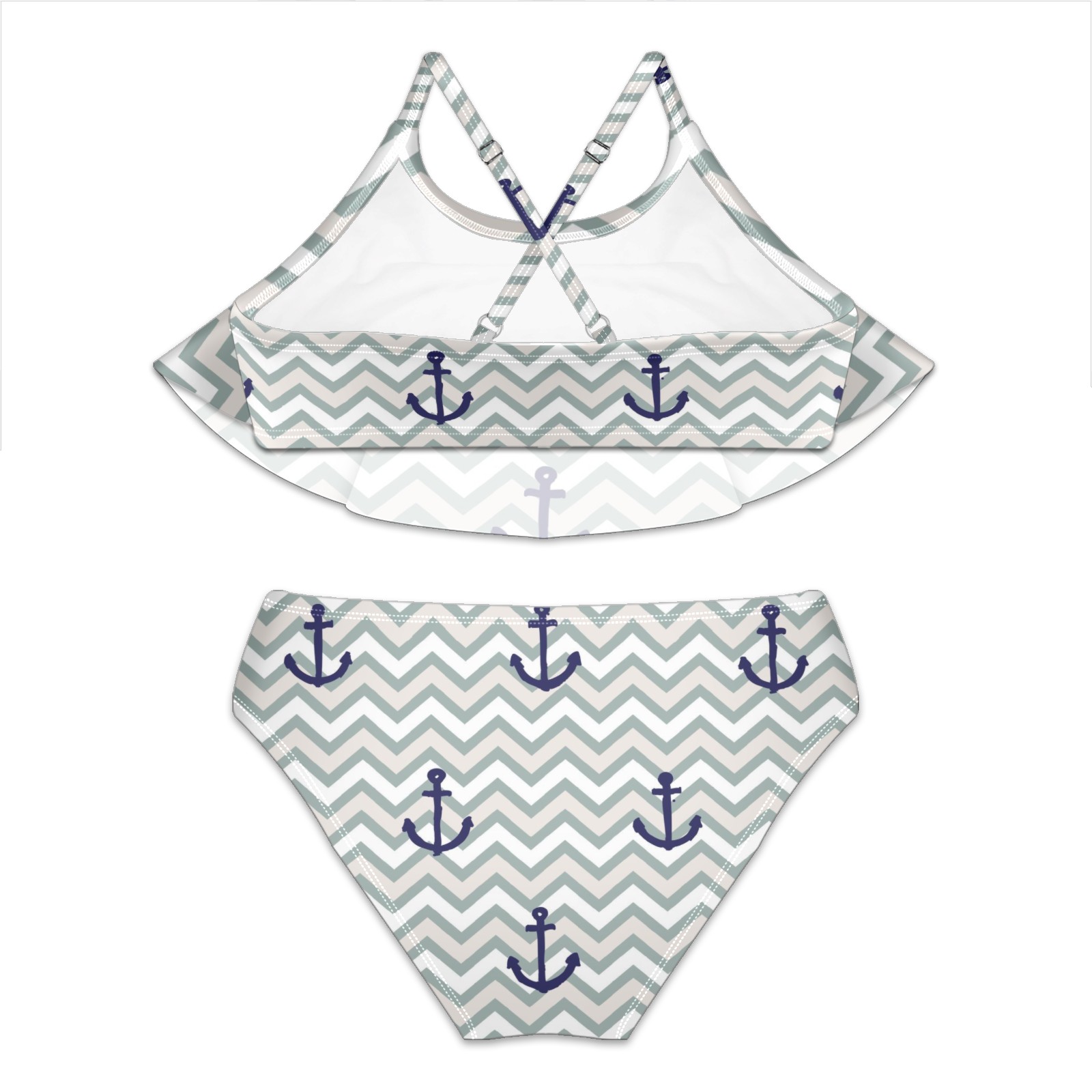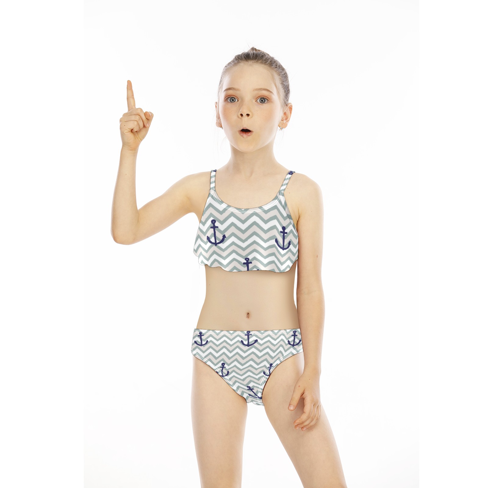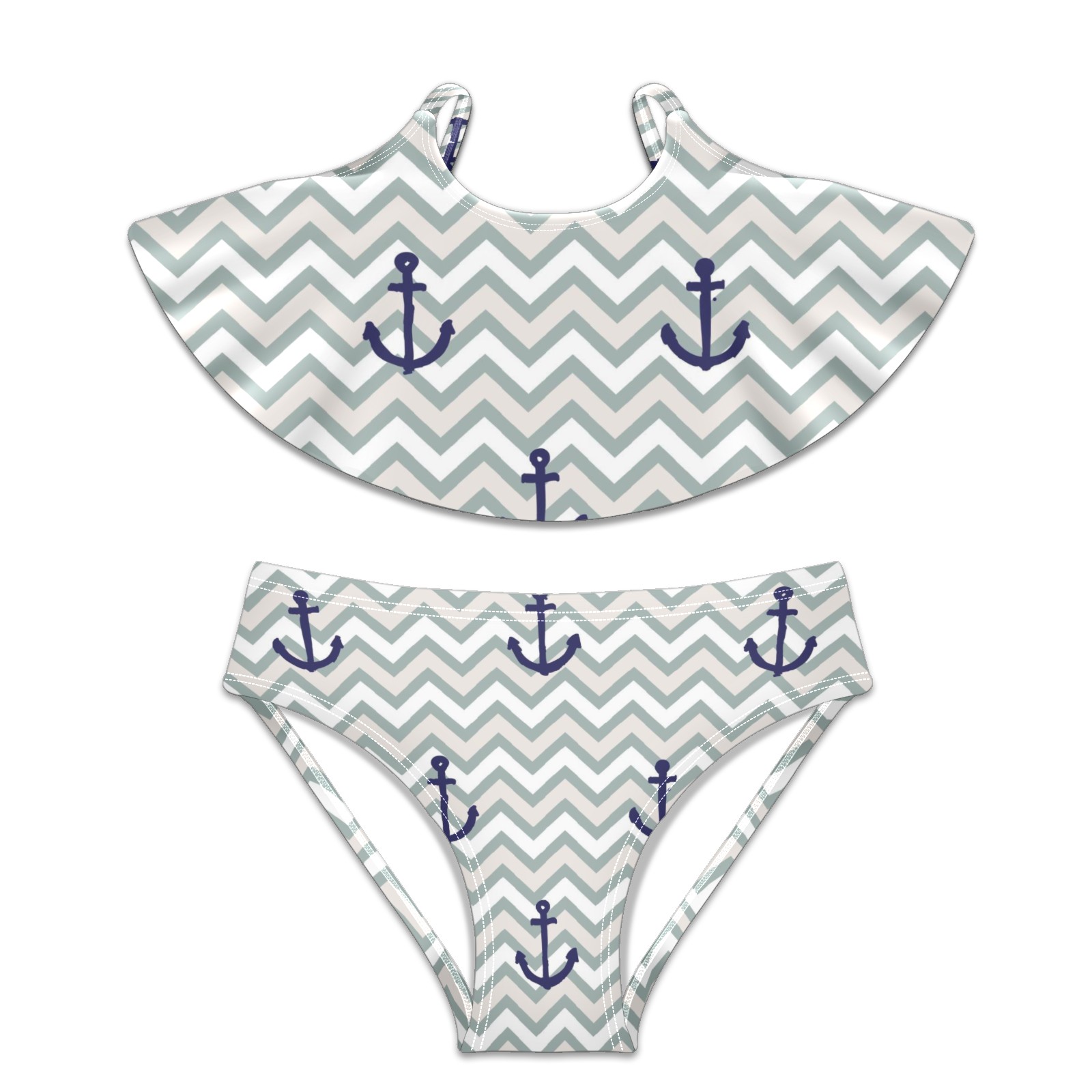 Swimsuits for Girls Two Pieces Bathing Suit Quick Dry Swimwear Navy Blue Ship Anchor Grey Zigzag S