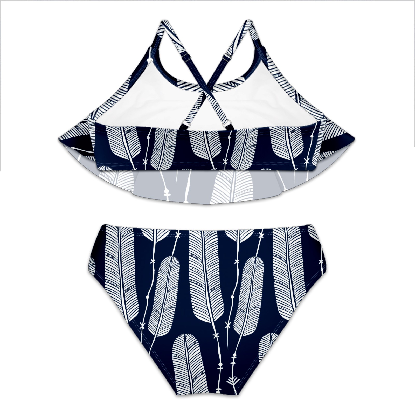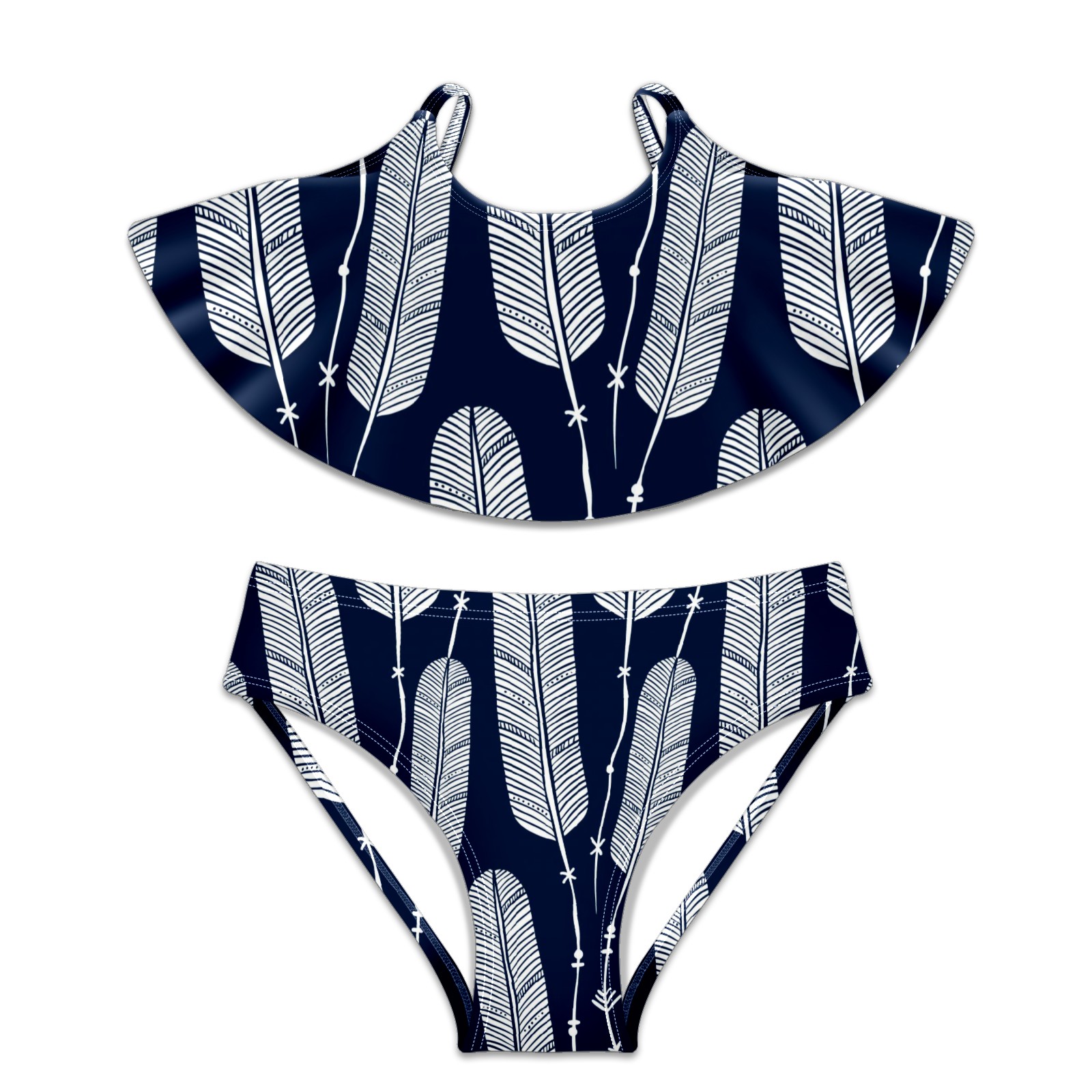Swimsuits for Girls Two Pieces Bathing Suit Quick Dry Swimwear Navy Blue Leaf Boho Bohemia S