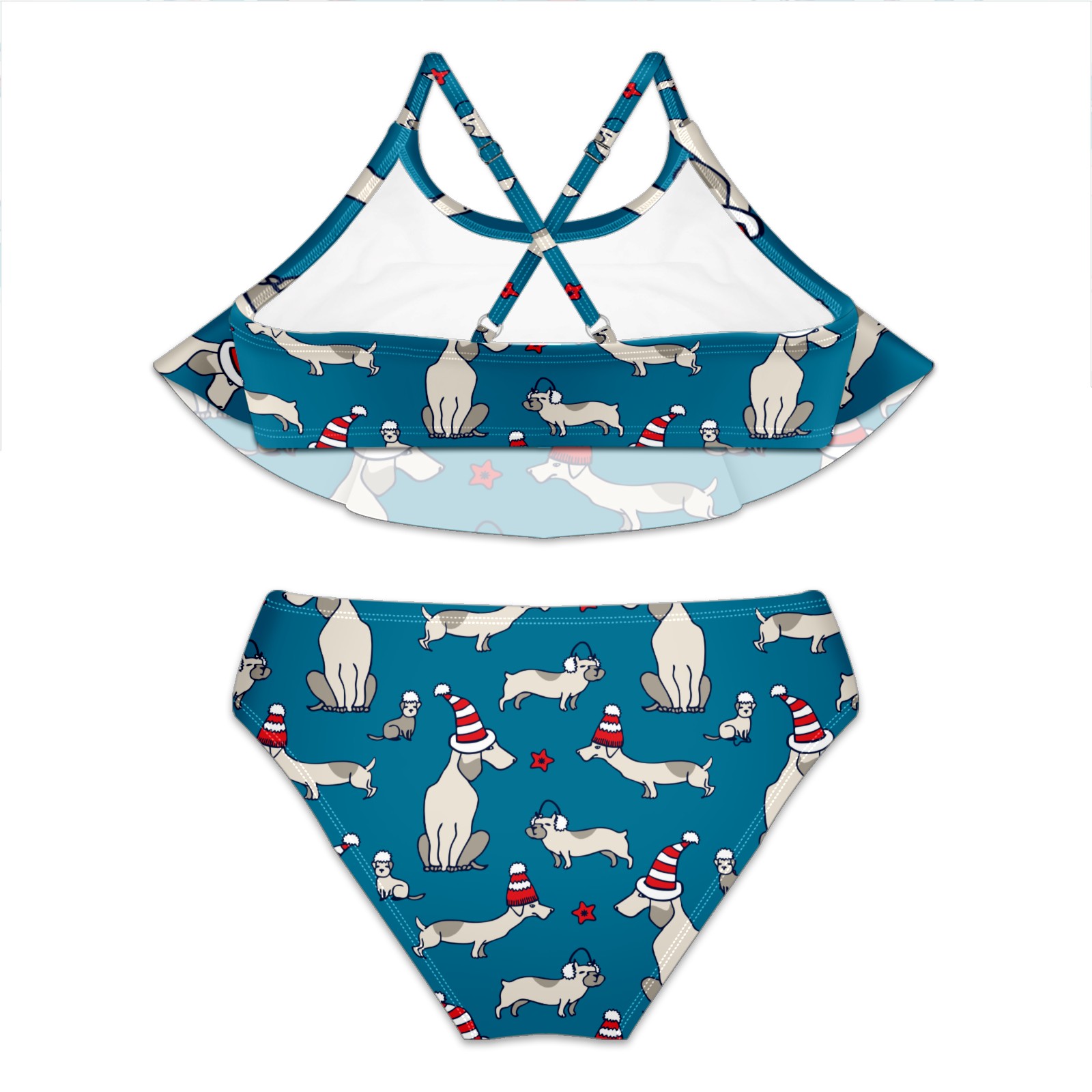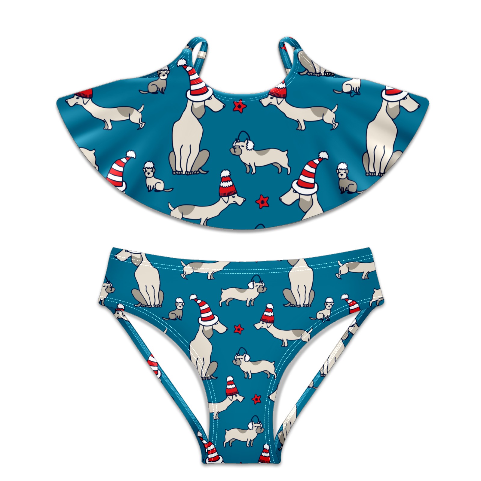 Swimsuits for Girls Two Pieces Bathing Suit Quick Dry Swimwear Merry Christmas Hat Animal Dog S