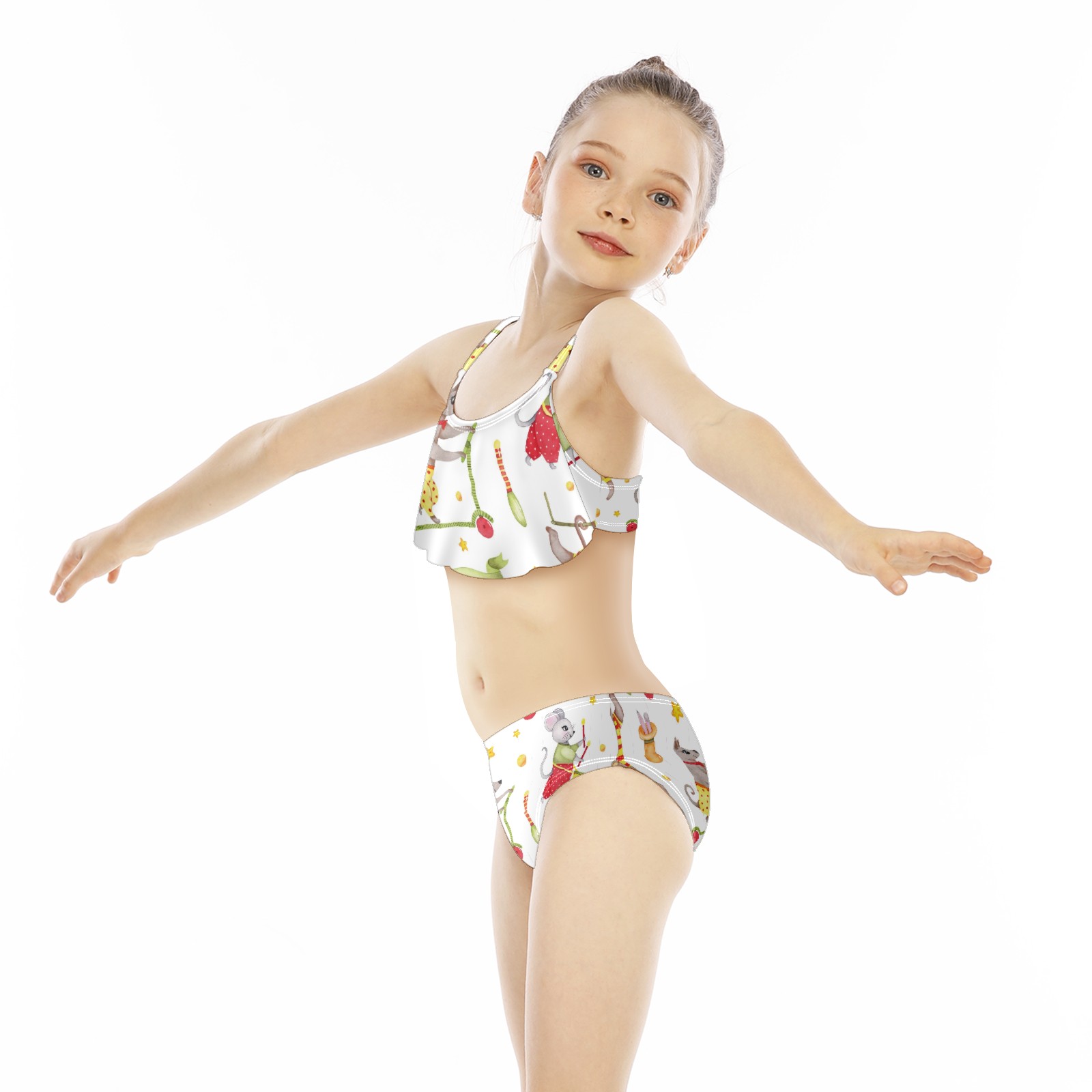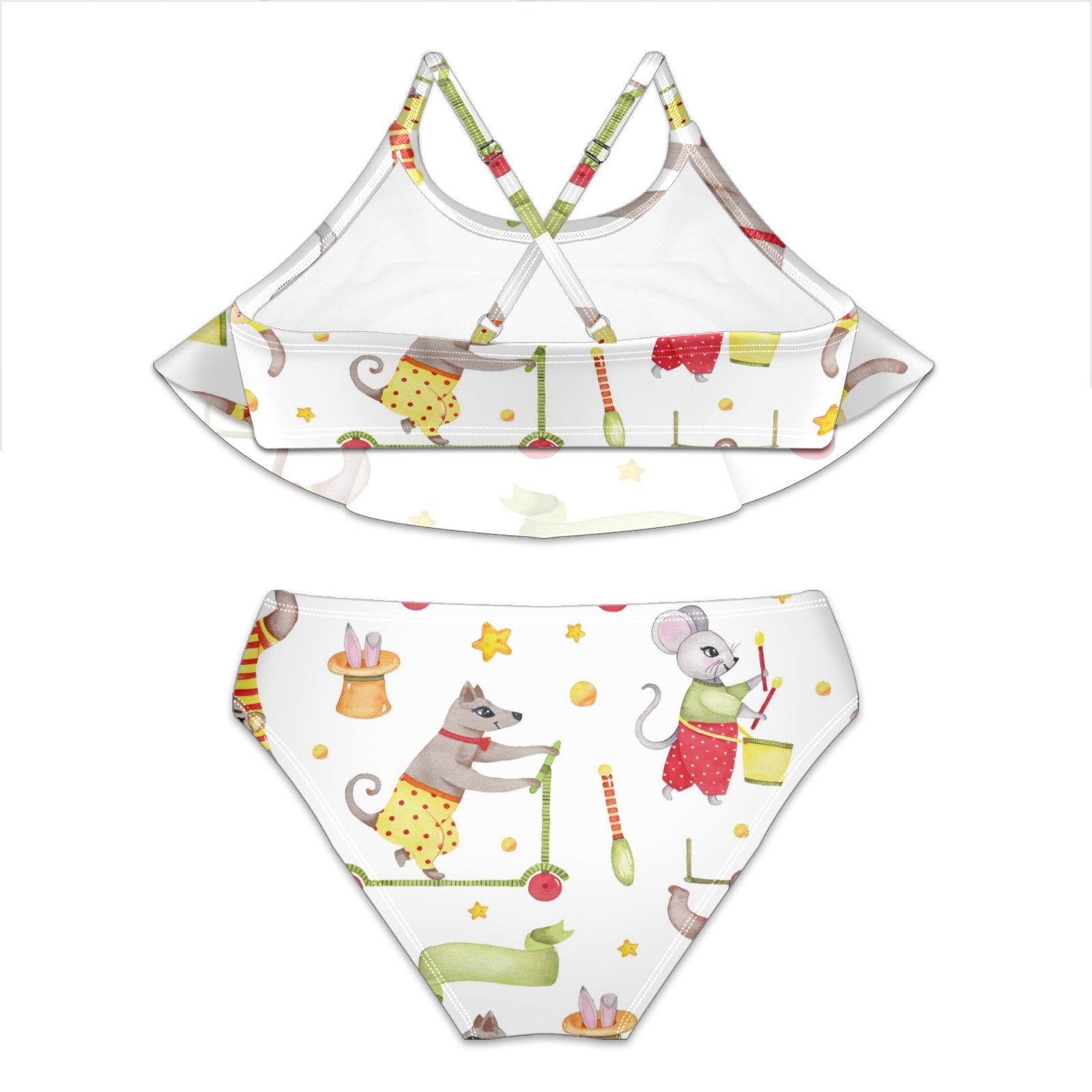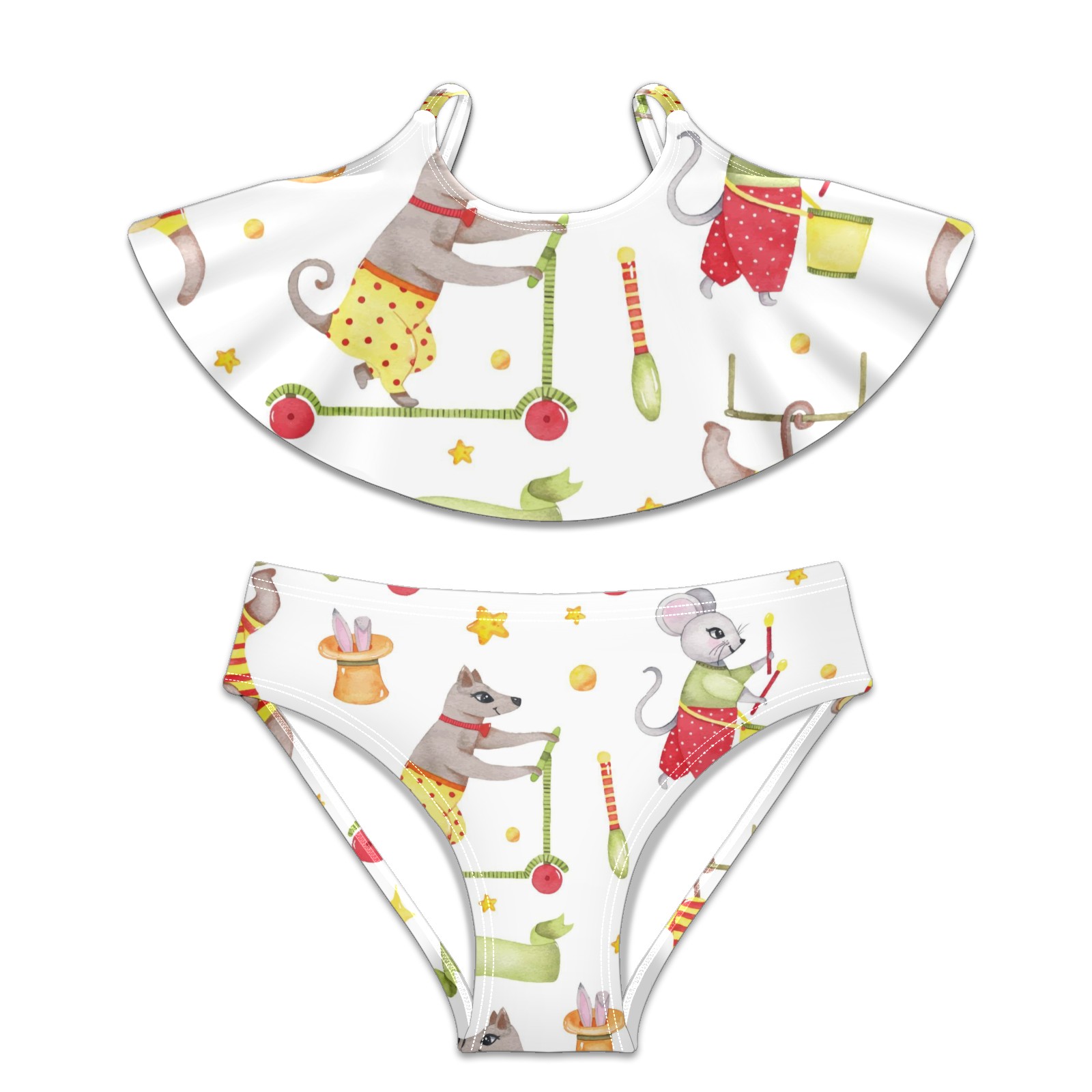 Swimsuits for Girls Two Pieces Bathing Suit Quick Dry Swimwear Monkey Dog Mouse Rabbit Playing Painting S