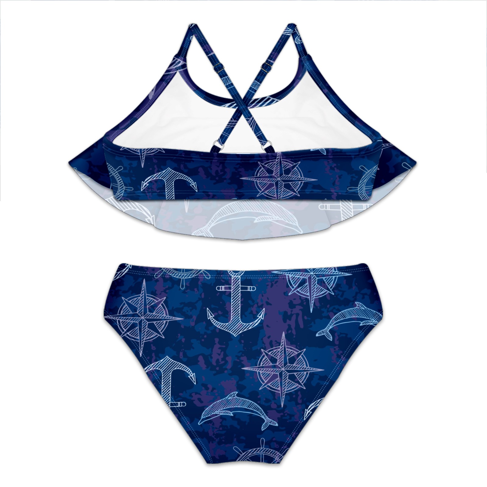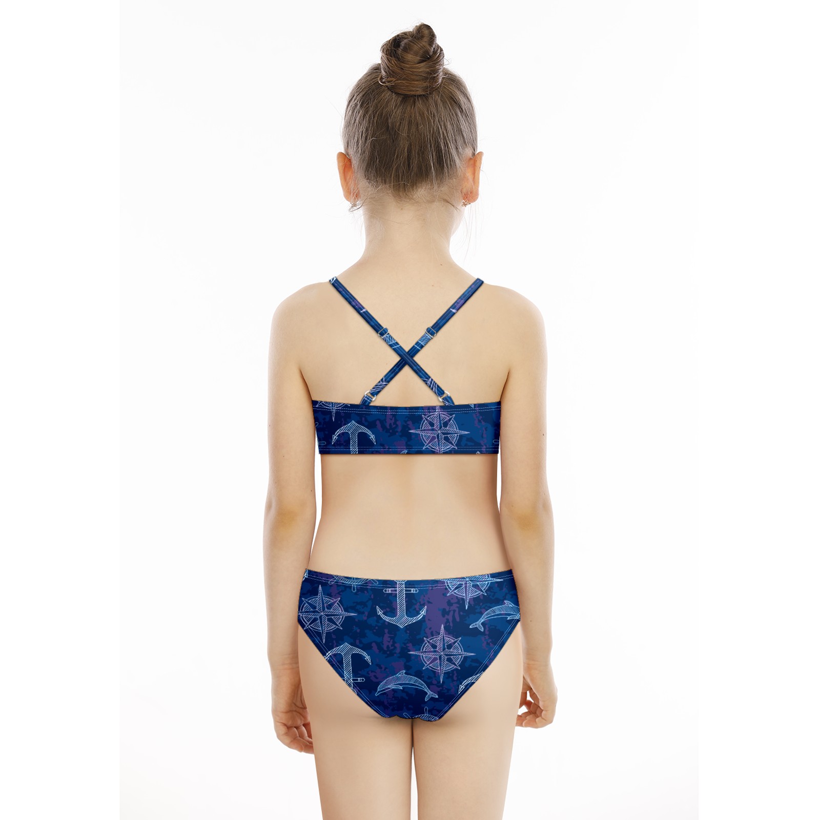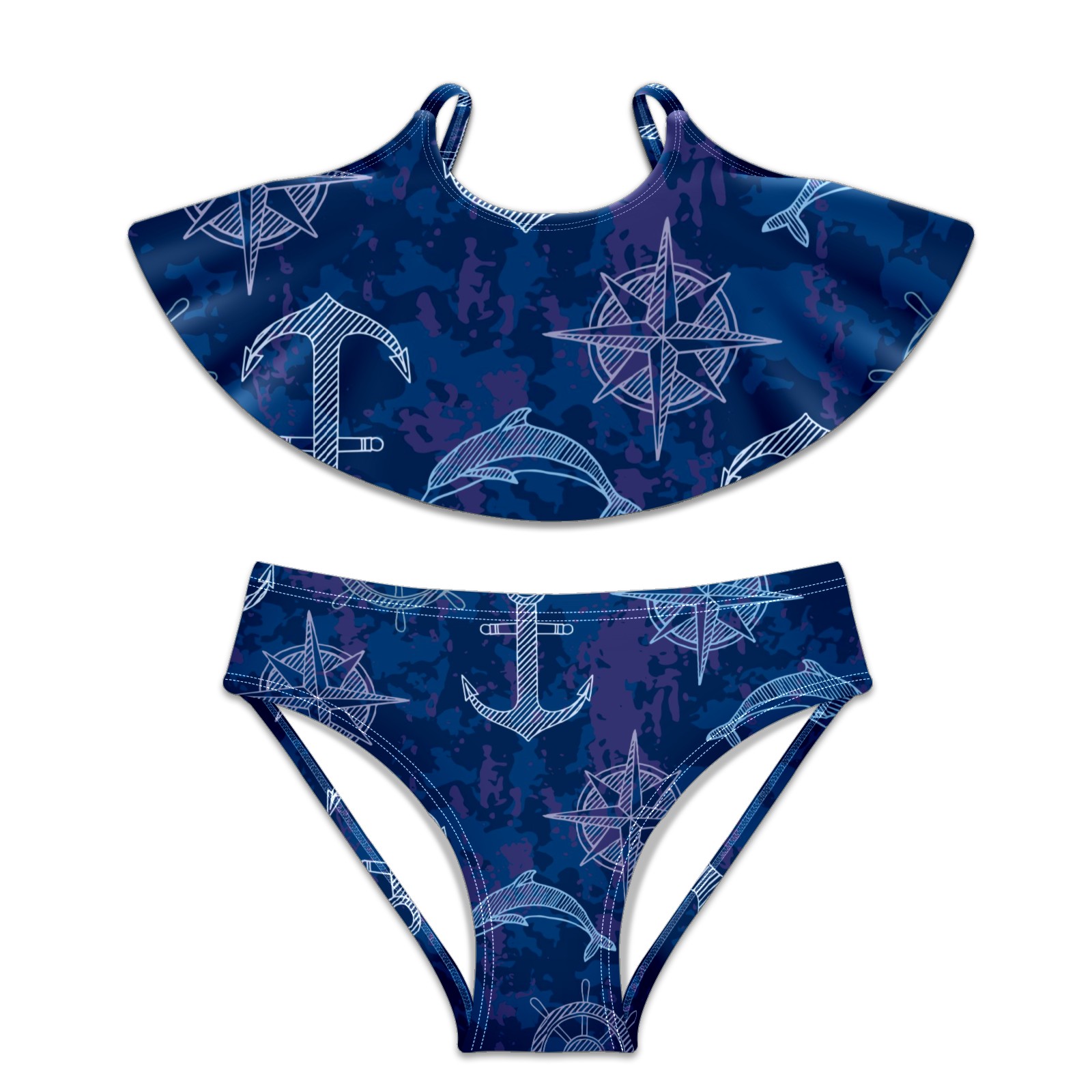 Swimsuits for Girls Two Pieces Bathing Suit Quick Dry Swimwear Nautical Anchor Compass Blue S