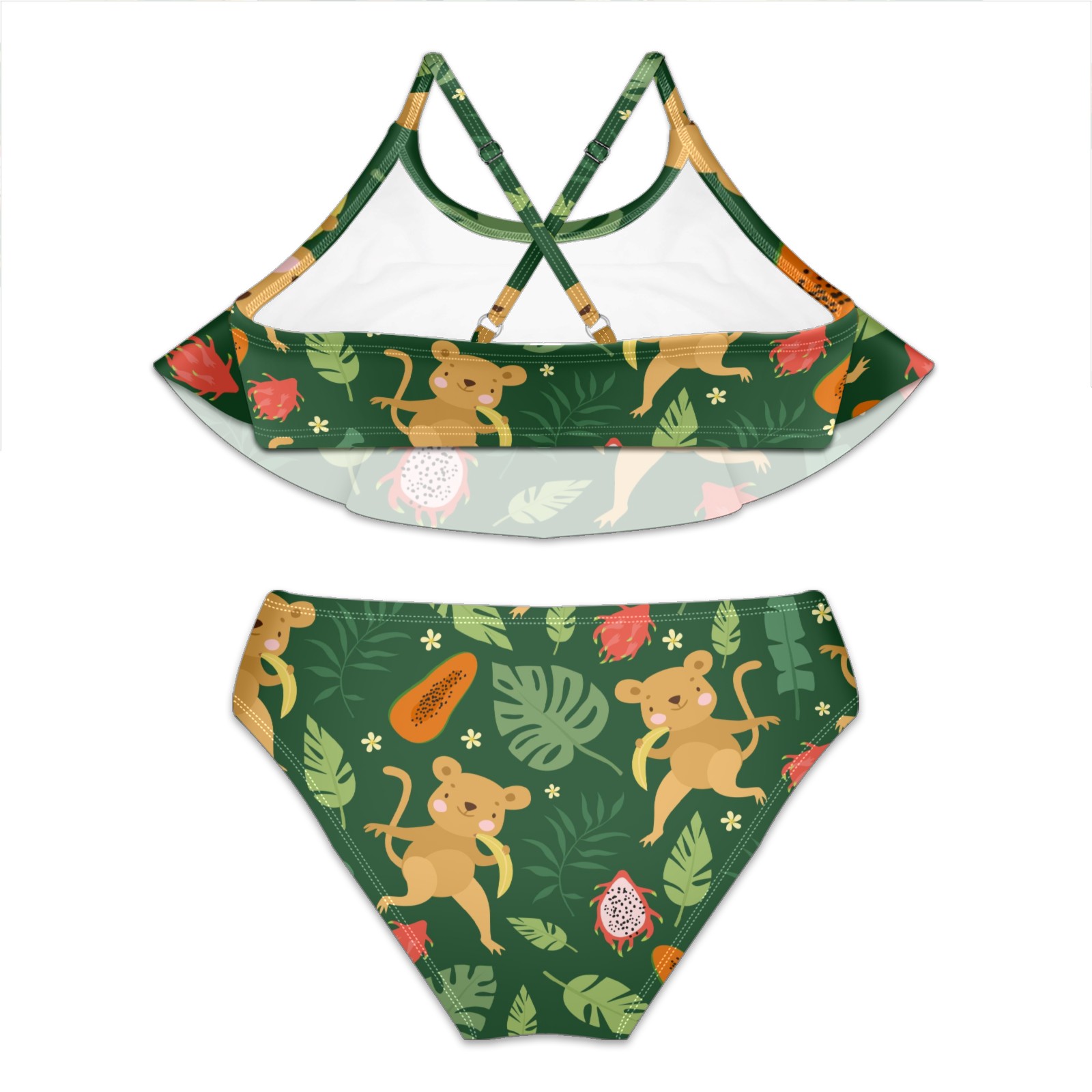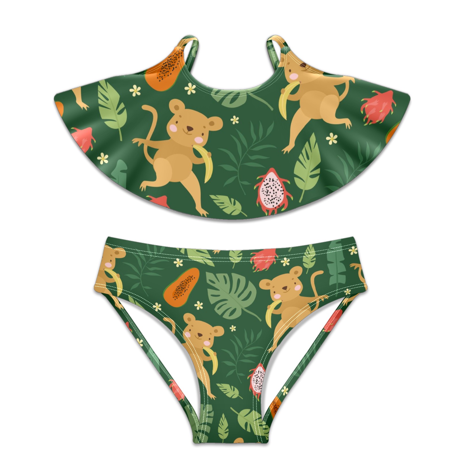 Swimsuits for Girls Two Pieces Bathing Suit Quick Dry Swimwear Monkey Bear Tropical Banana Pitaya Avocado S