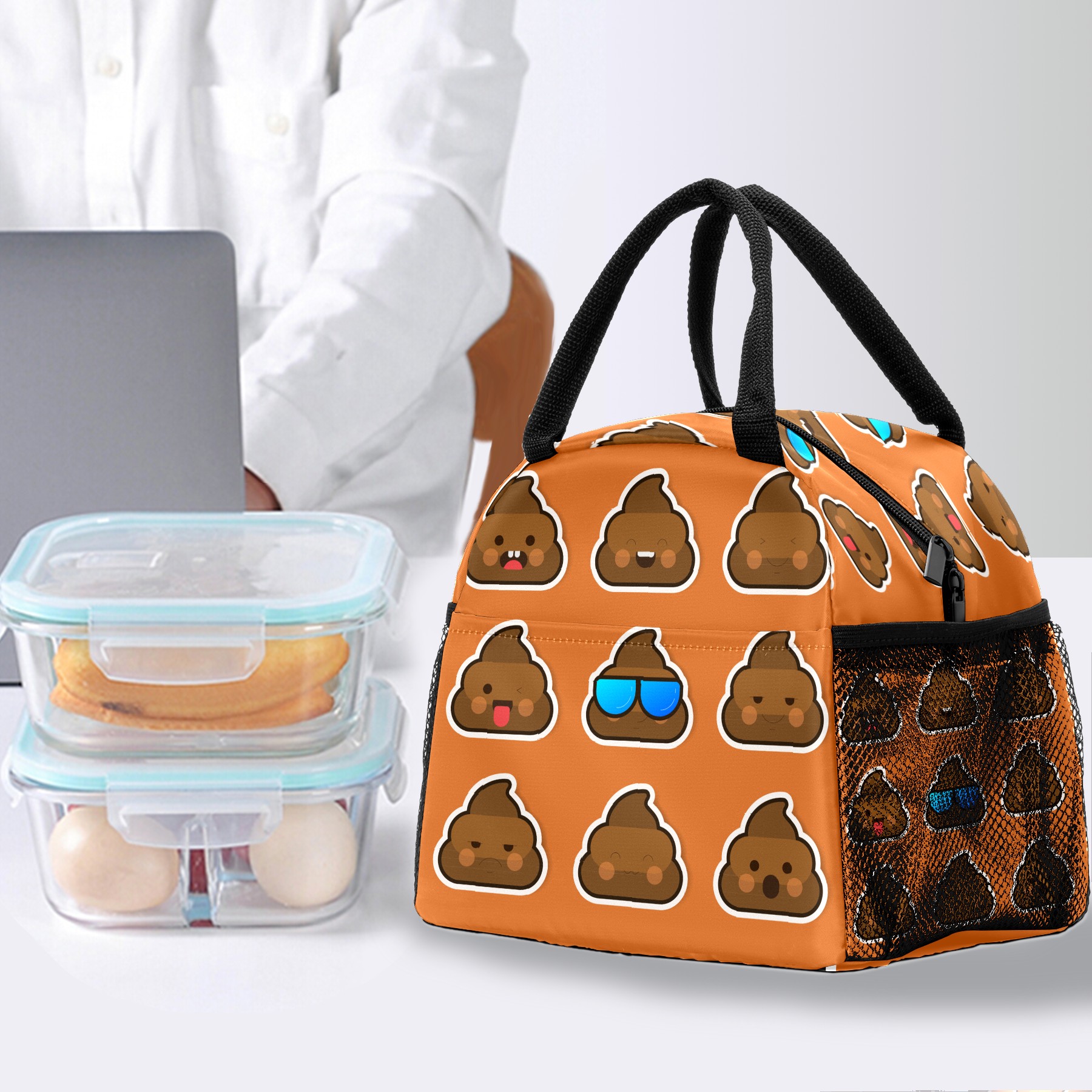 Lunch Bag for Women Men, Funny Poop Face Insulated Reusable Lunch Box Thermal Cooler Tote Bag for Work Picnic Hiking Travel Beach
