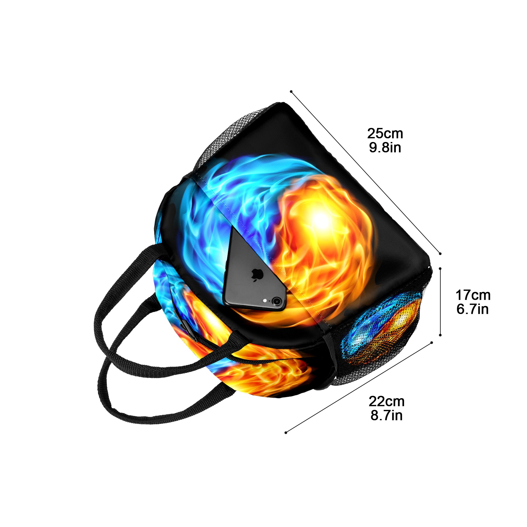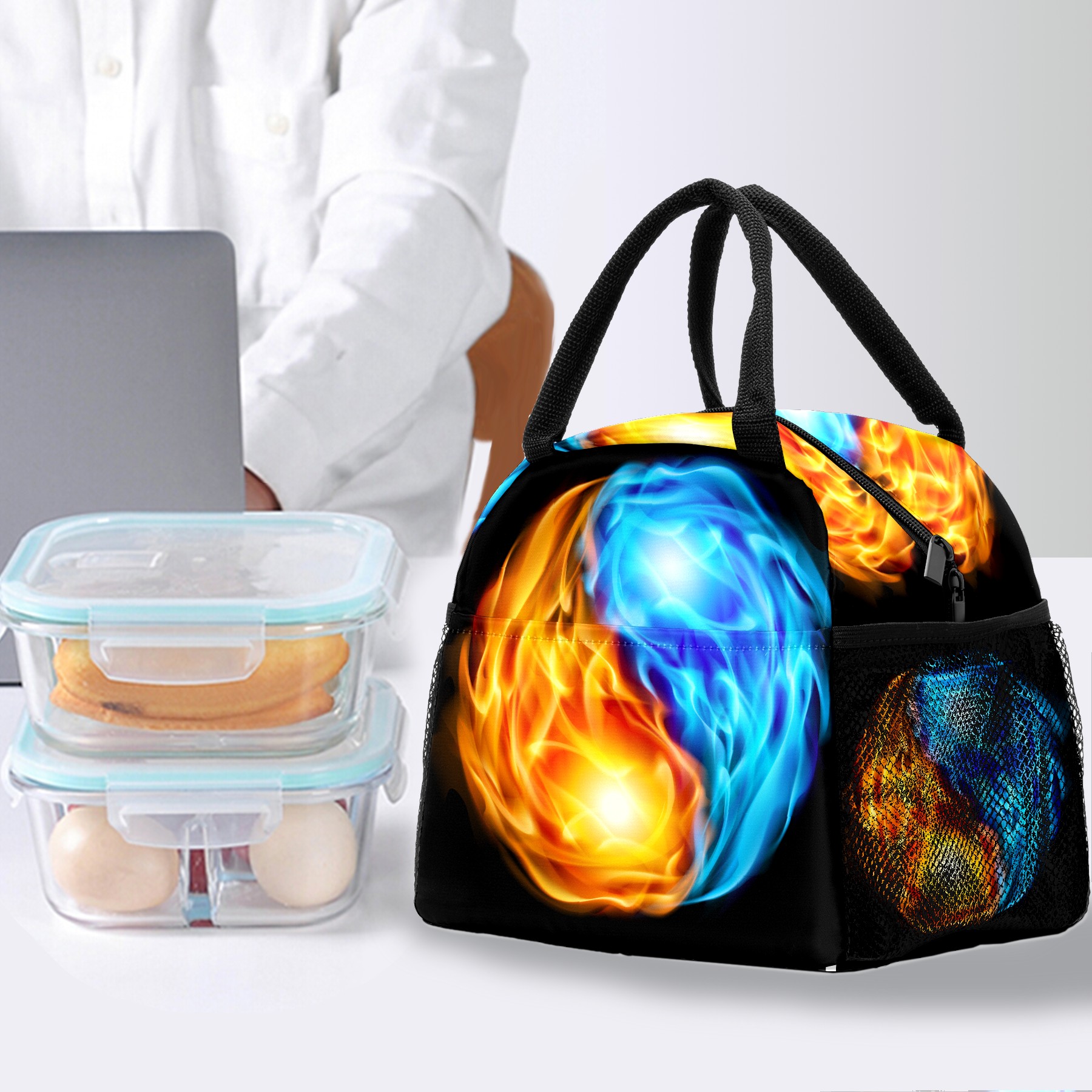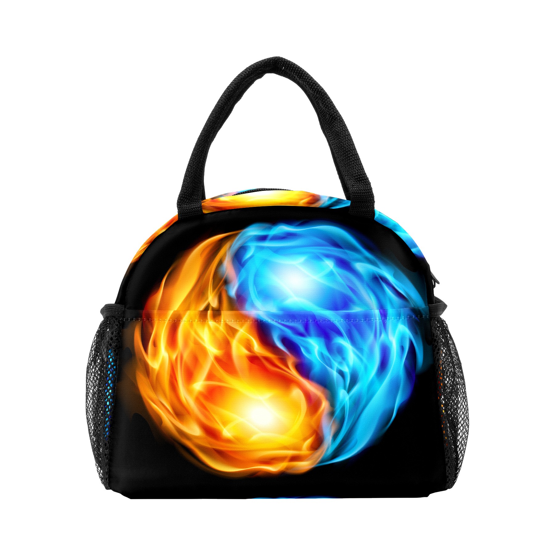 Lunch Bag for Women Men, Fire Water Chinese Yin Yang Insulated Reusable Lunch Box Thermal Cooler Tote Bag for Work Picnic Hiking Travel Beach