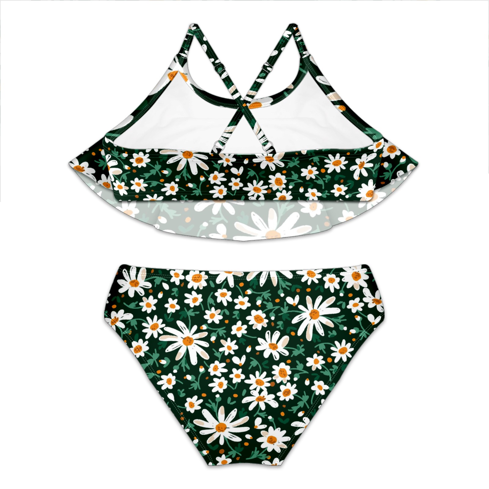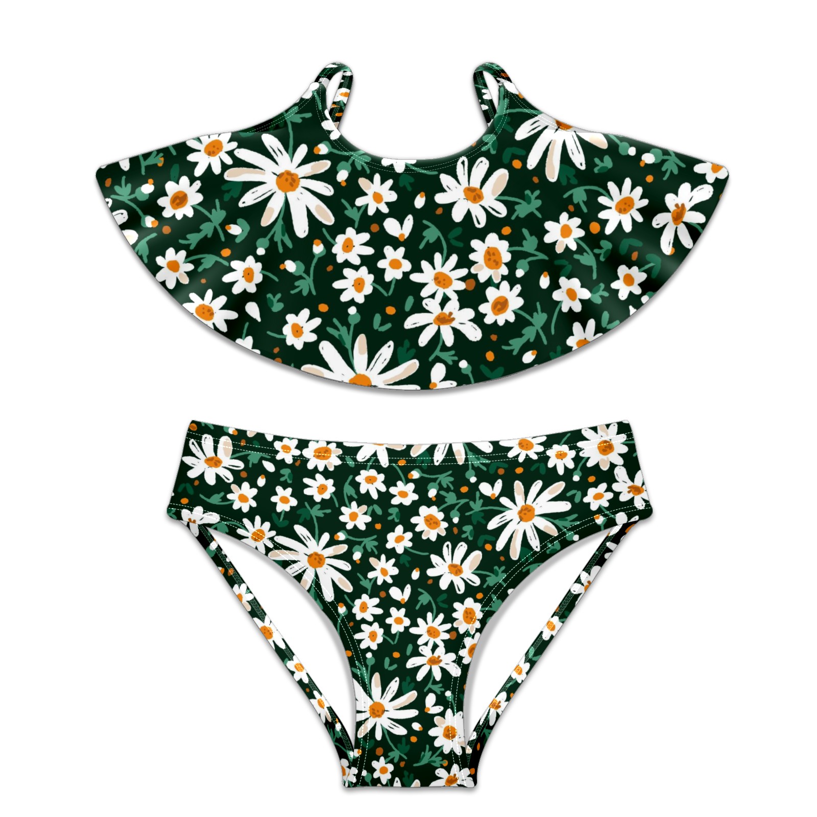 Swimsuits for Girls Two Pieces Bathing Suit Quick Dry Swimwear Little White Daisy Floral Green Leaves S