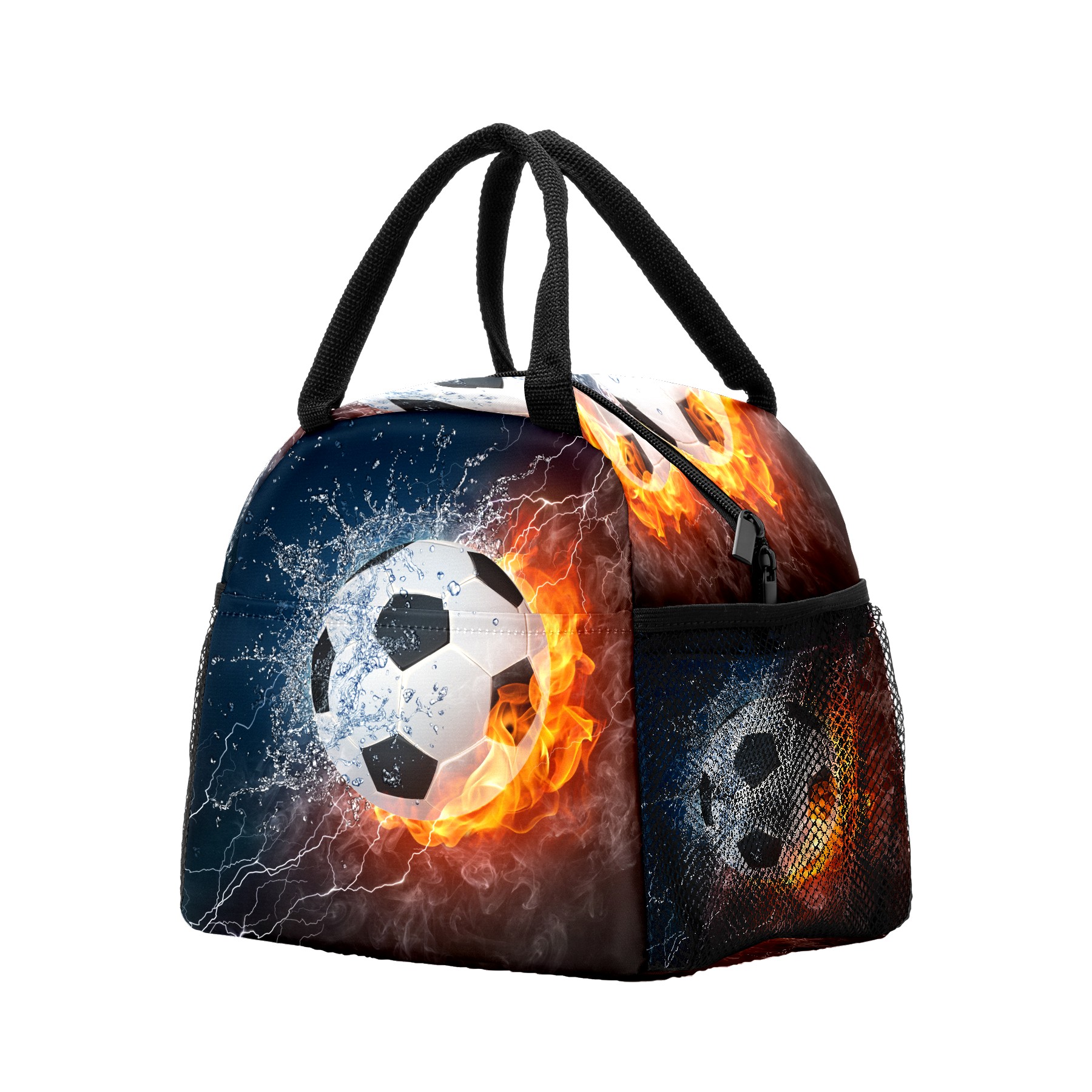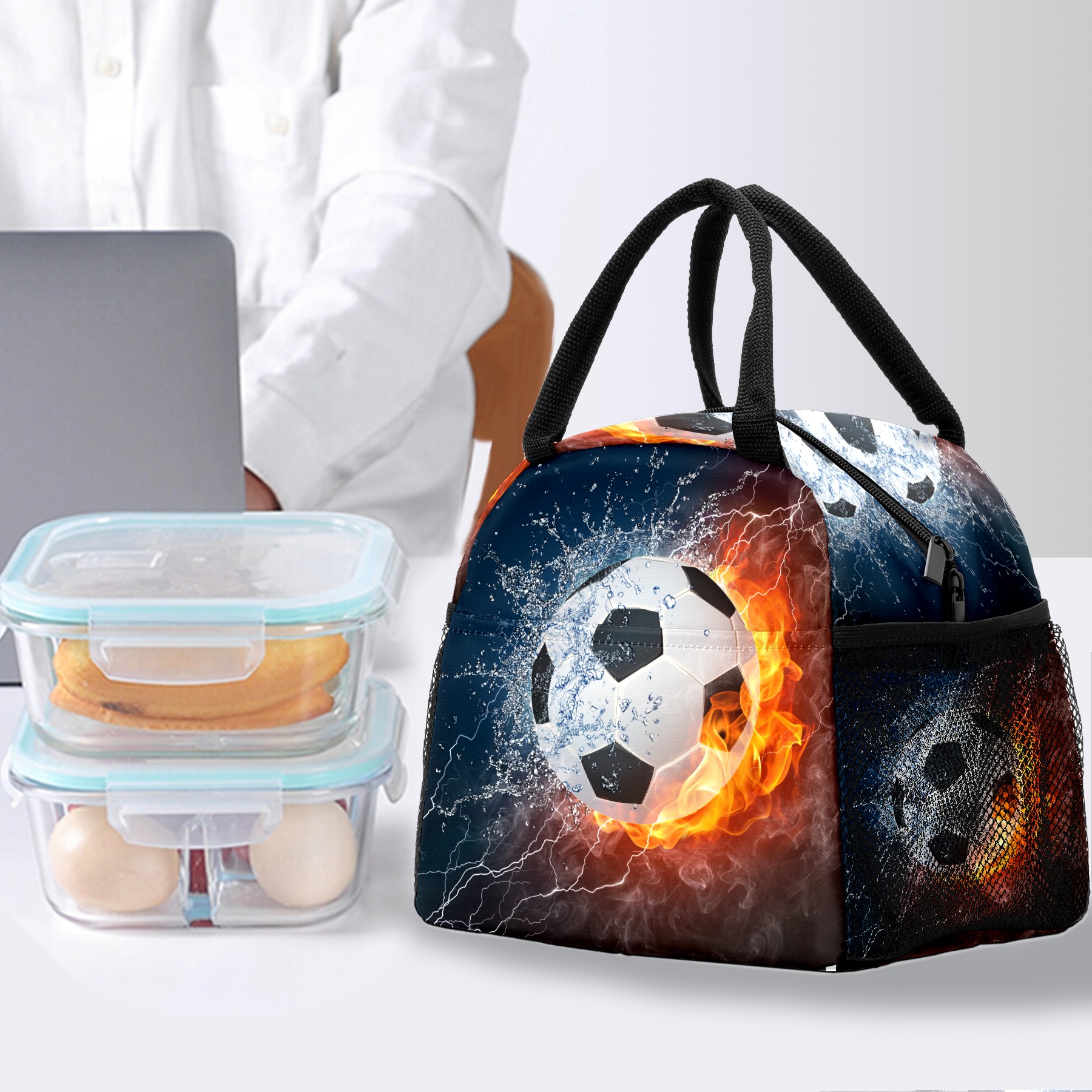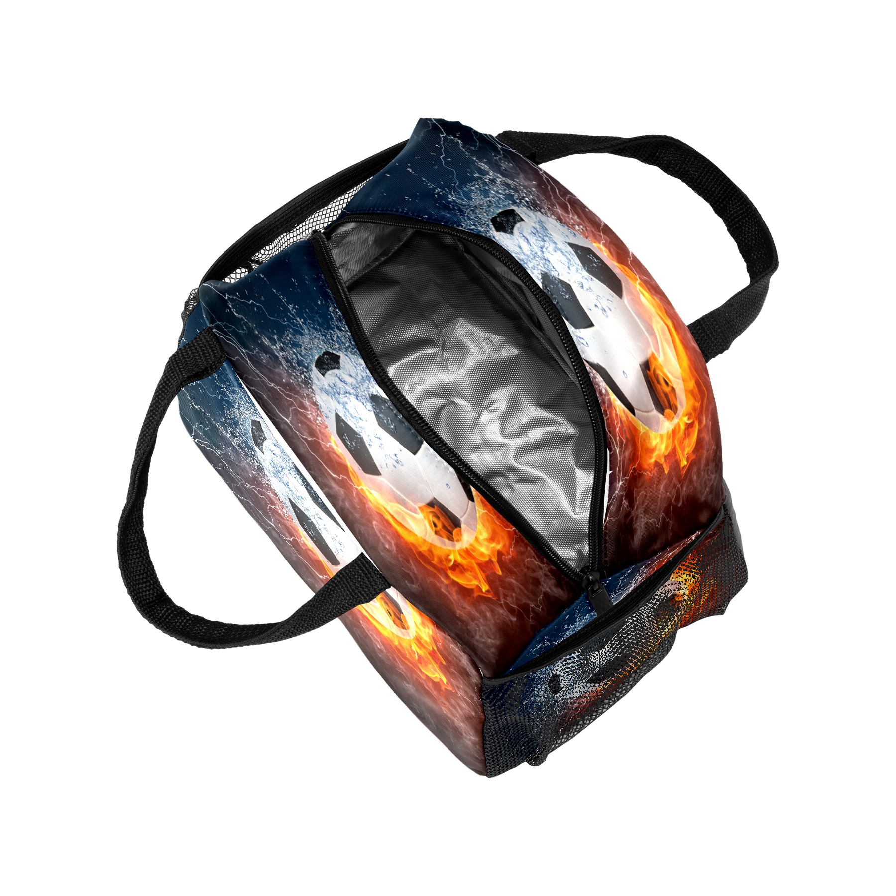 Lunch Bag for Women Men, Fire And Water Football Insulated Reusable Lunch Box Thermal Cooler Tote Bag for Work Picnic Hiking Travel Beach
