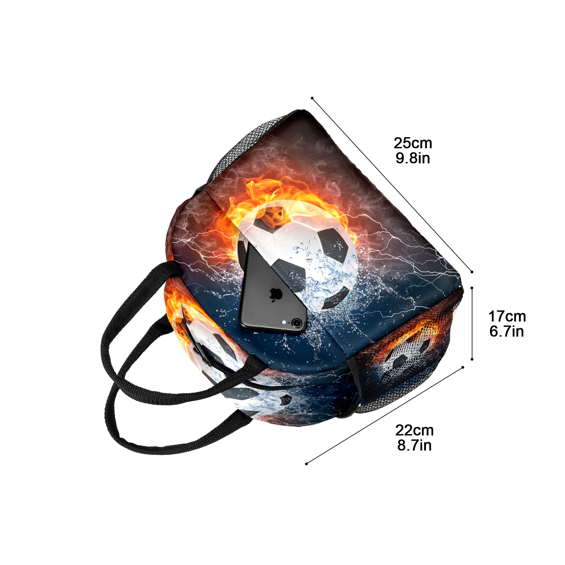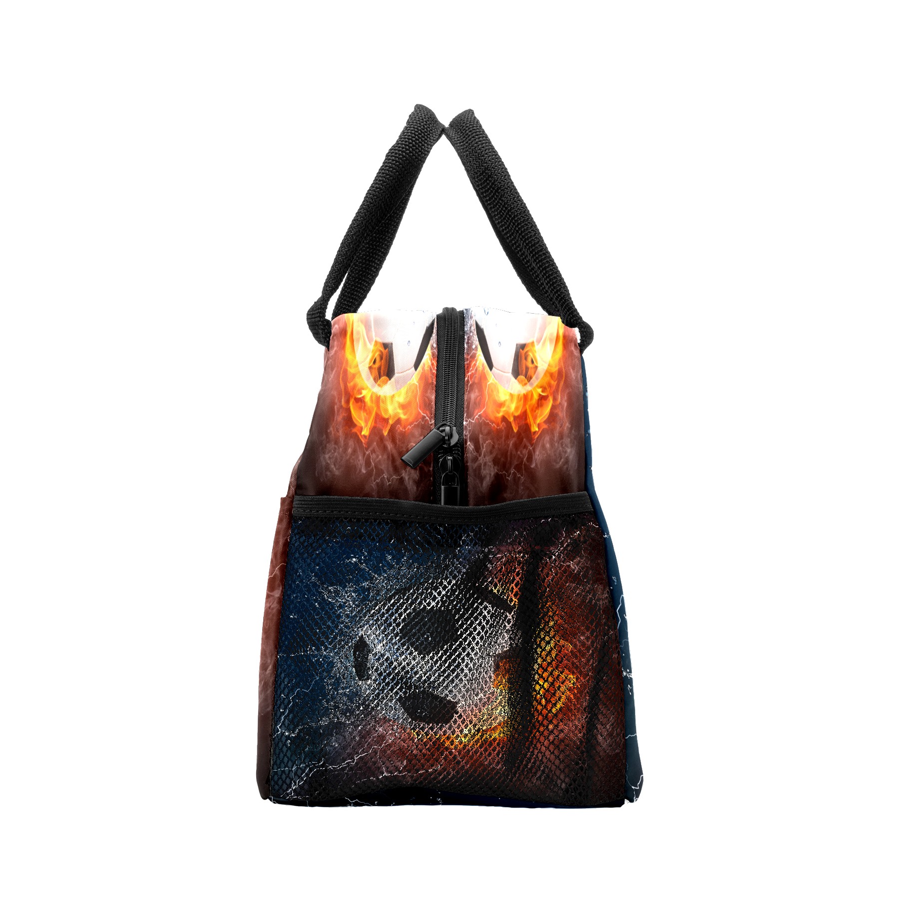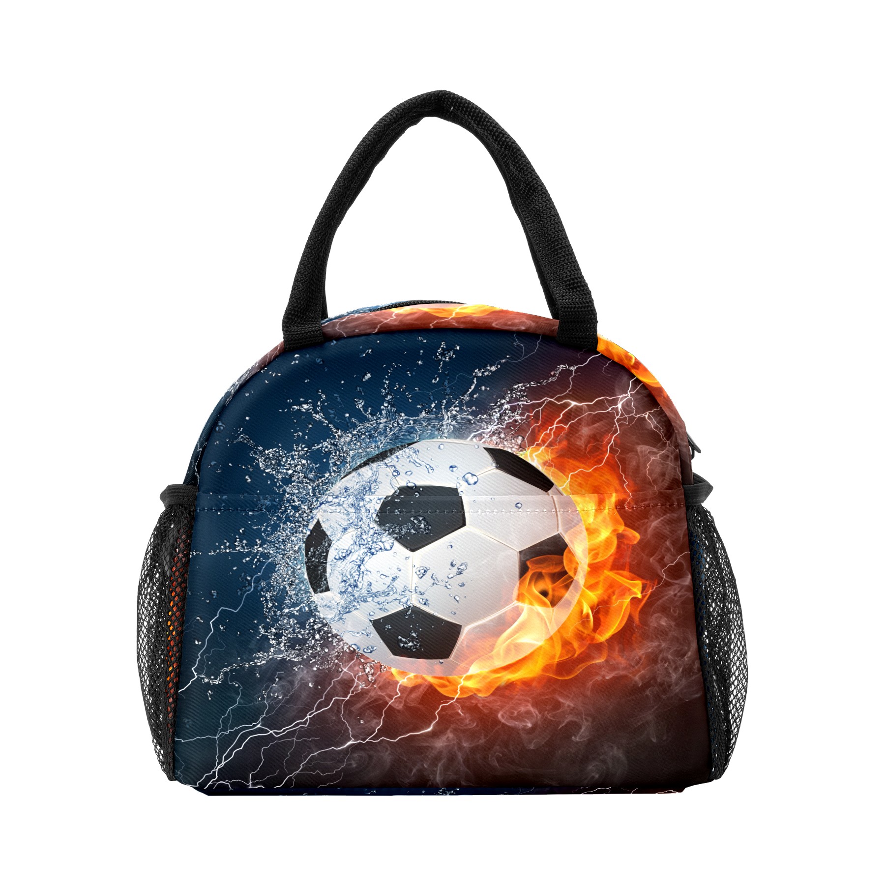 Lunch Bag for Women Men, Fire And Water Football Insulated Reusable Lunch Box Thermal Cooler Tote Bag for Work Picnic Hiking Travel Beach