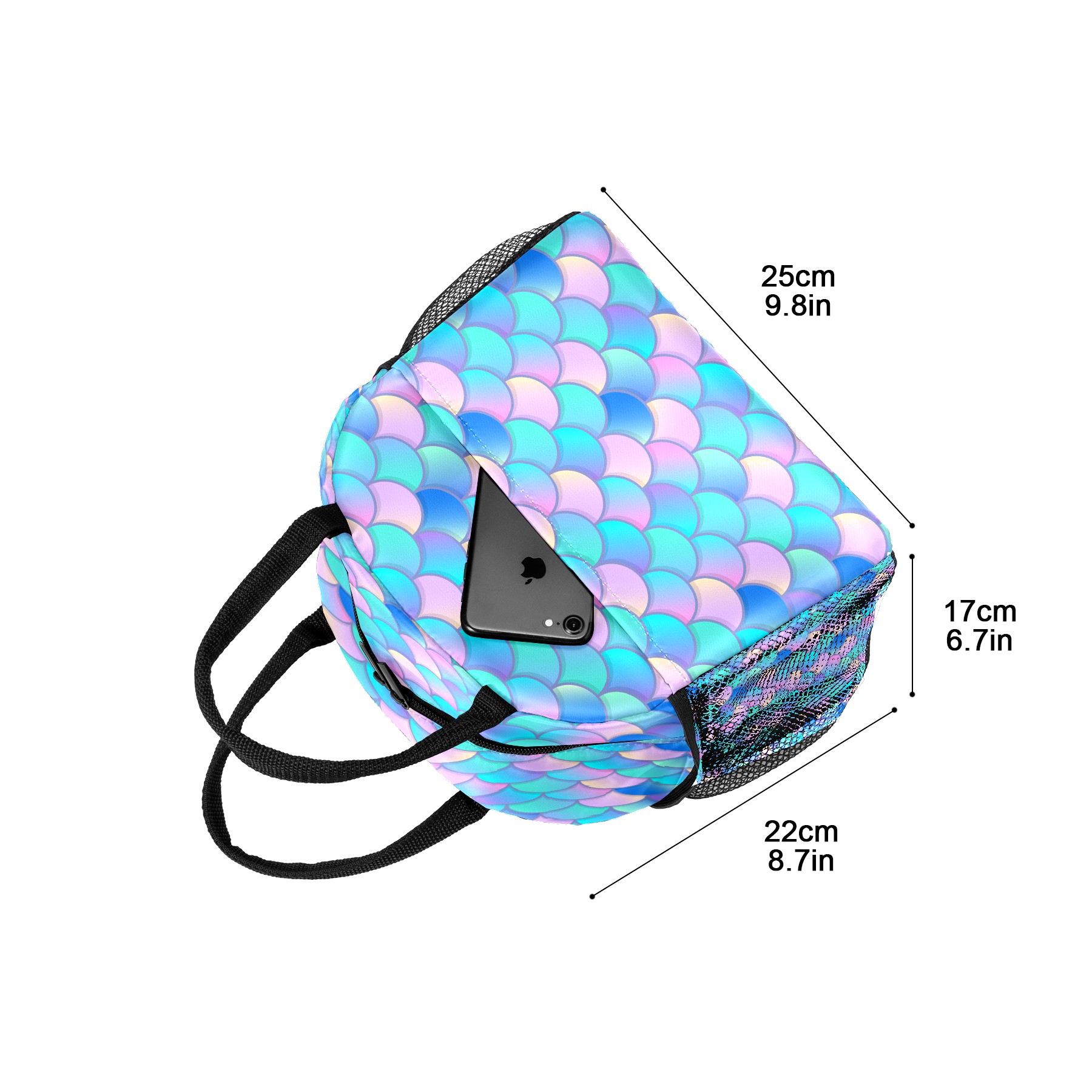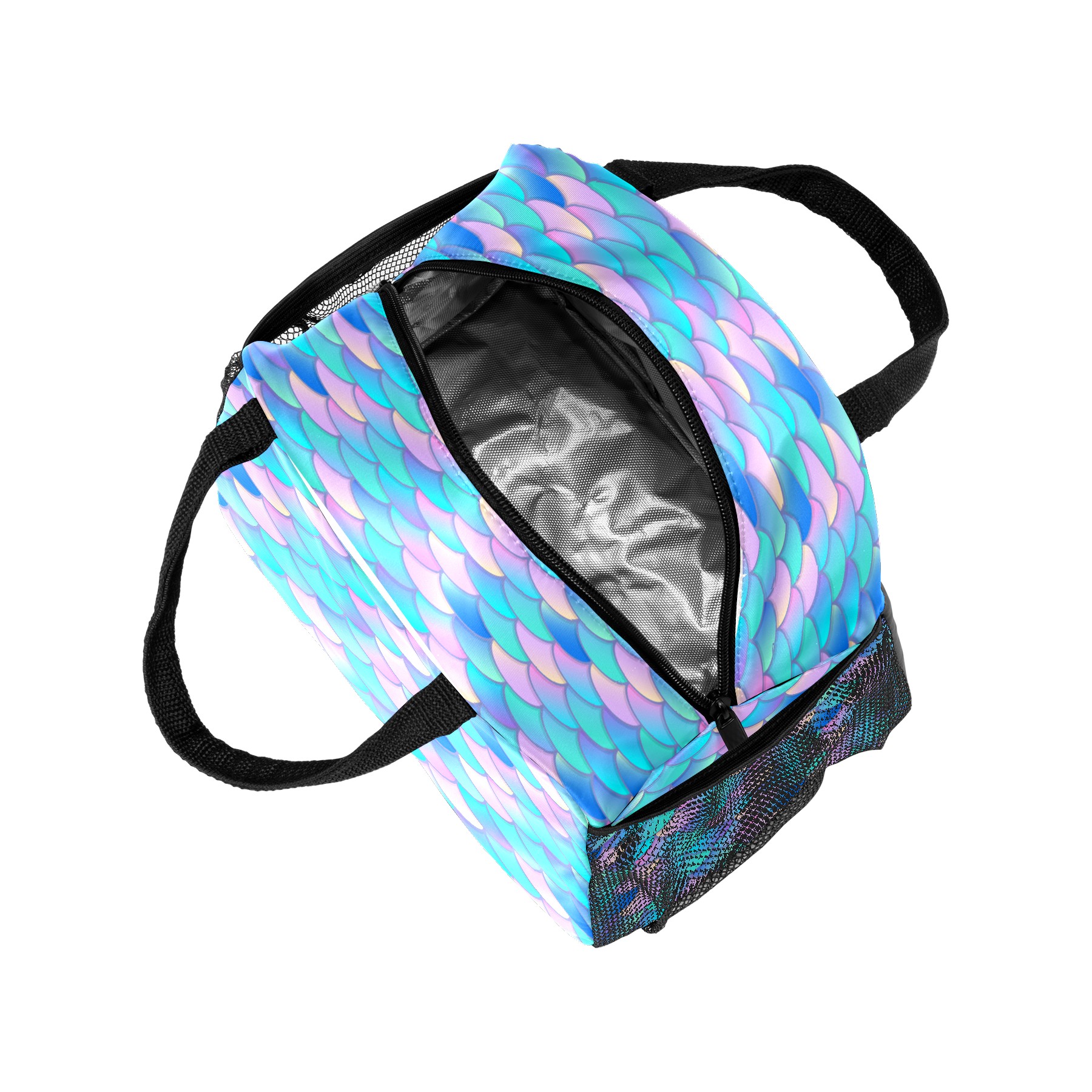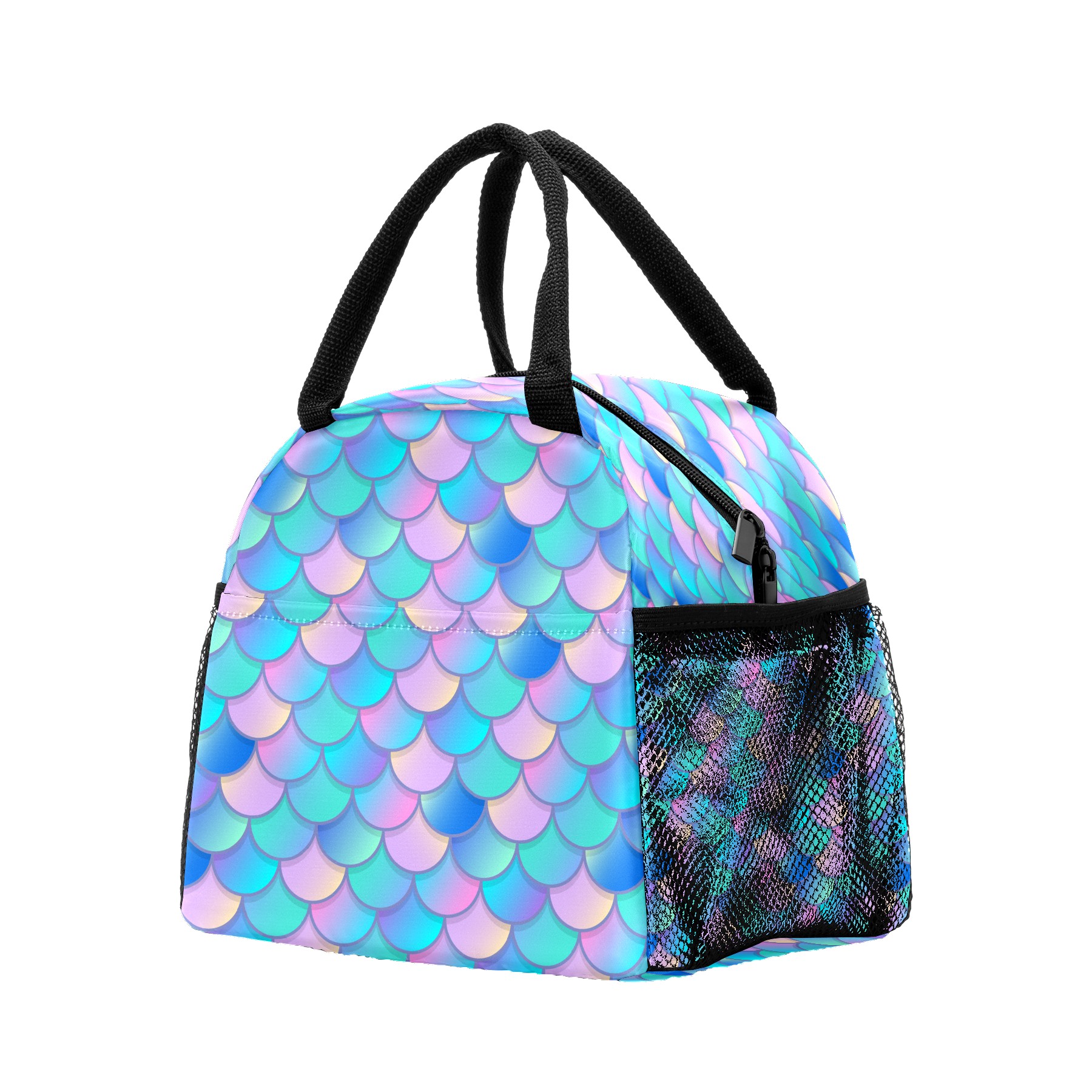 Lunch Bag for Women Men, Colorful Mermaid Scale Watercolor Insulated Reusable Lunch Box Thermal Cooler Tote Bag for Work Picnic Hiking Travel Beach
