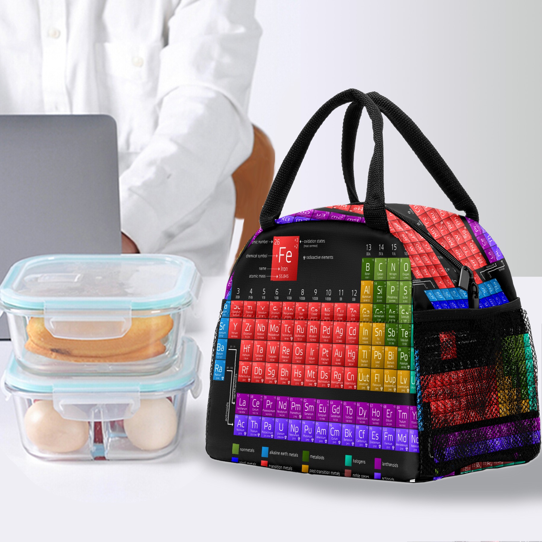 Lunch Bag for Women Men, Educational Periodic Table Of The Elements Insulated Reusable Lunch Box Thermal Cooler Tote Bag for Work Picnic Hiking Travel Beach