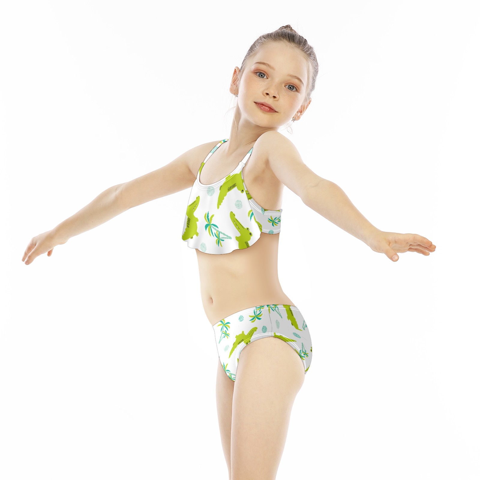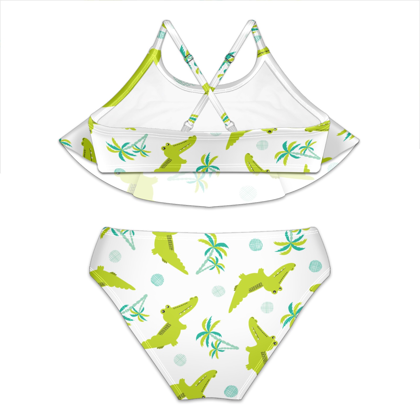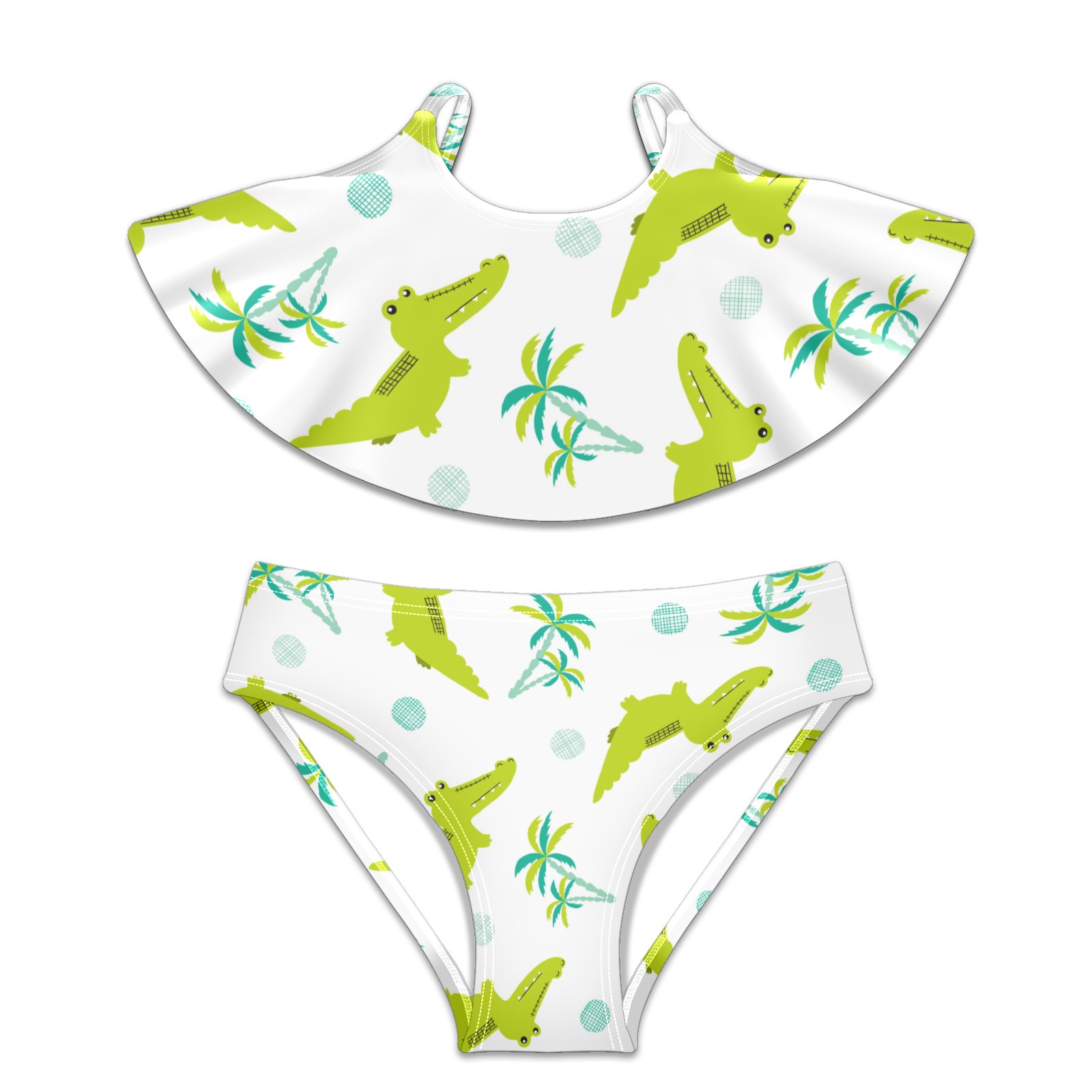 Swimsuits for Girls Two Pieces Bathing Suit Quick Dry Swimwear Green Crocodile Palm Tree Fish S