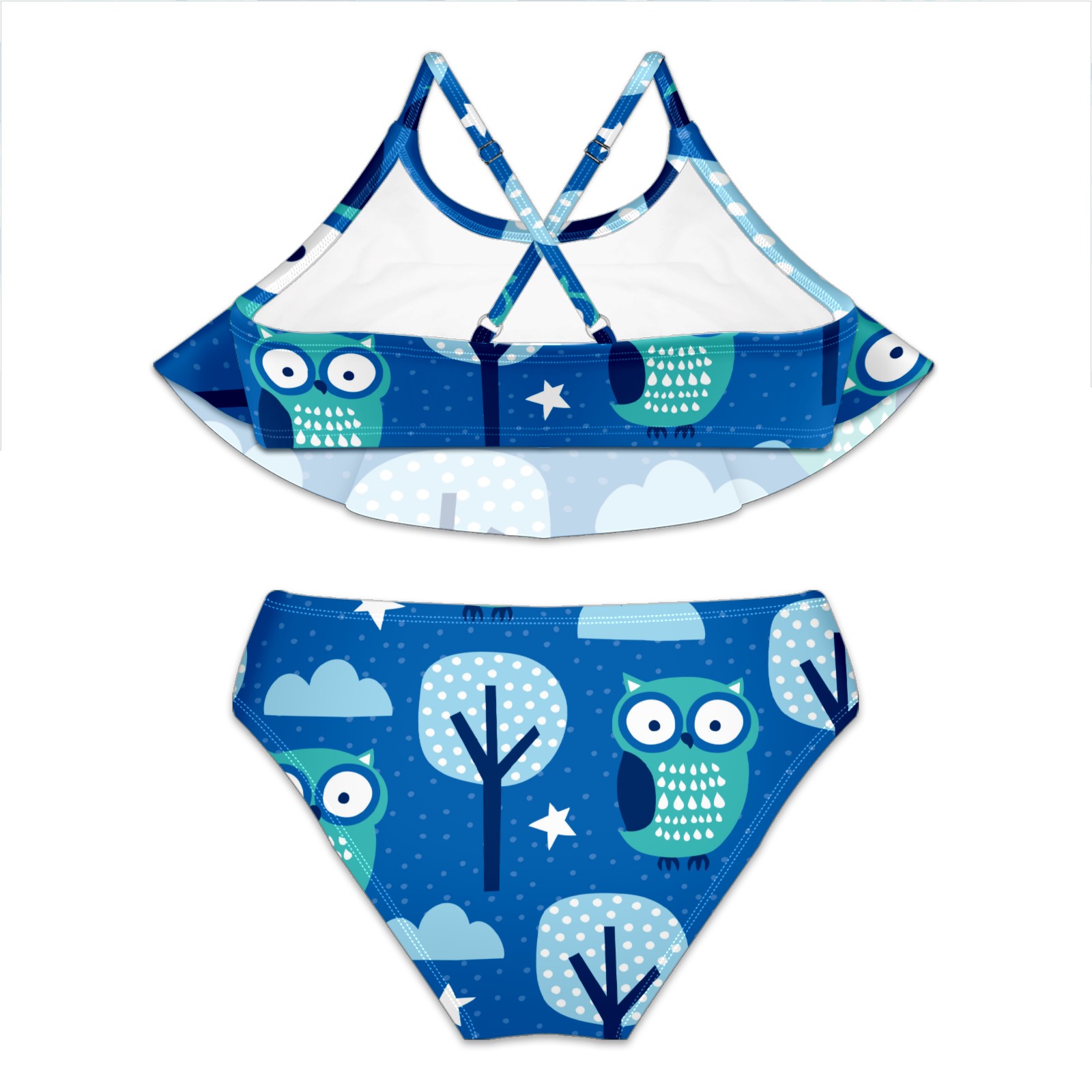 Swimsuits for Girls Two Pieces Bathing Suit Quick Dry Swimwear Green Owls In The Forest Pattern S