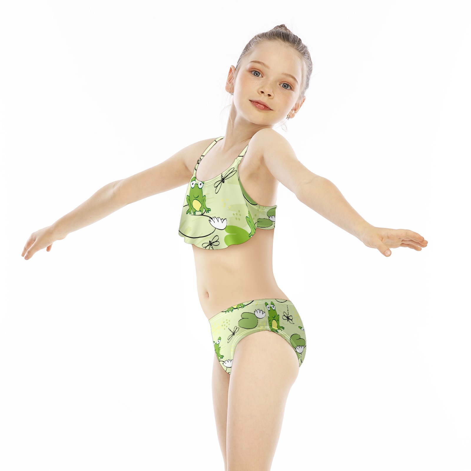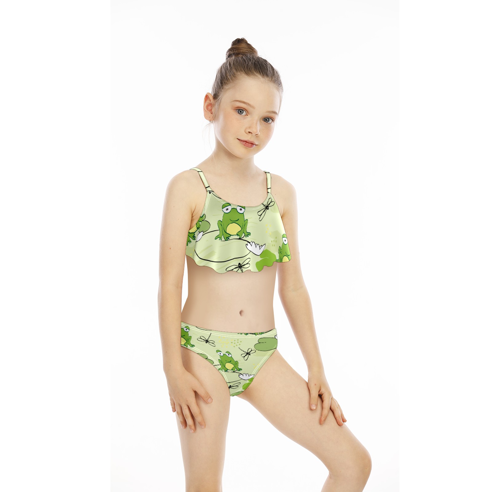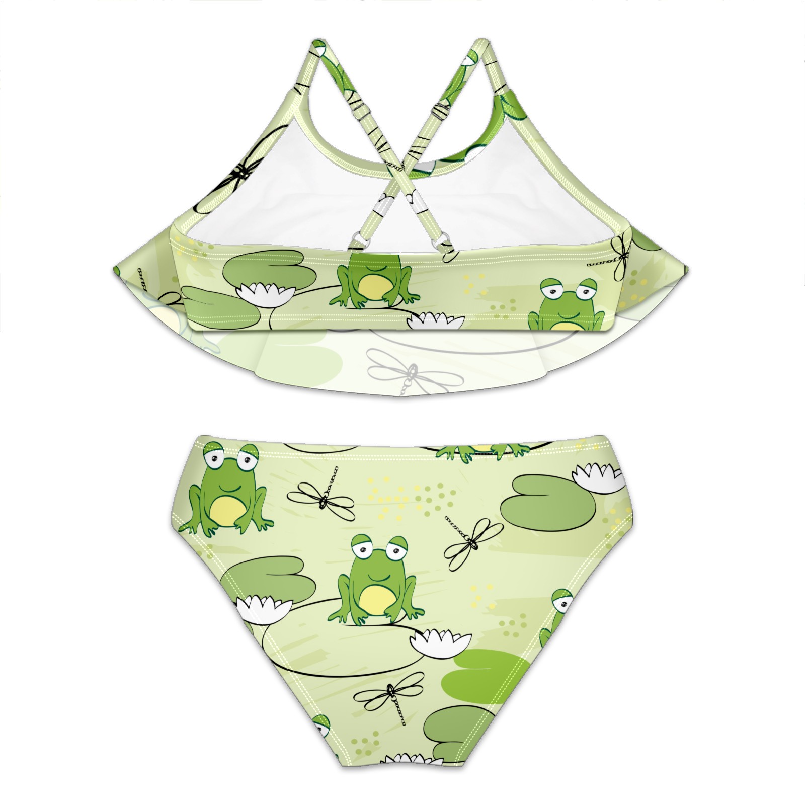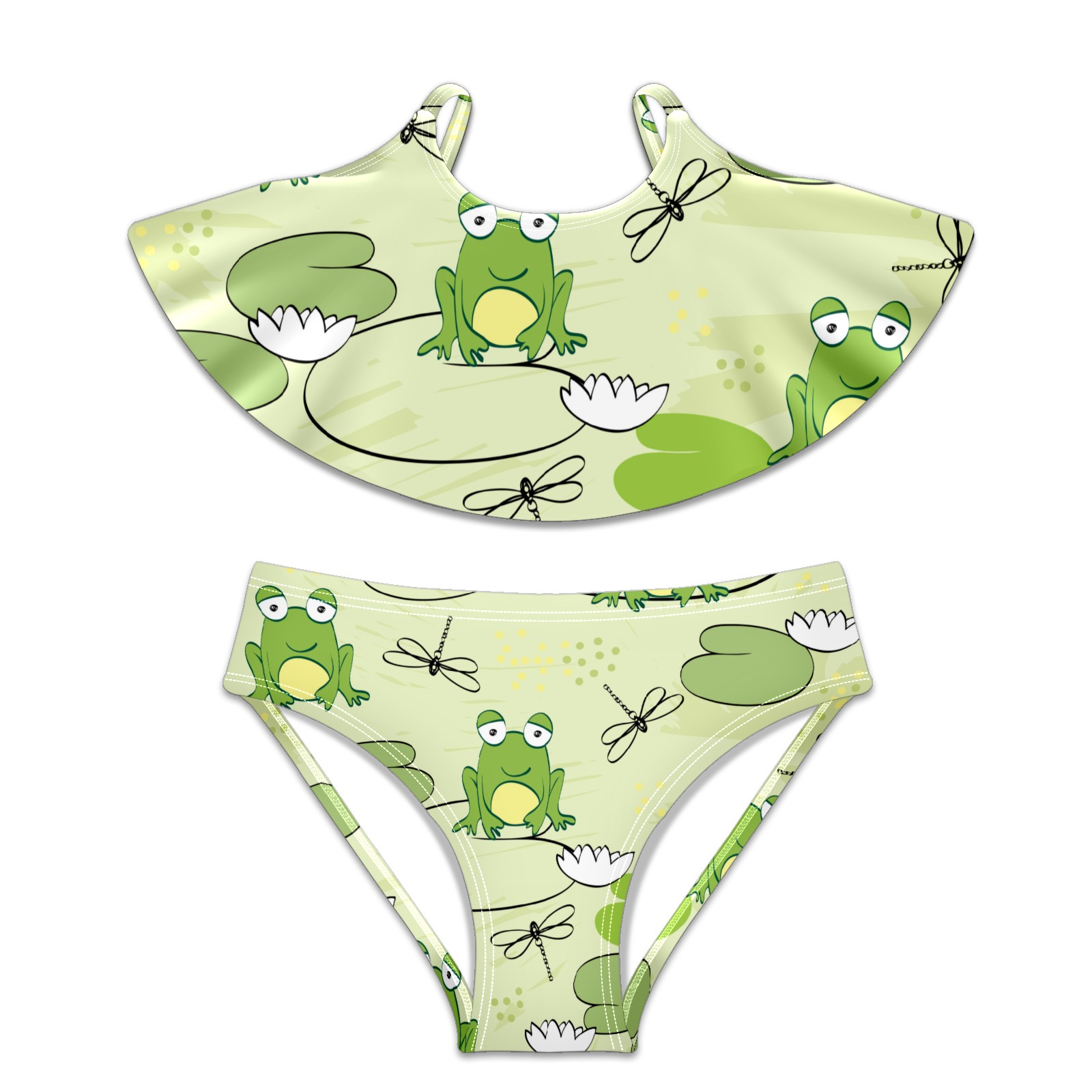 Swimsuits for Girls Two Pieces Bathing Suit Quick Dry Swimwear Green Frog Dragonfly Lotus Leaves Pattern S