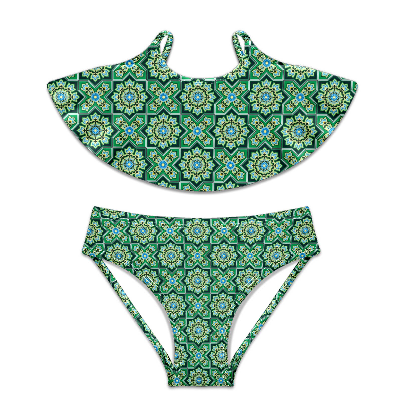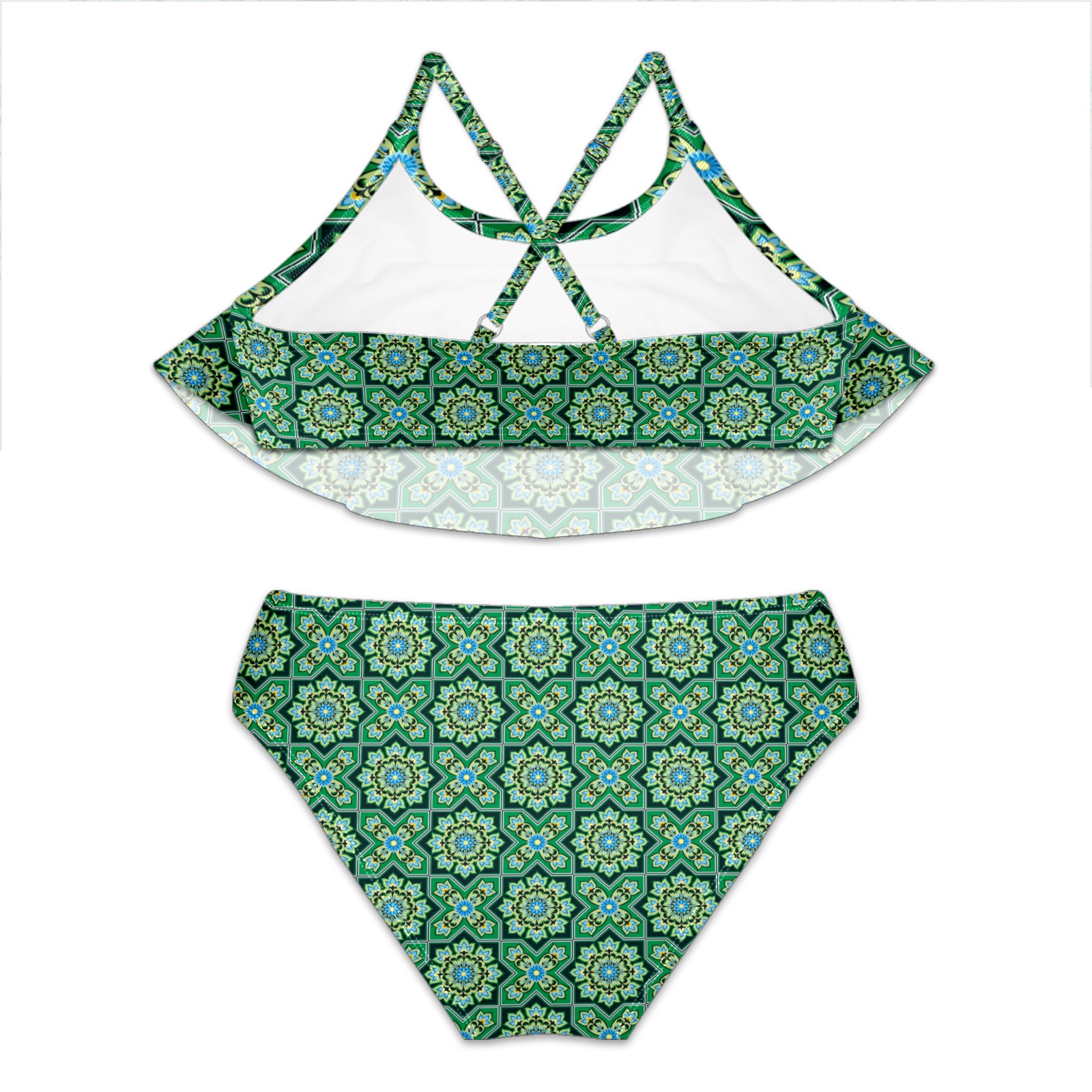 Swimsuits for Girls Two Pieces Bathing Suit Quick Dry Swimwear Green Florals Bohemia Pattern Vintage S