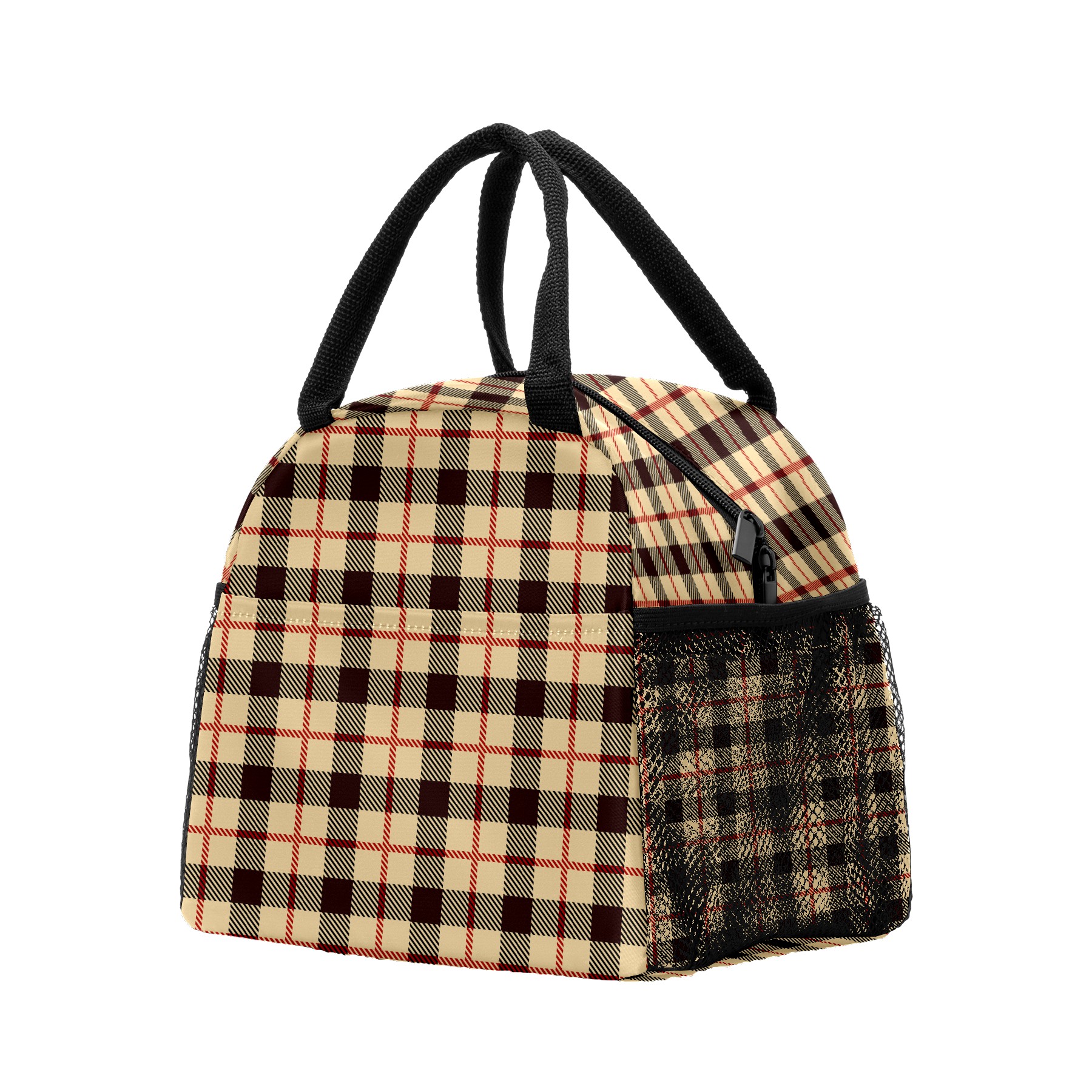 Lunch Bag for Women Men, Vintage Brown Plaid Grid Retro Insulated Reusable Lunch Box Thermal Cooler Tote Bag for Work Picnic Hiking Travel Beach