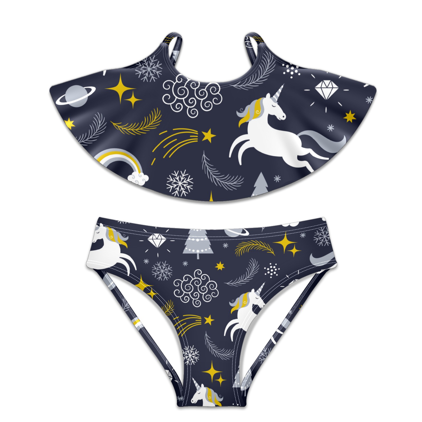 Swimsuits for Girls Two Pieces Bathing Suit Quick Dry Swimwear Galaxy Outer Spaceship Unicorn Horse Planet Clouds Tree Diamond S