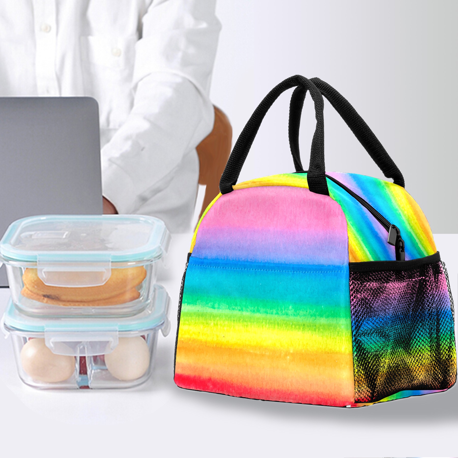 Lunch Bag for Women Men, Watercolor Colorful Rainbow Painting Insulated Reusable Lunch Box Thermal Cooler Tote Bag for Work Picnic Hiking Travel Beach