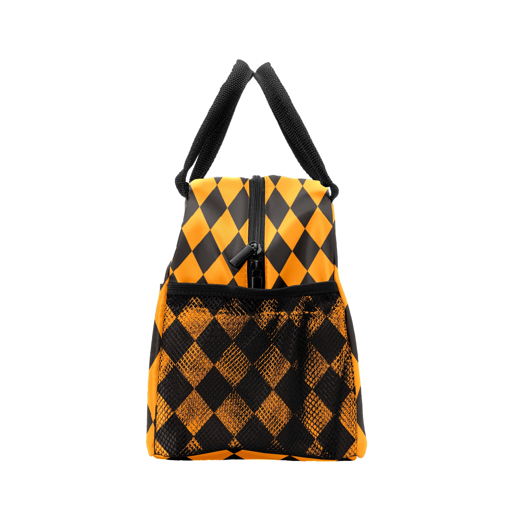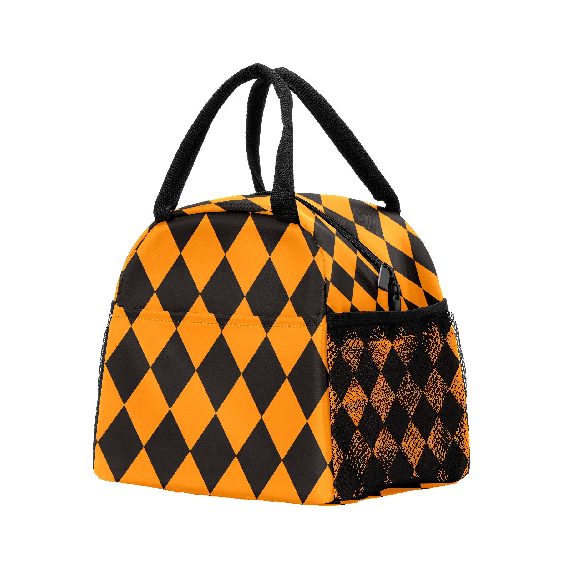 Lunch Bag for Women Men, Halloween Pumpkin Plaid Yellow Black Insulated Reusable Lunch Box Thermal Cooler Tote Bag for Work Picnic Hiking Travel Beach