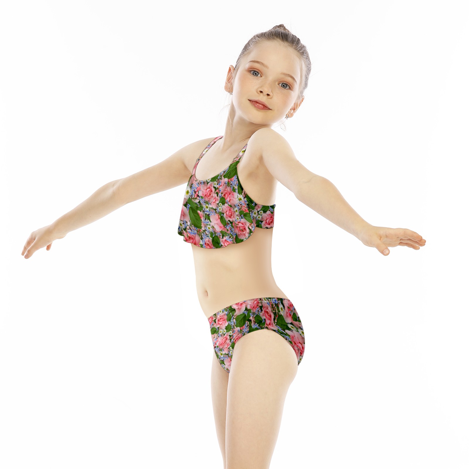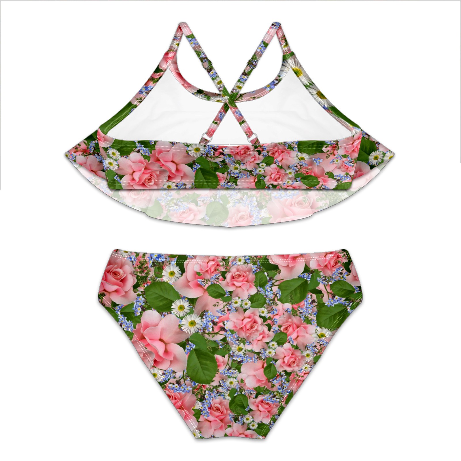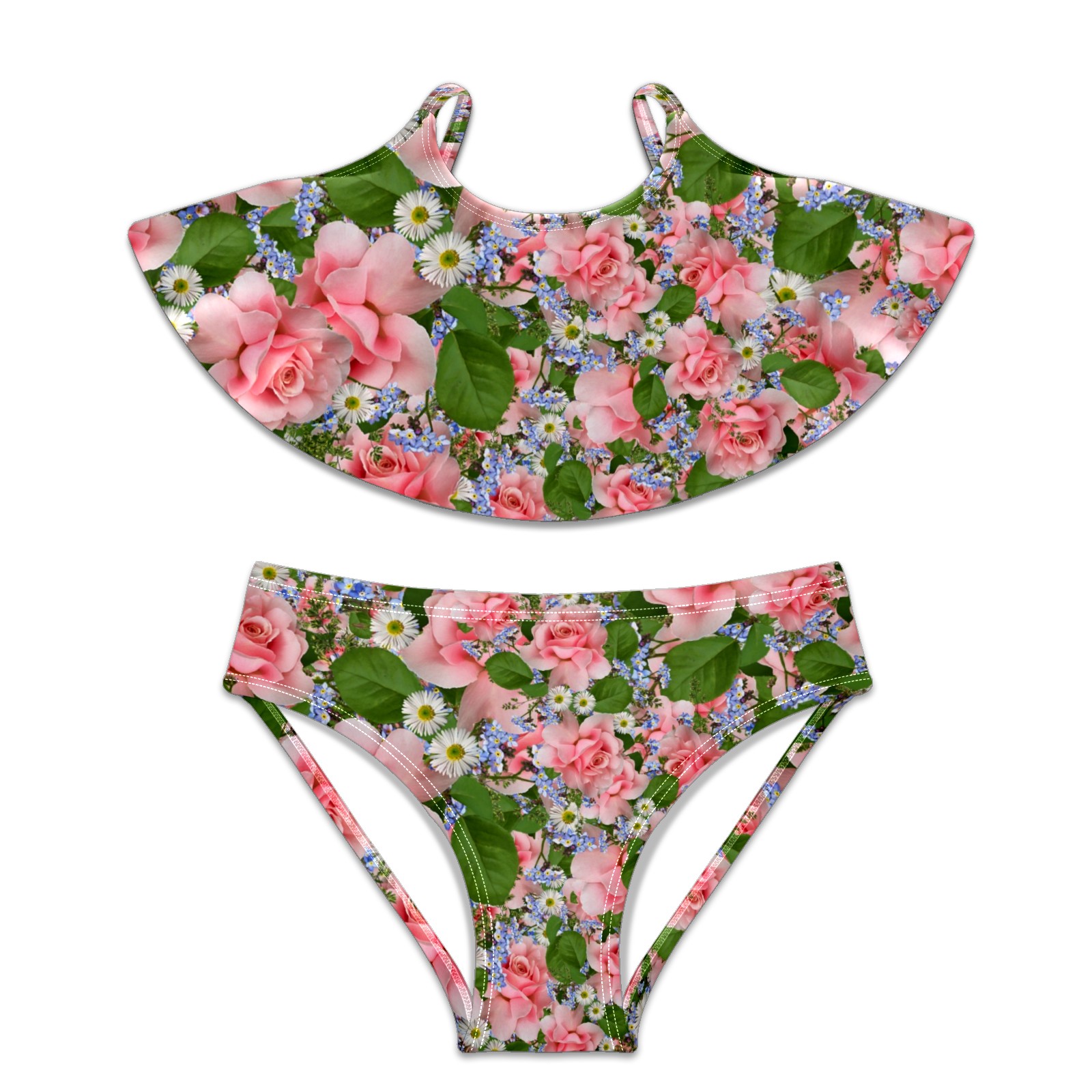 Swimsuits for Girls Two Pieces Bathing Suit Quick Dry Swimwear Flowery Background Floral Flowers S