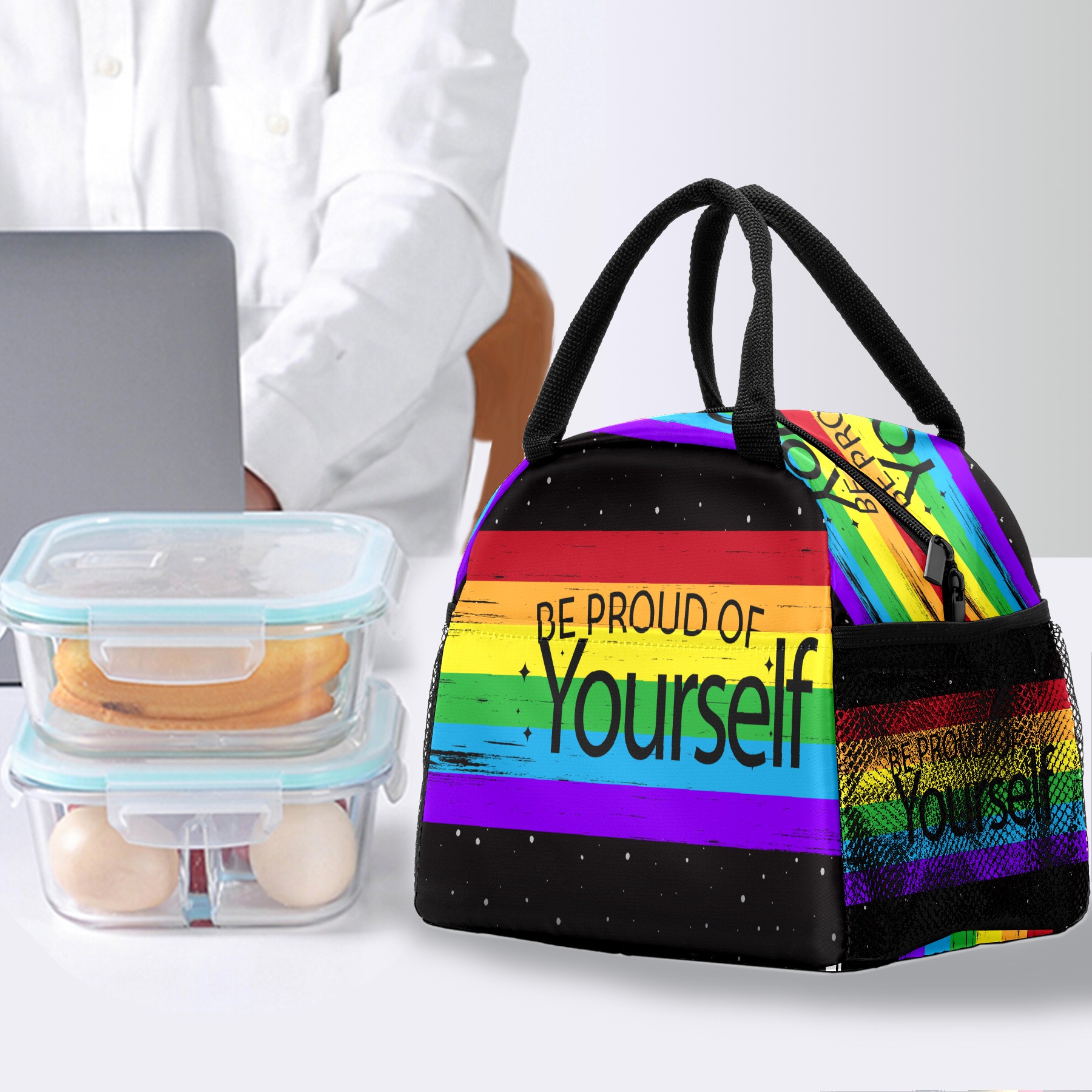 Lunch Bag for Women Men, Colorful Rainbow Pride Insulated Reusable Lunch Box Thermal Cooler Tote Bag for Work Picnic Hiking Travel Beach