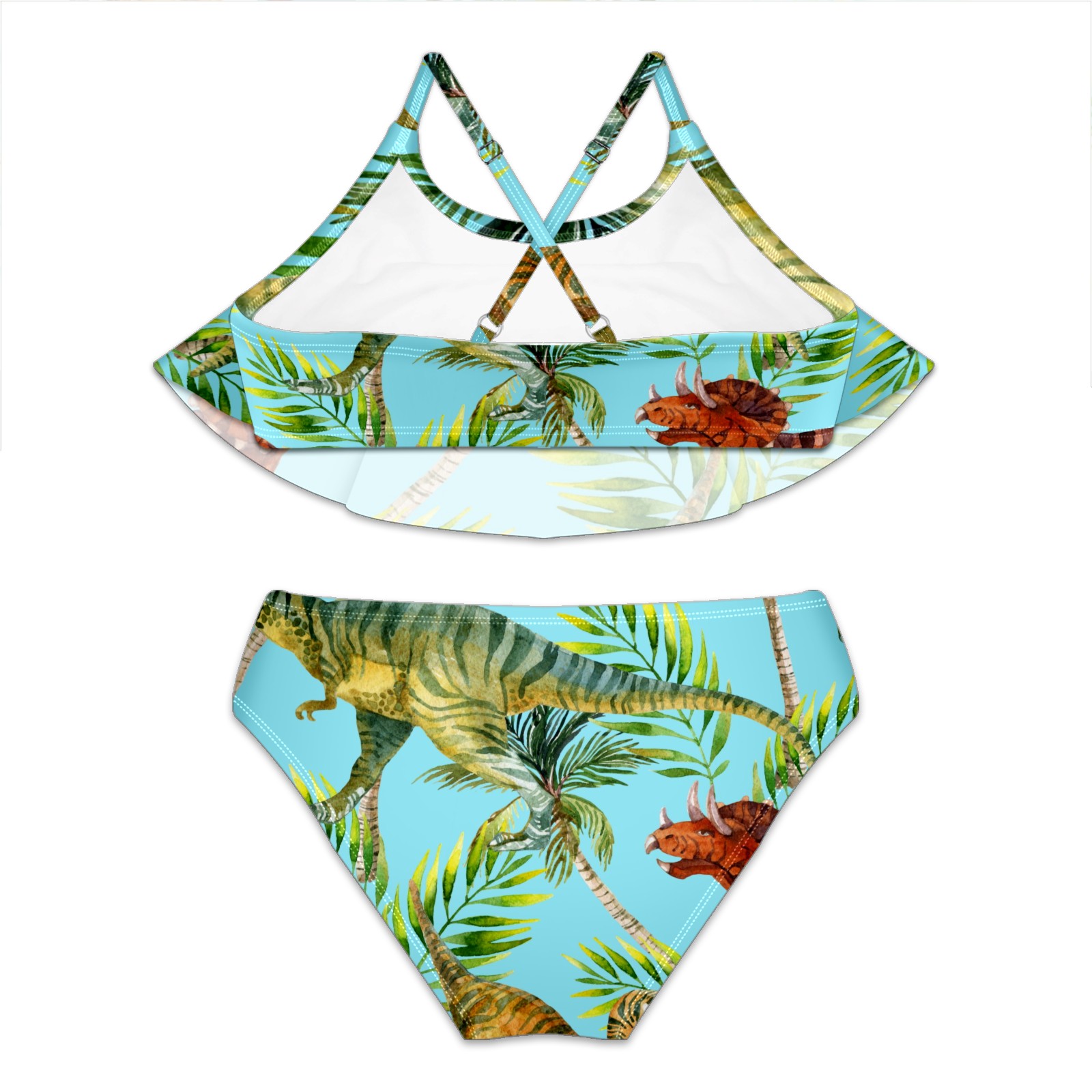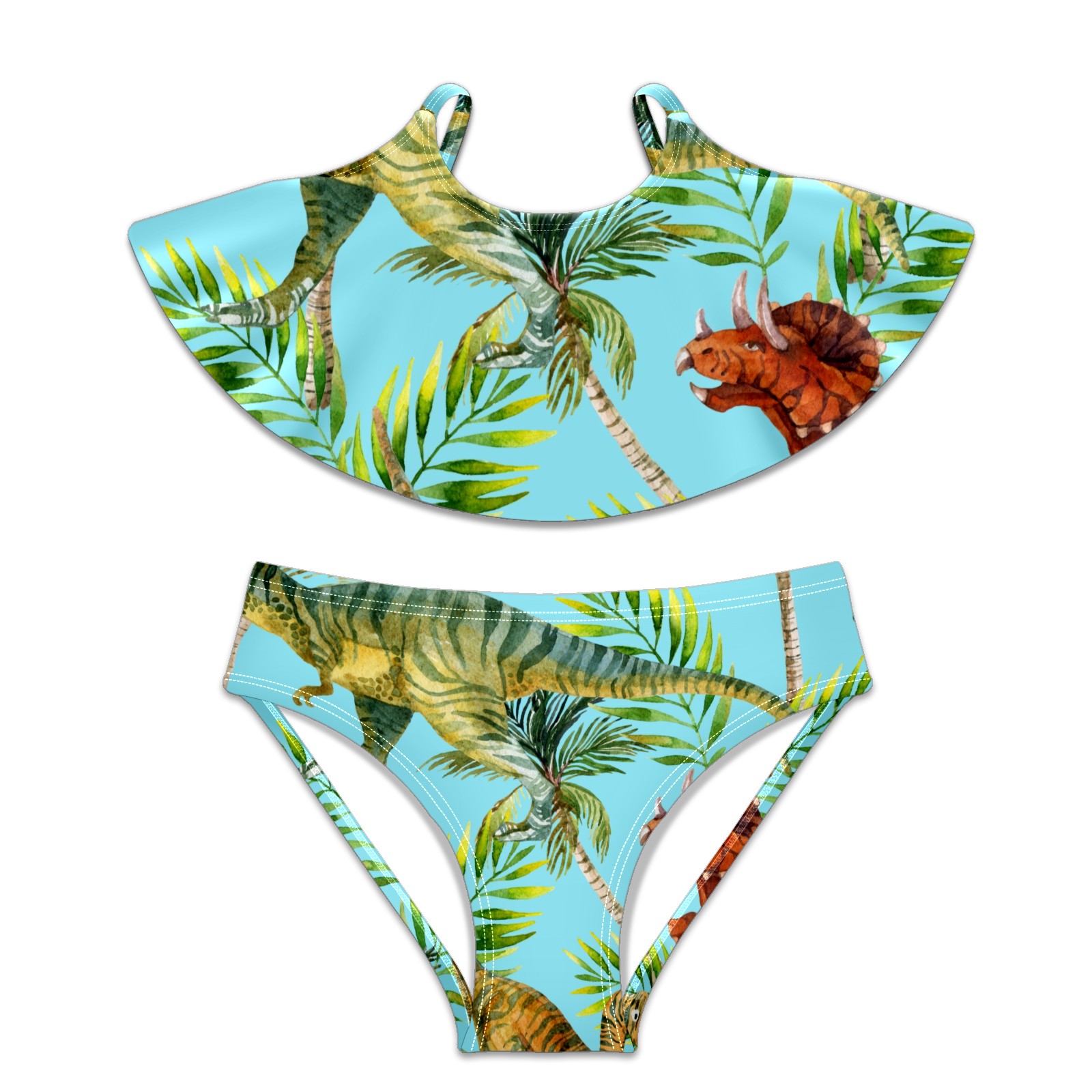 Swimsuits for Girls Two Pieces Bathing Suit Quick Dry Swimwear Floral Dinosaur Palm Leaves S