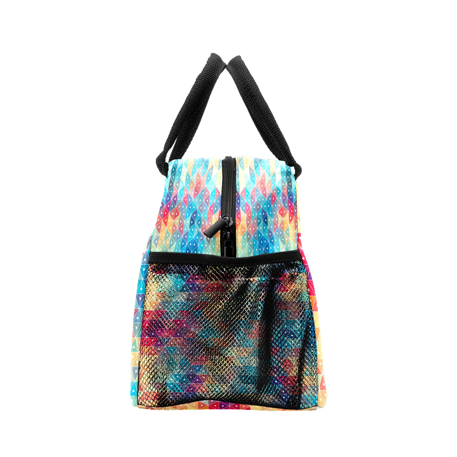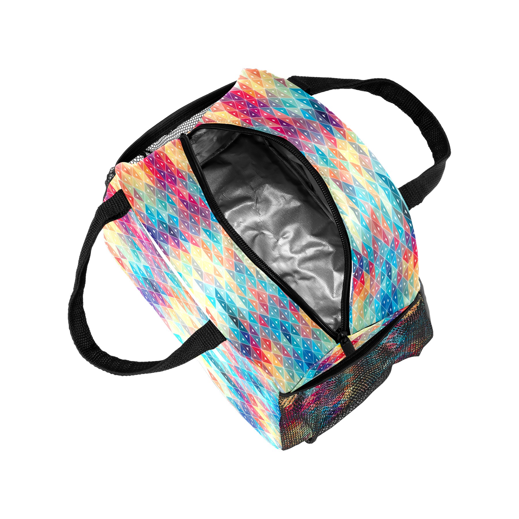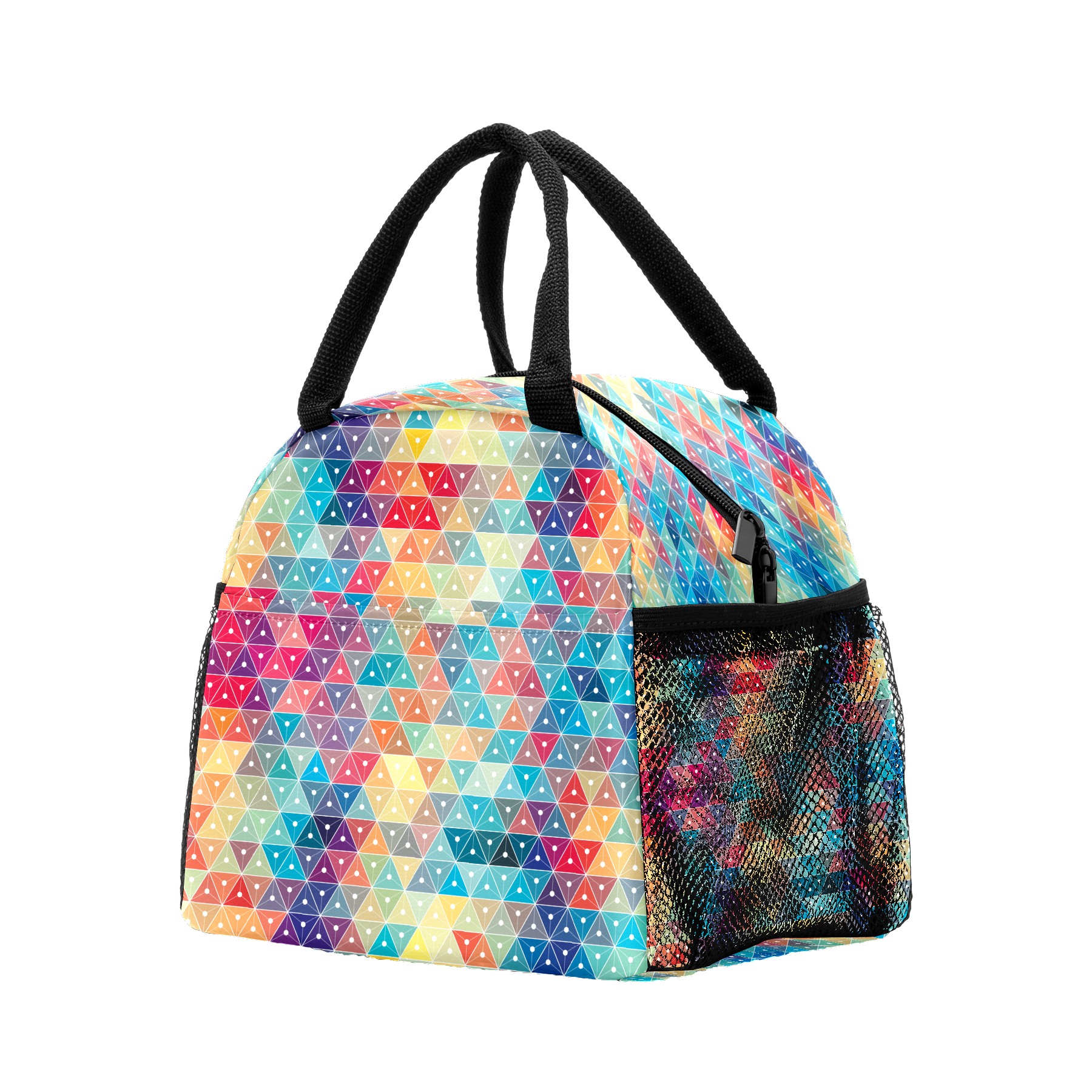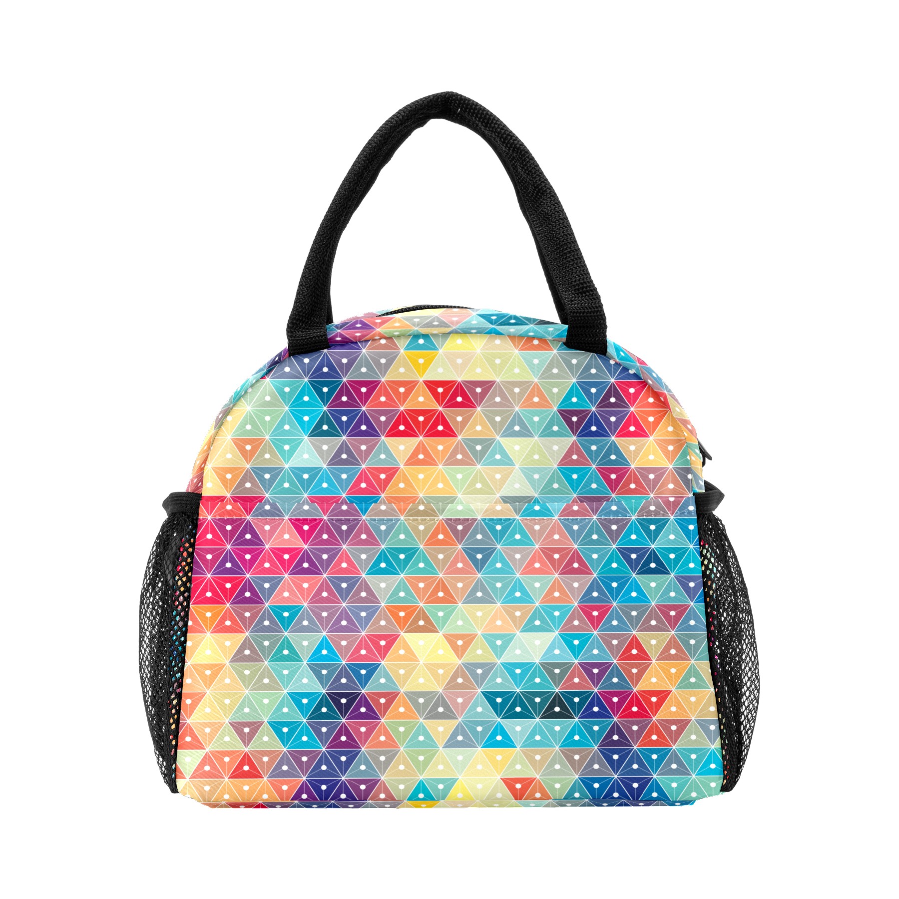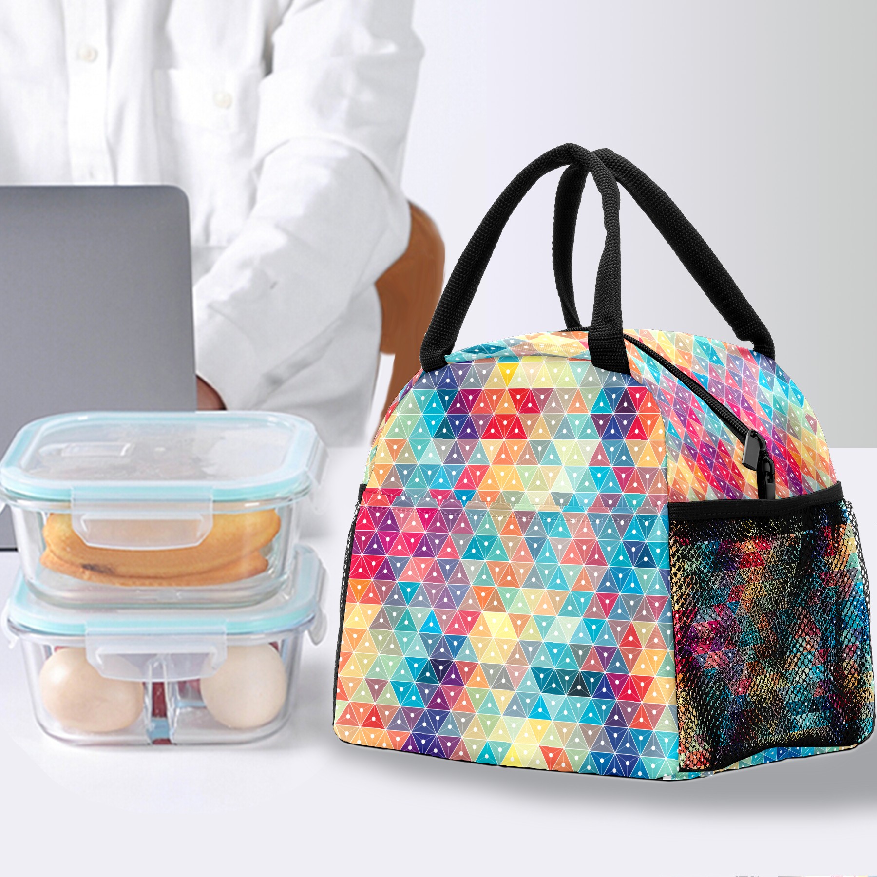 Lunch Bag for Women Men, Abstract Colorful Plaid Geometric Triangle Insulated Reusable Lunch Box Thermal Cooler Tote Bag for Work Picnic Hiking Travel Beach