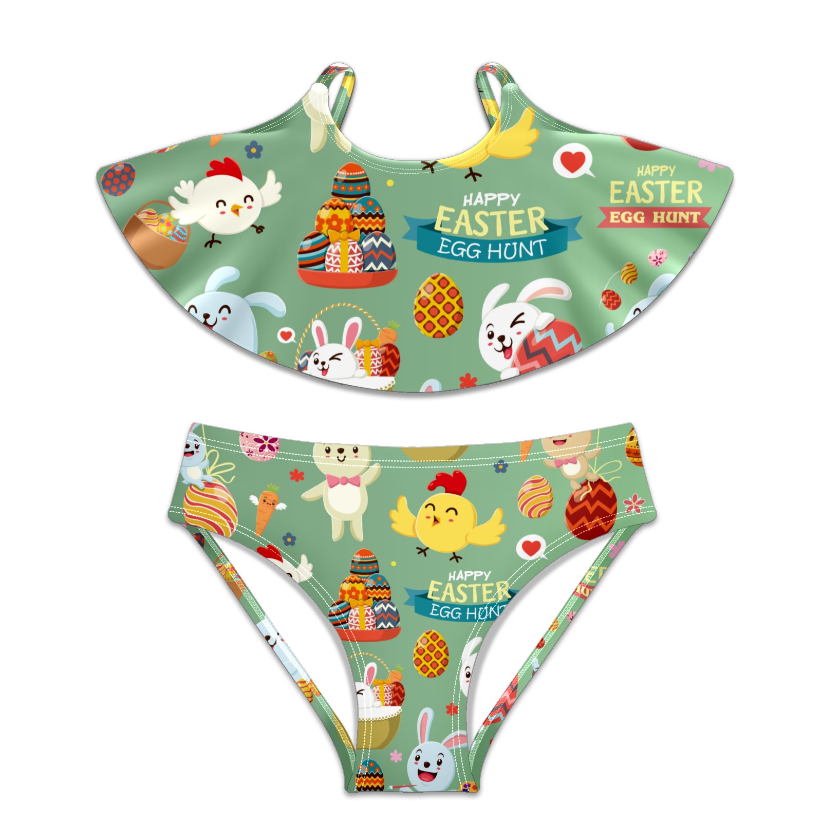 Swimsuits for Girls Two Pieces Bathing Suit Quick Dry Swimwear Easter Animal Chicken Bird Bunny Egg S