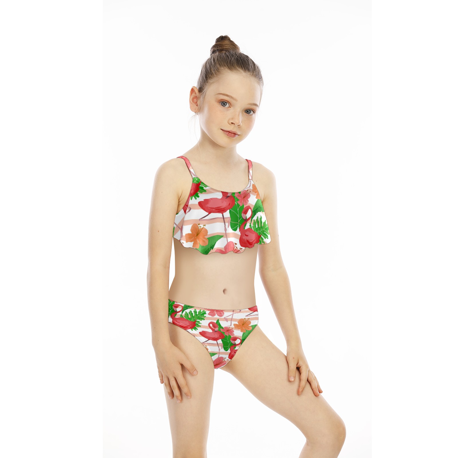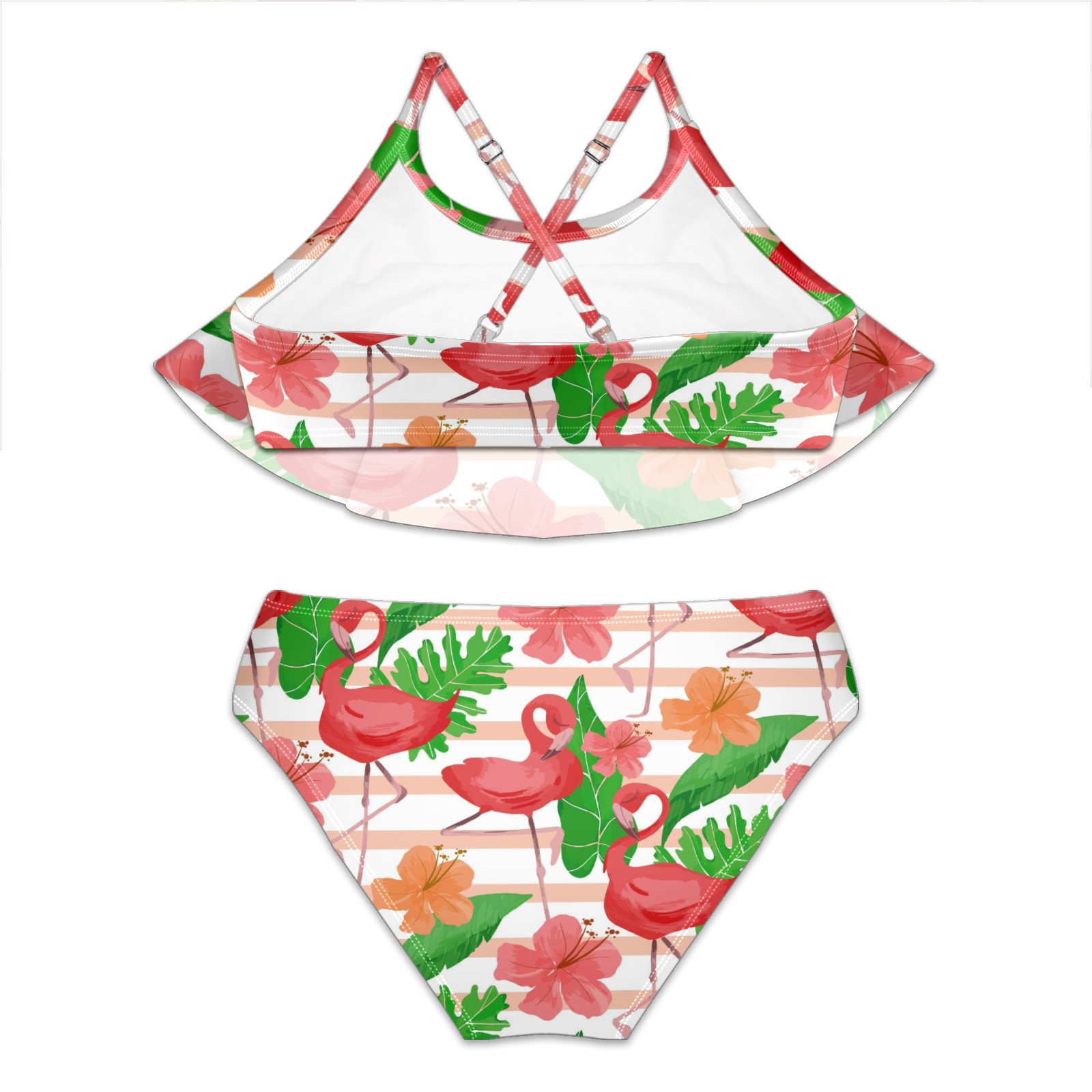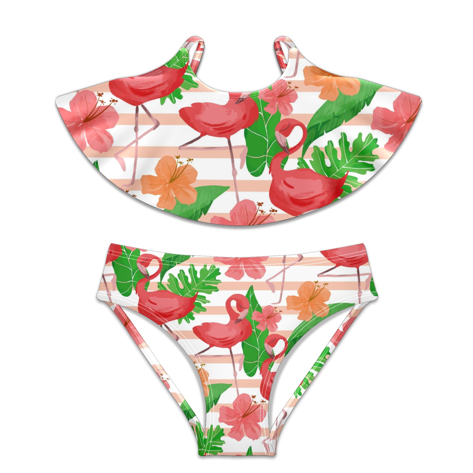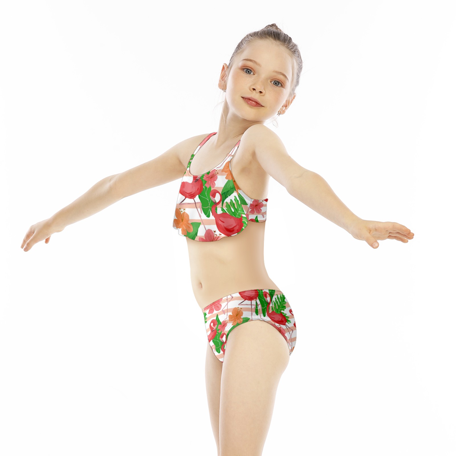 Swimsuits for Girls Two Pieces Bathing Suit Quick Dry Swimwear Flamingo Tropical Palm Leaves Striped Pink Floral S