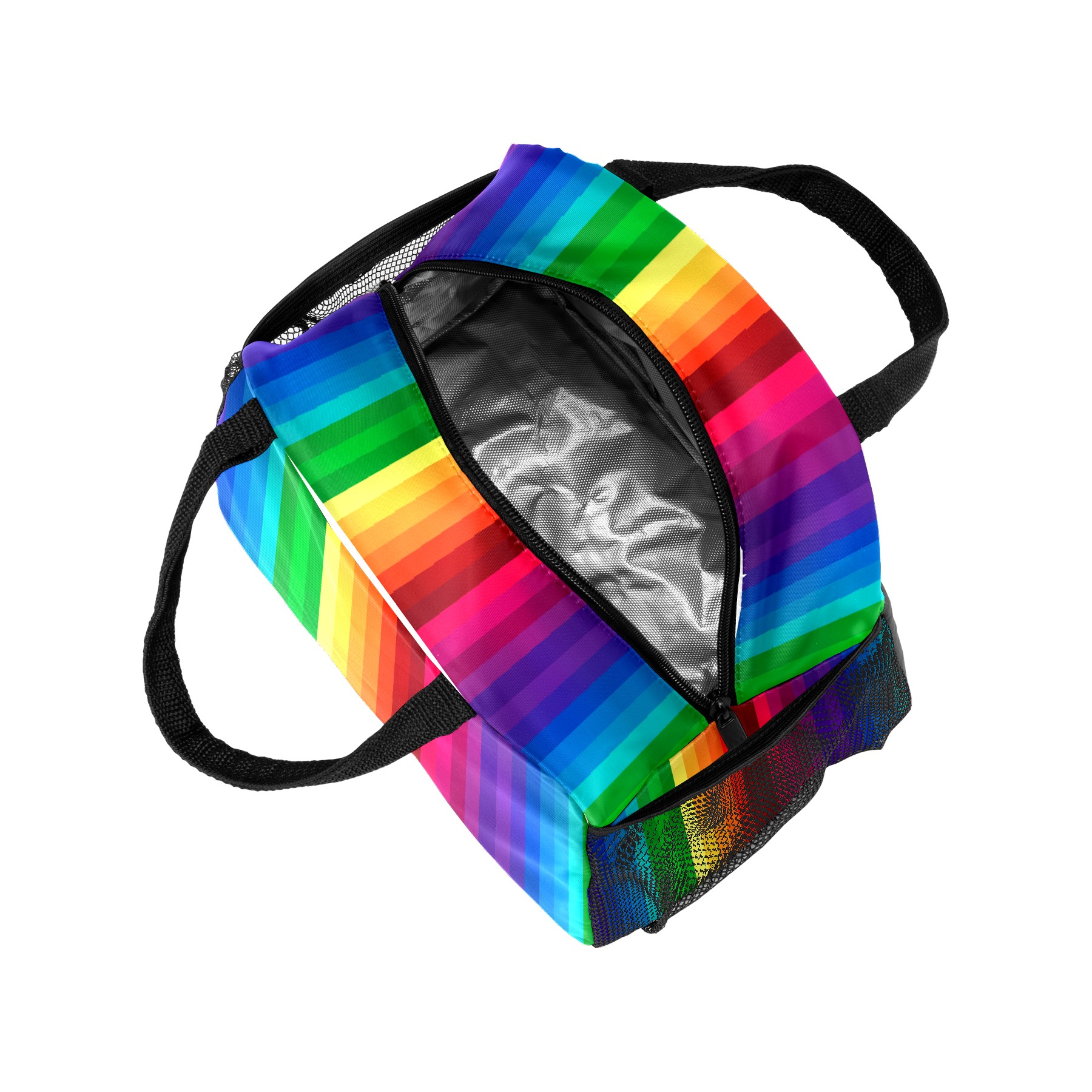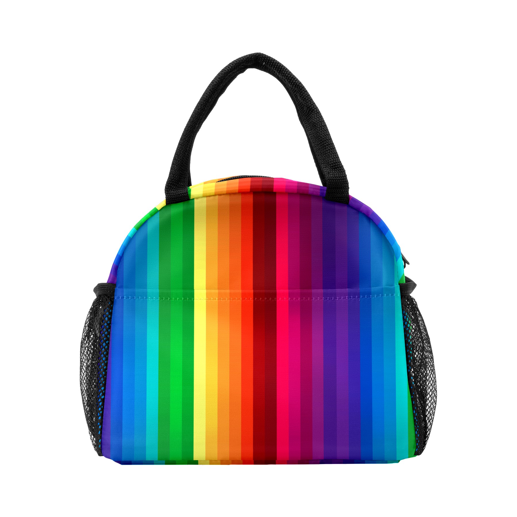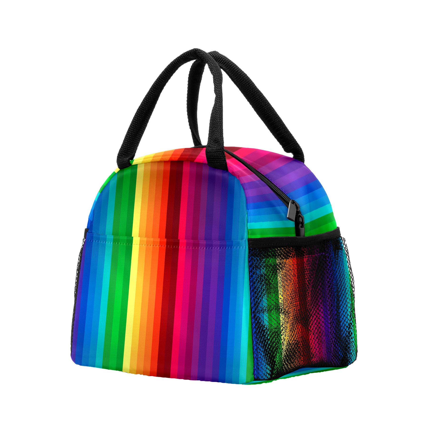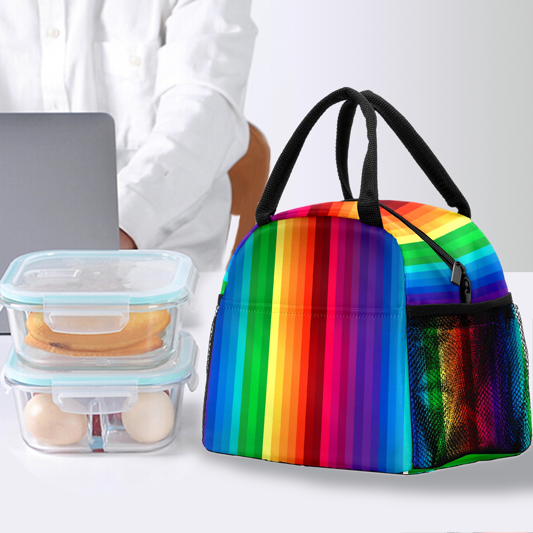 Lunch Bag for Women Men, Colorful Rainbow Painting Stripes Insulated Reusable Lunch Box Thermal Cooler Tote Bag for Work Picnic Hiking Travel Beach