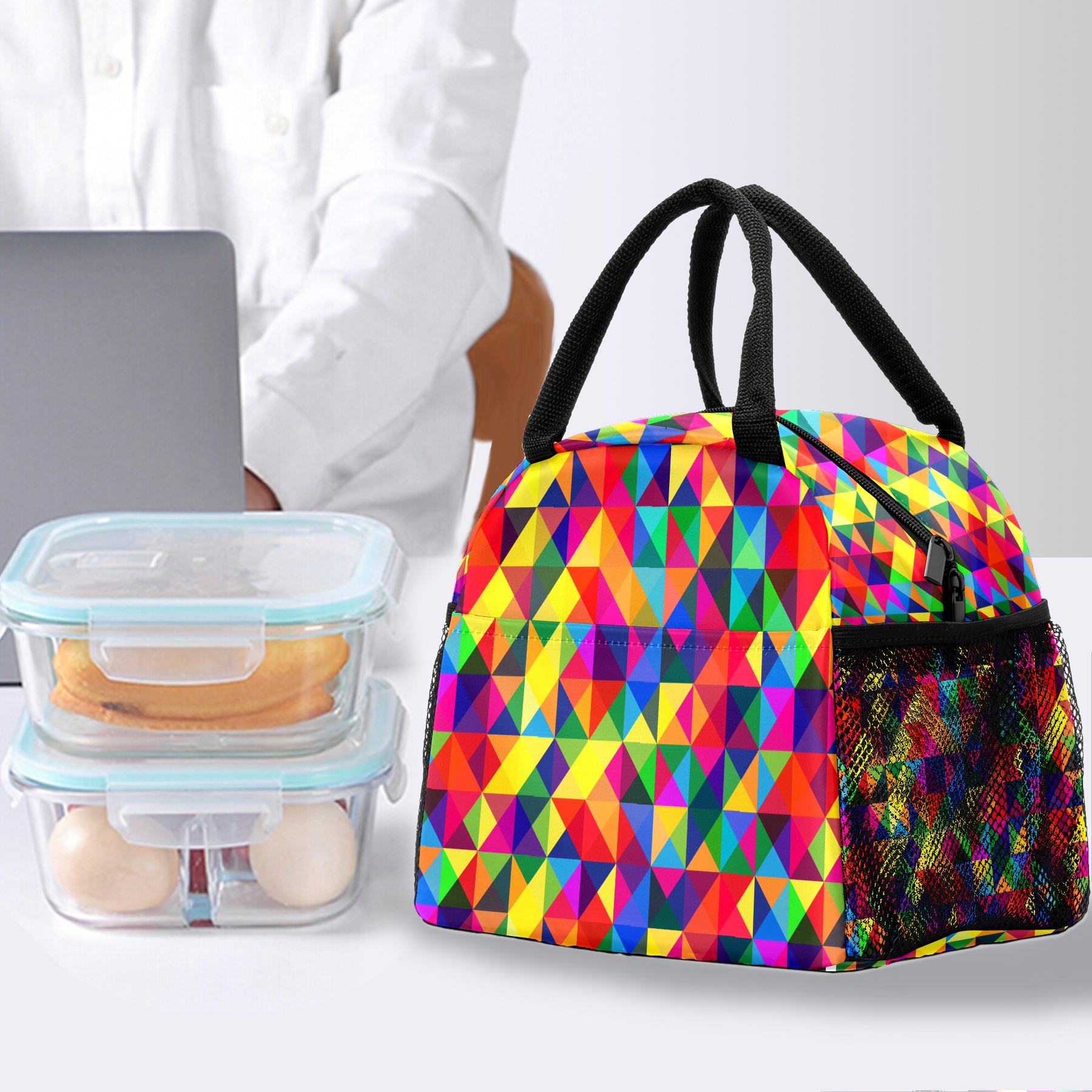 Lunch Bag for Women Men, Colorful Plaid Grid Insulated Reusable Lunch Box Thermal Cooler Tote Bag for Work Picnic Hiking Travel Beach