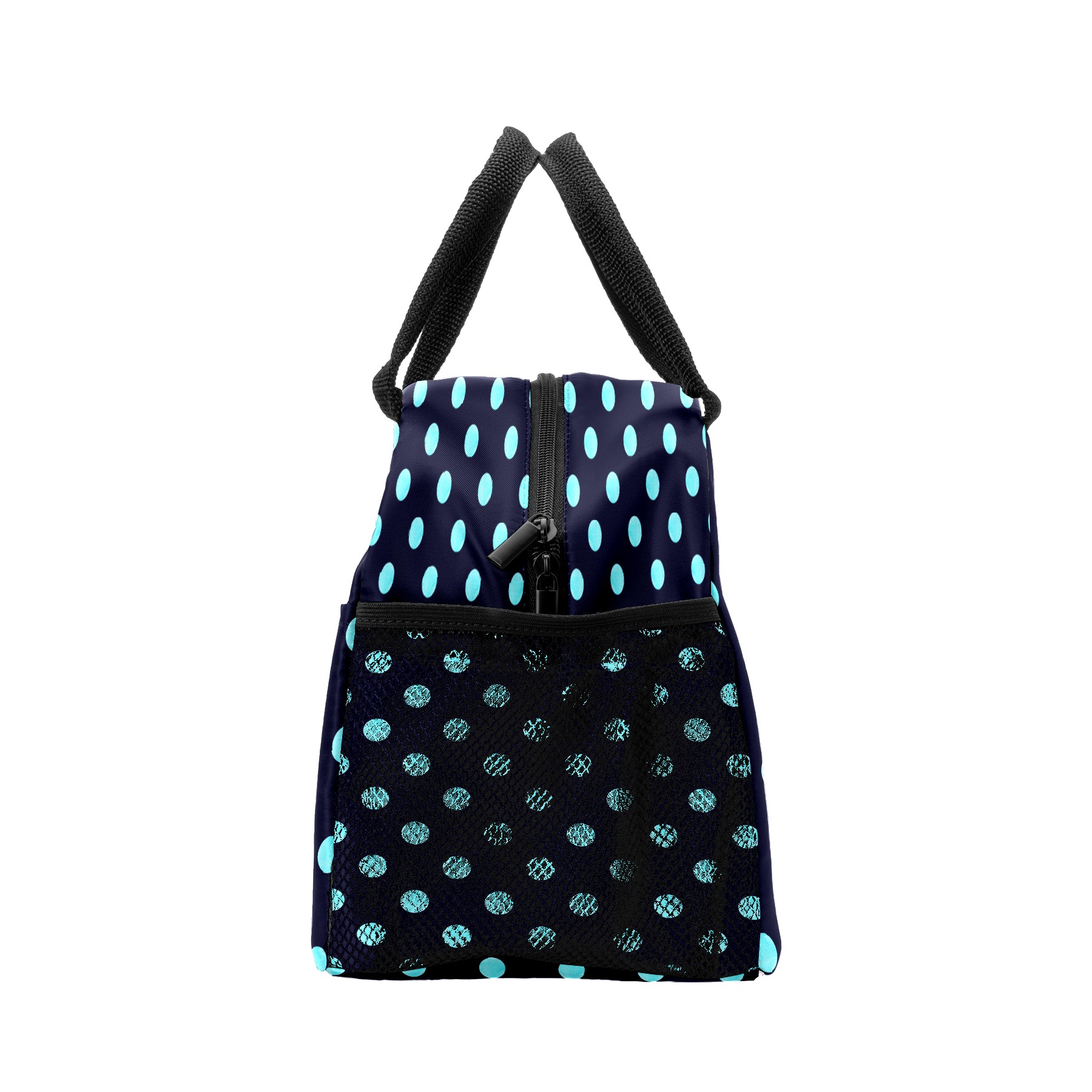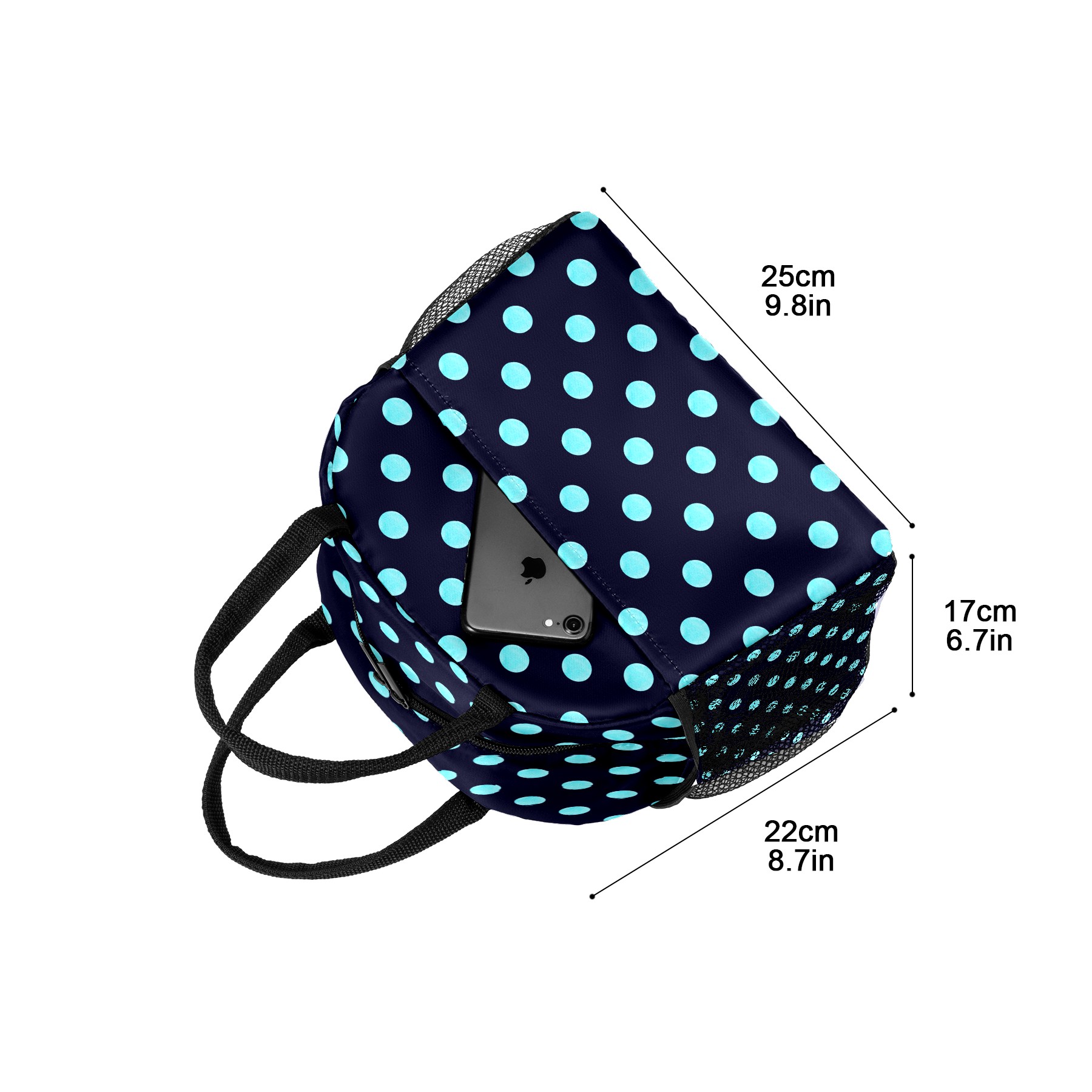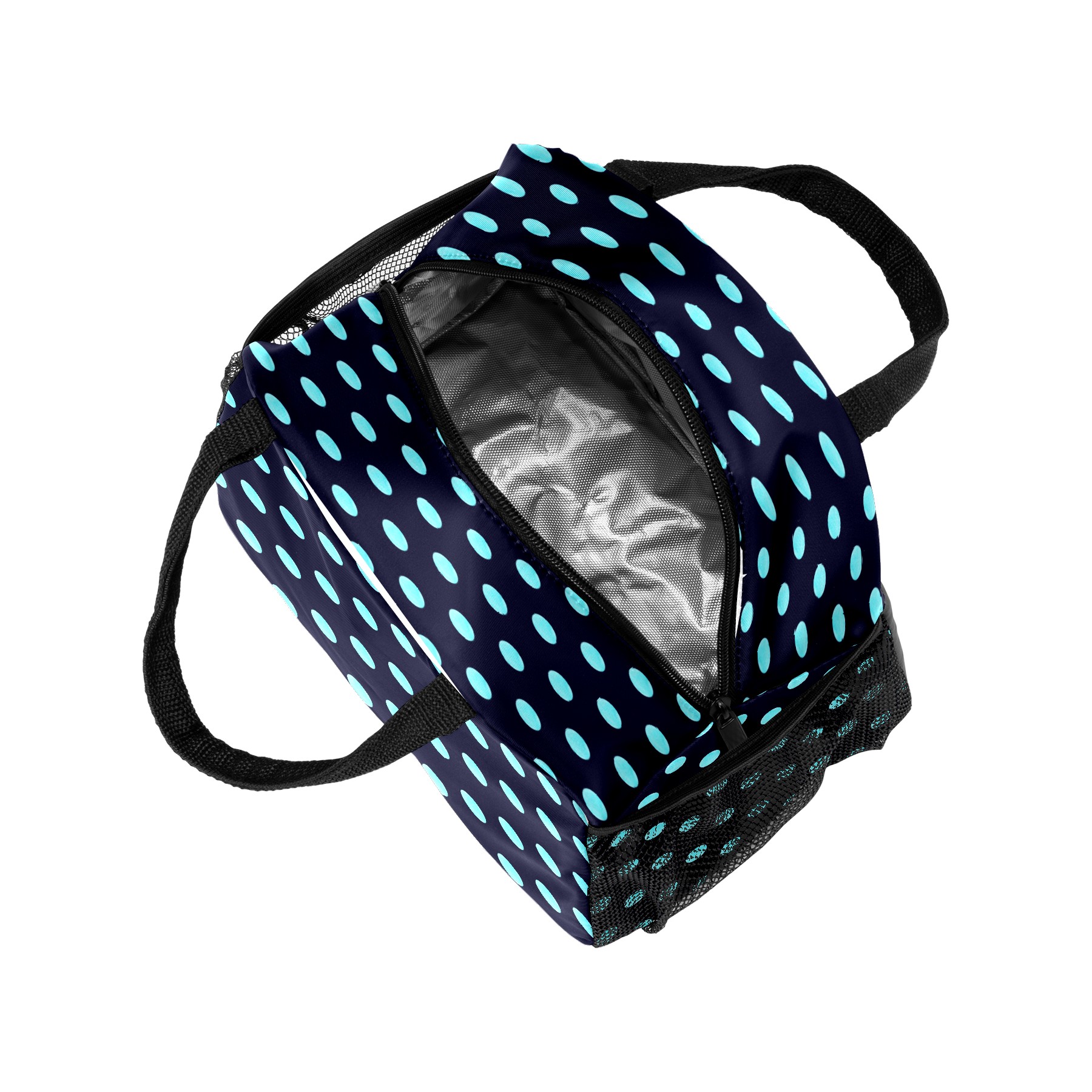 Lunch Bag for Women Men, Blue Black Polka Dot Insulated Reusable Lunch Box Thermal Cooler Tote Bag for Work Picnic Hiking Travel Beach
