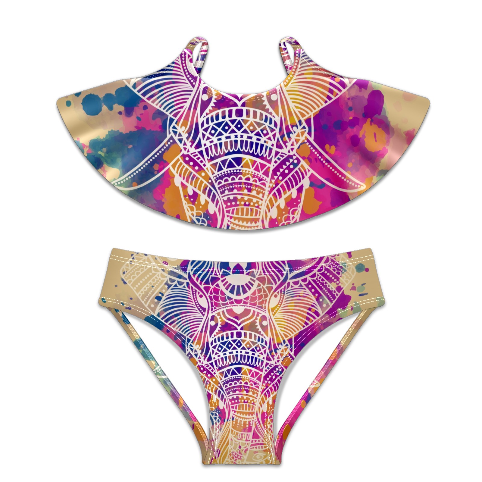 Swimsuits for Girls Two Pieces Bathing Suit Quick Dry Swimwear Elephant Watercolor S